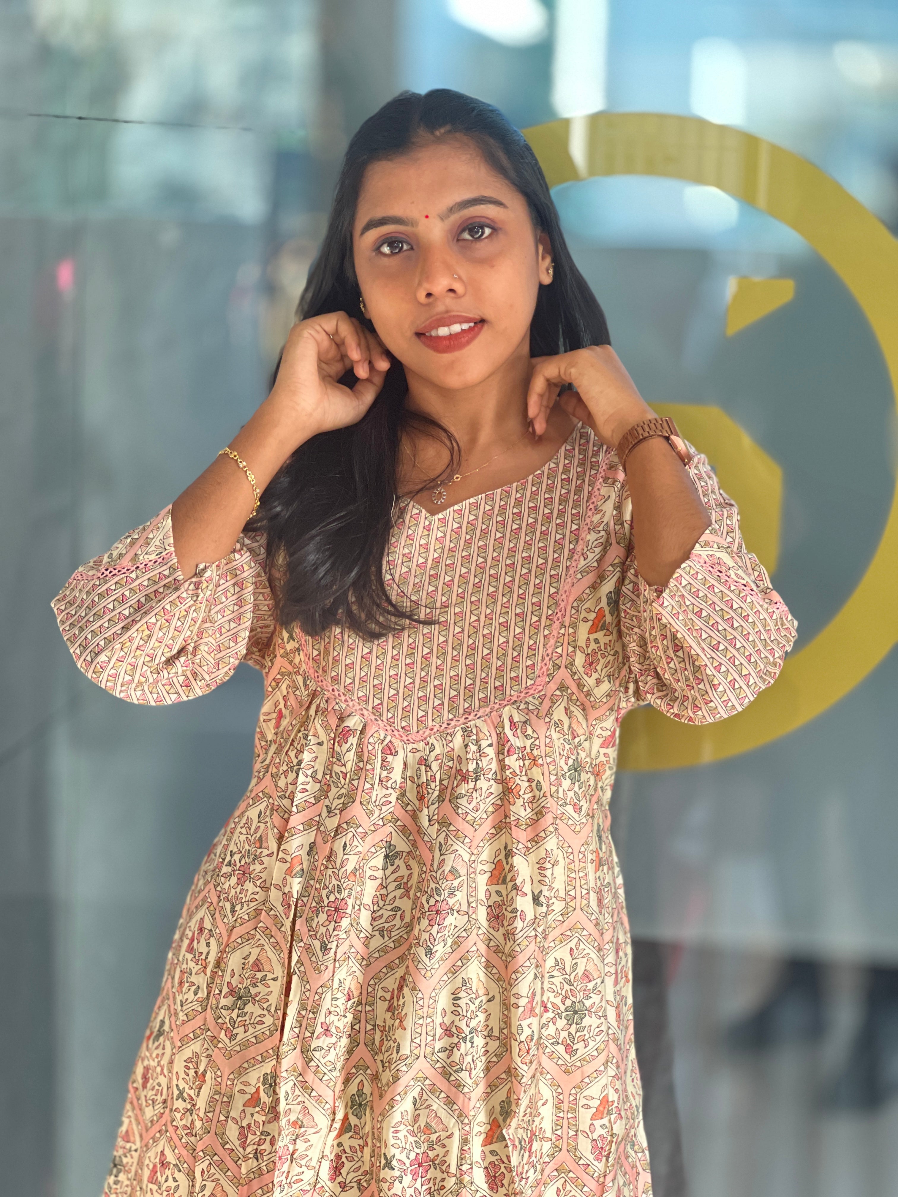 - Style- A-Line Kurta with Pockets And Gathered Pattern
