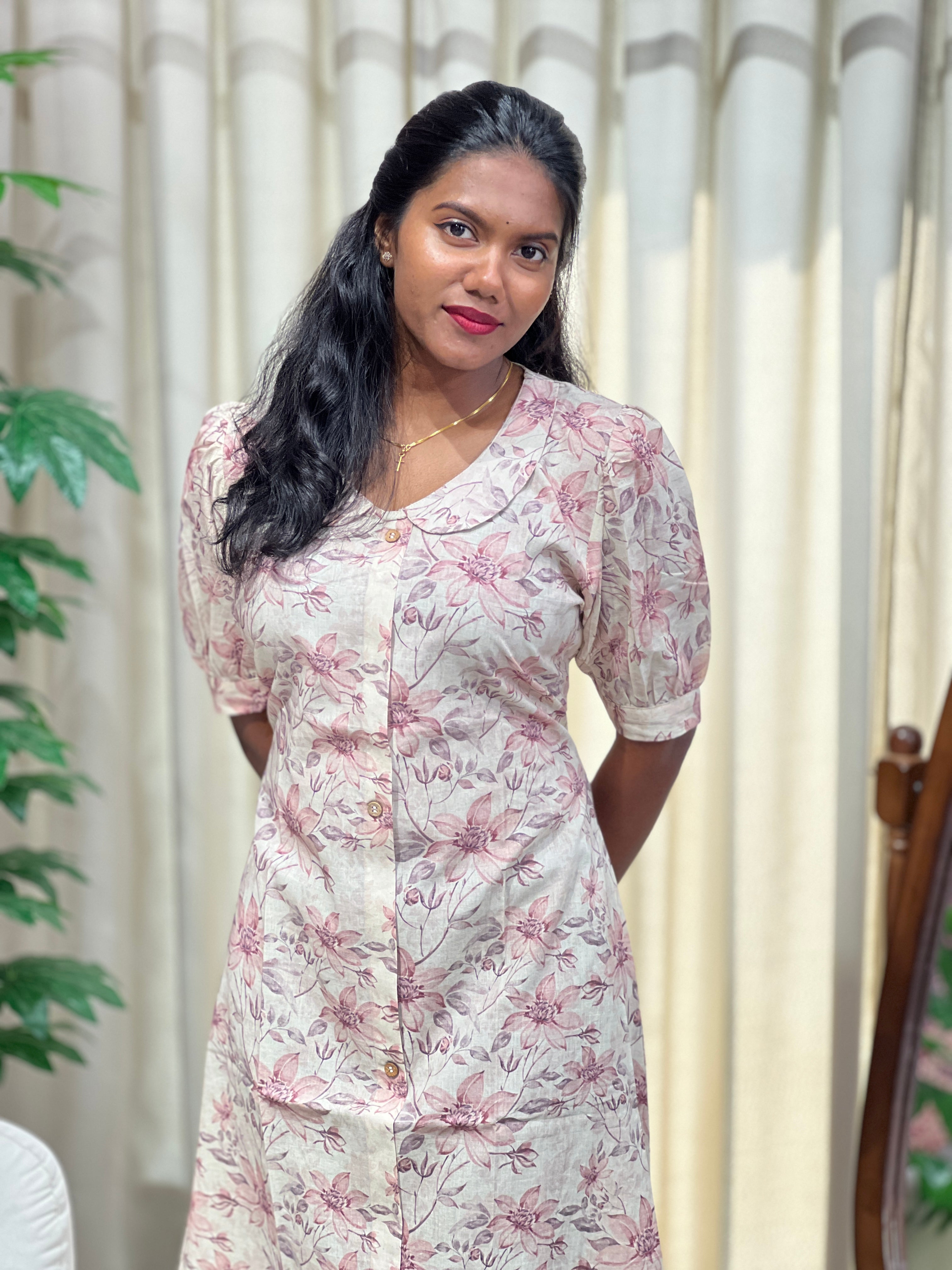 - Style: Digital Printed, Without Lining, A- Line, Show Button Detailing, Puff Sleeves