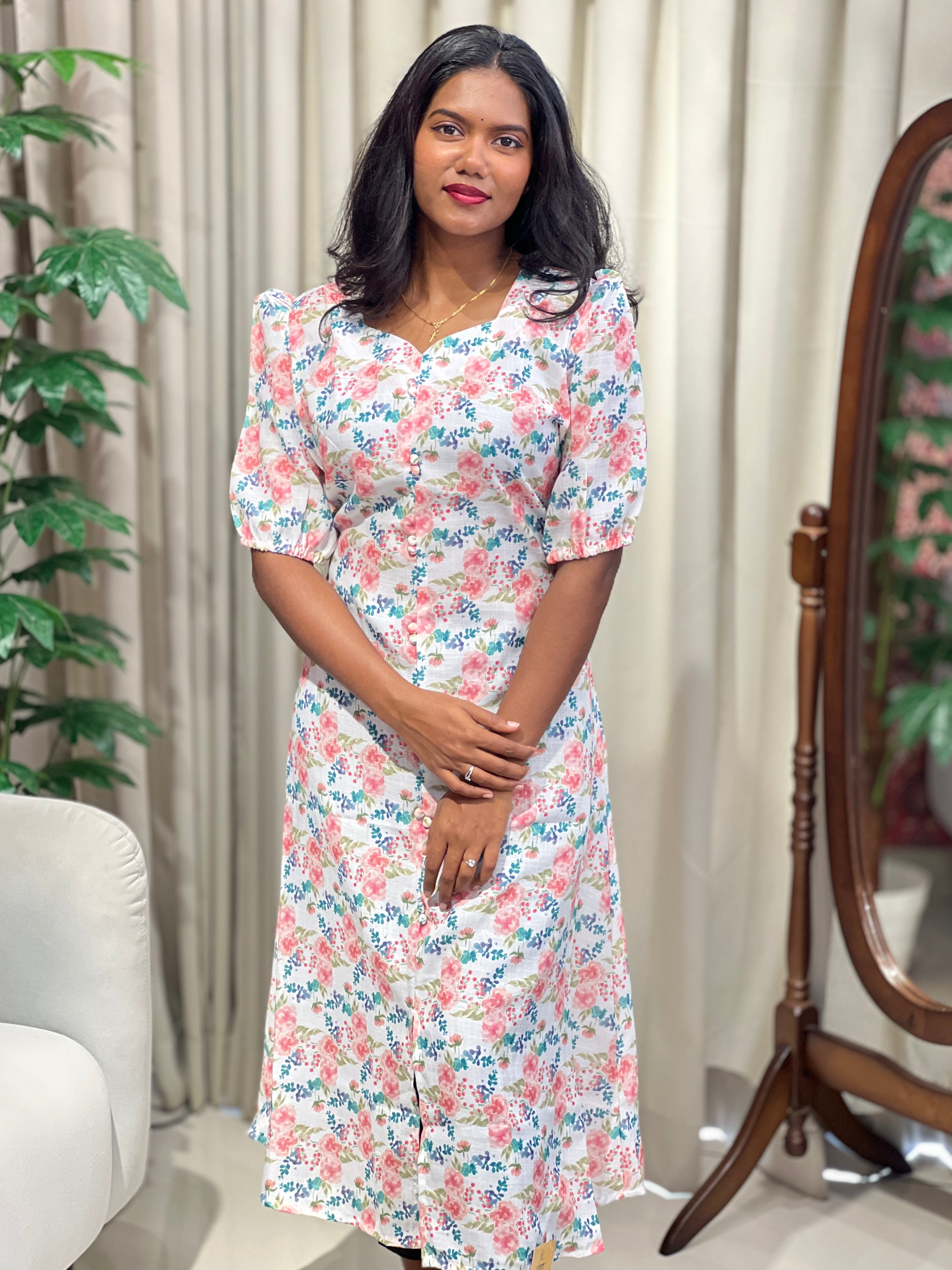 - Style: Digital Printed, A-LIne, Without Lining, Puff Sleeve
