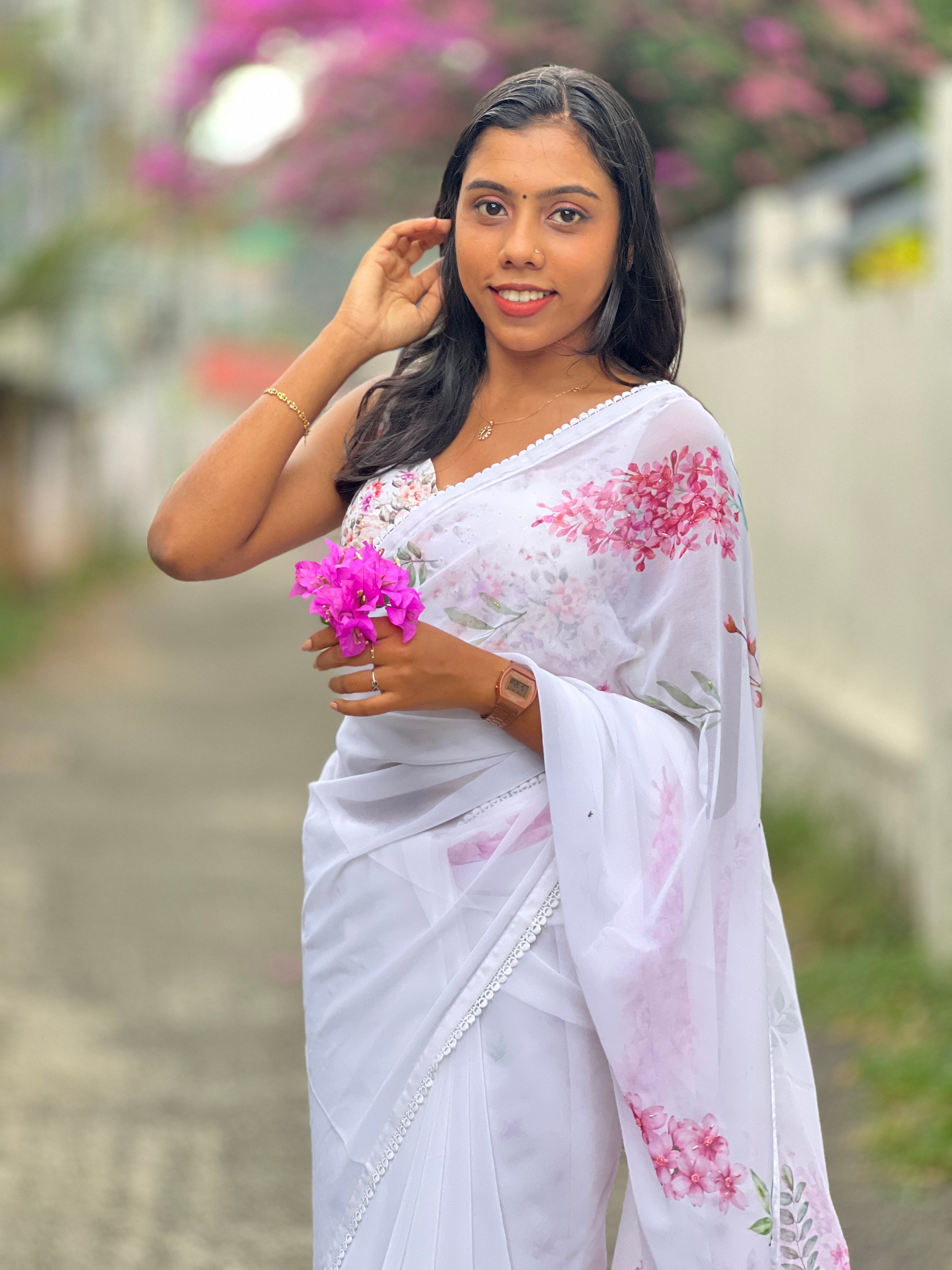 • Style: Floral Digital Print, Hand Worked Highlighted, Floral Printed Pallu, Lace Finish Edges