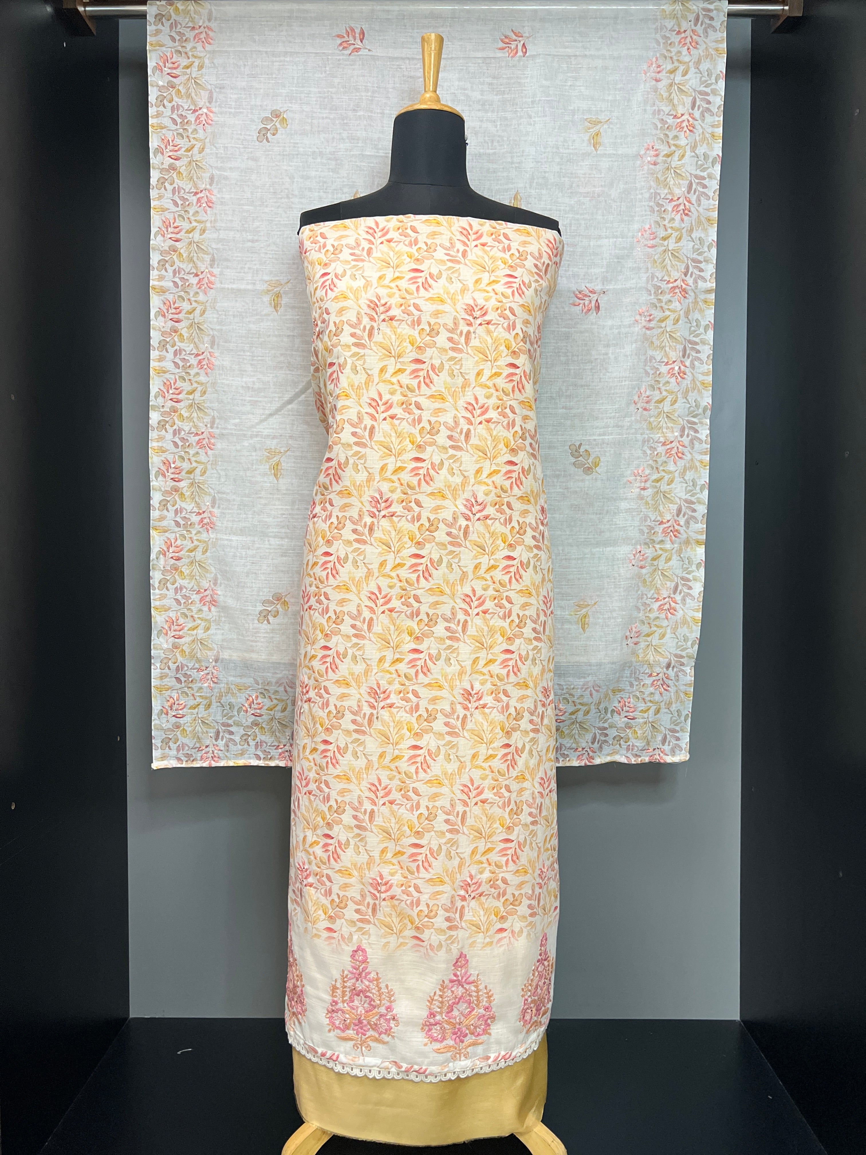 •  Style: Digital Printed Leaf Pattern, Hand Embroidery Highlight, Floral Hand Embroidered Lower Portion, Lace Detailed Edges
