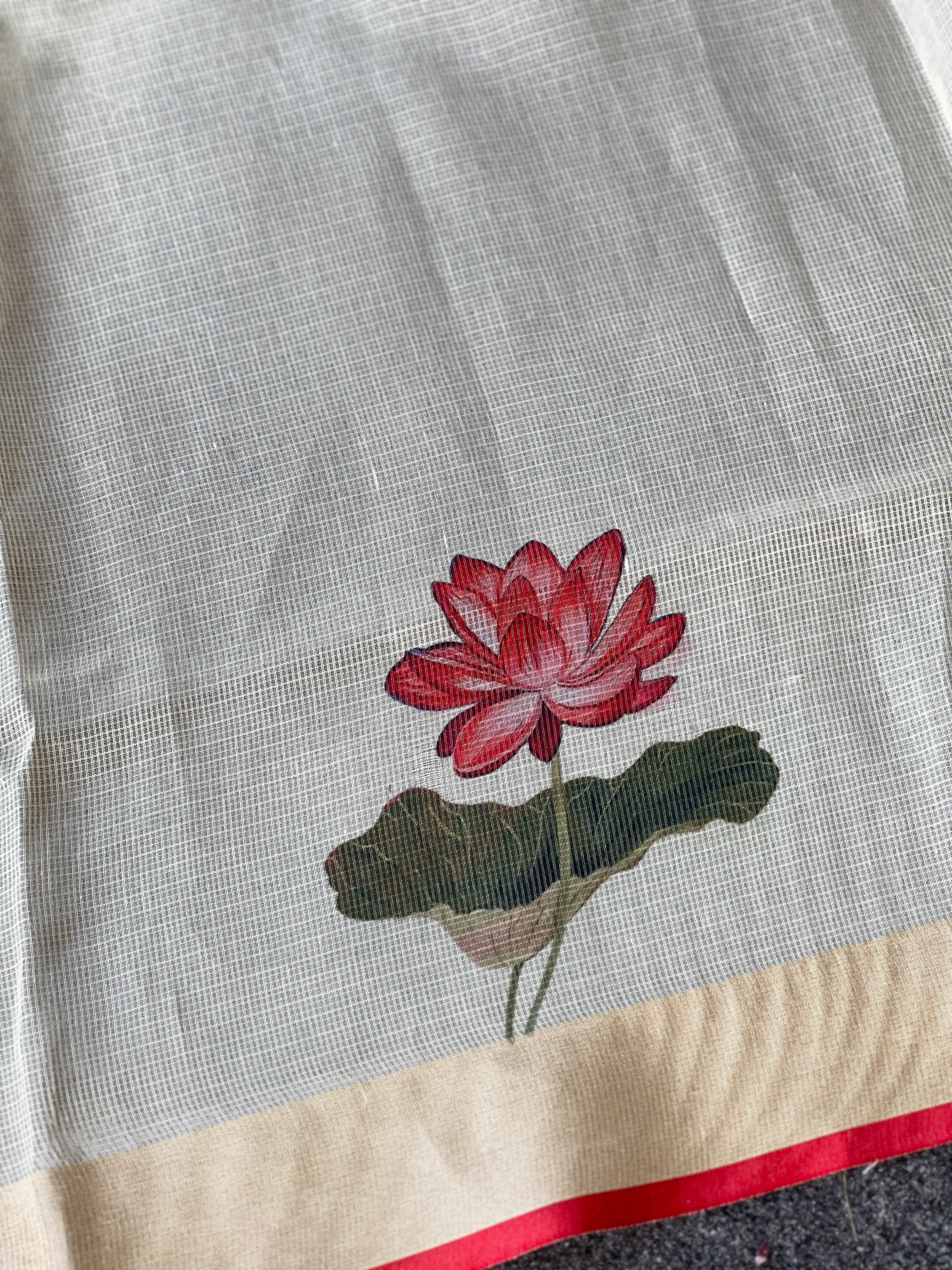 - Style: Lotus Digital Print Detailing, Banarasi Weaving Pattern, Multi-Color Tassels Attached, Banarasi Borders And Pallu
