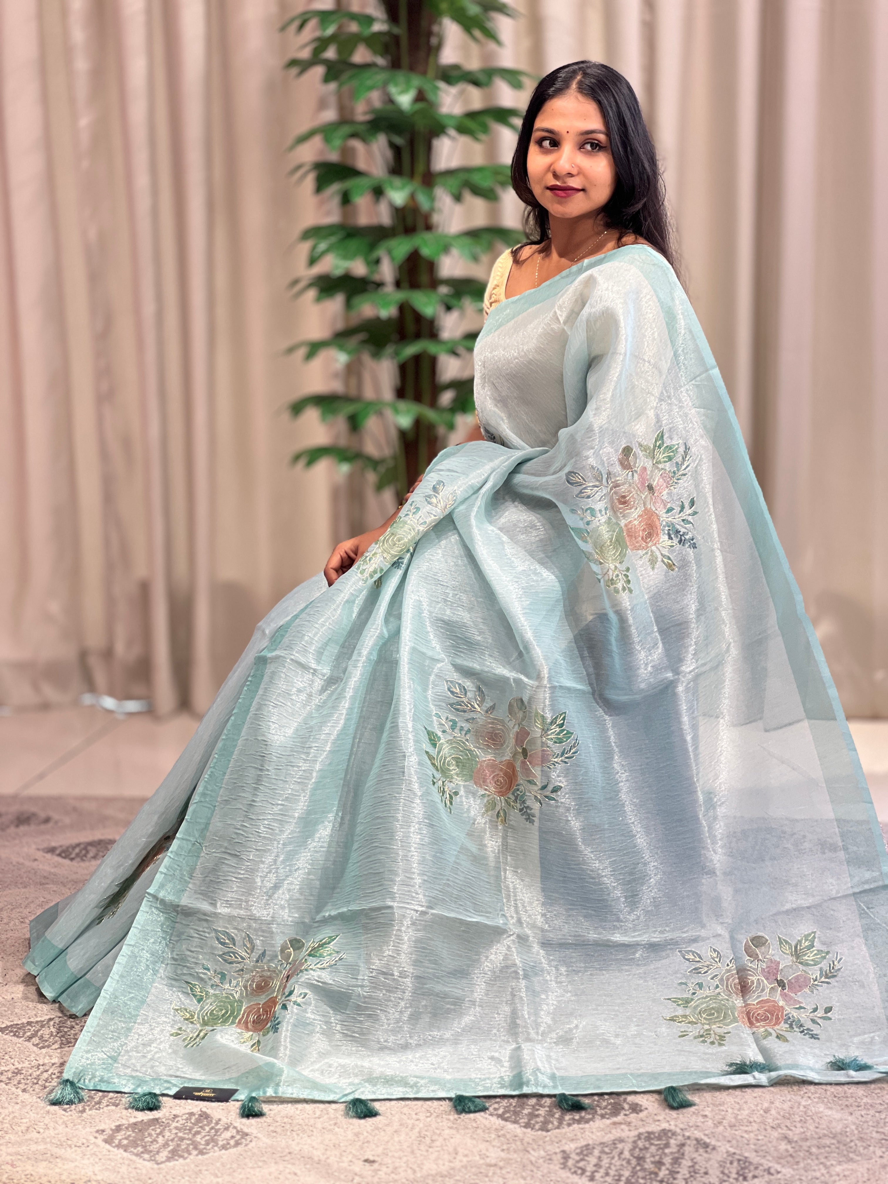 - Style: Scattered Digital Printe With Pitta Work Highlight, Tassels Attached,