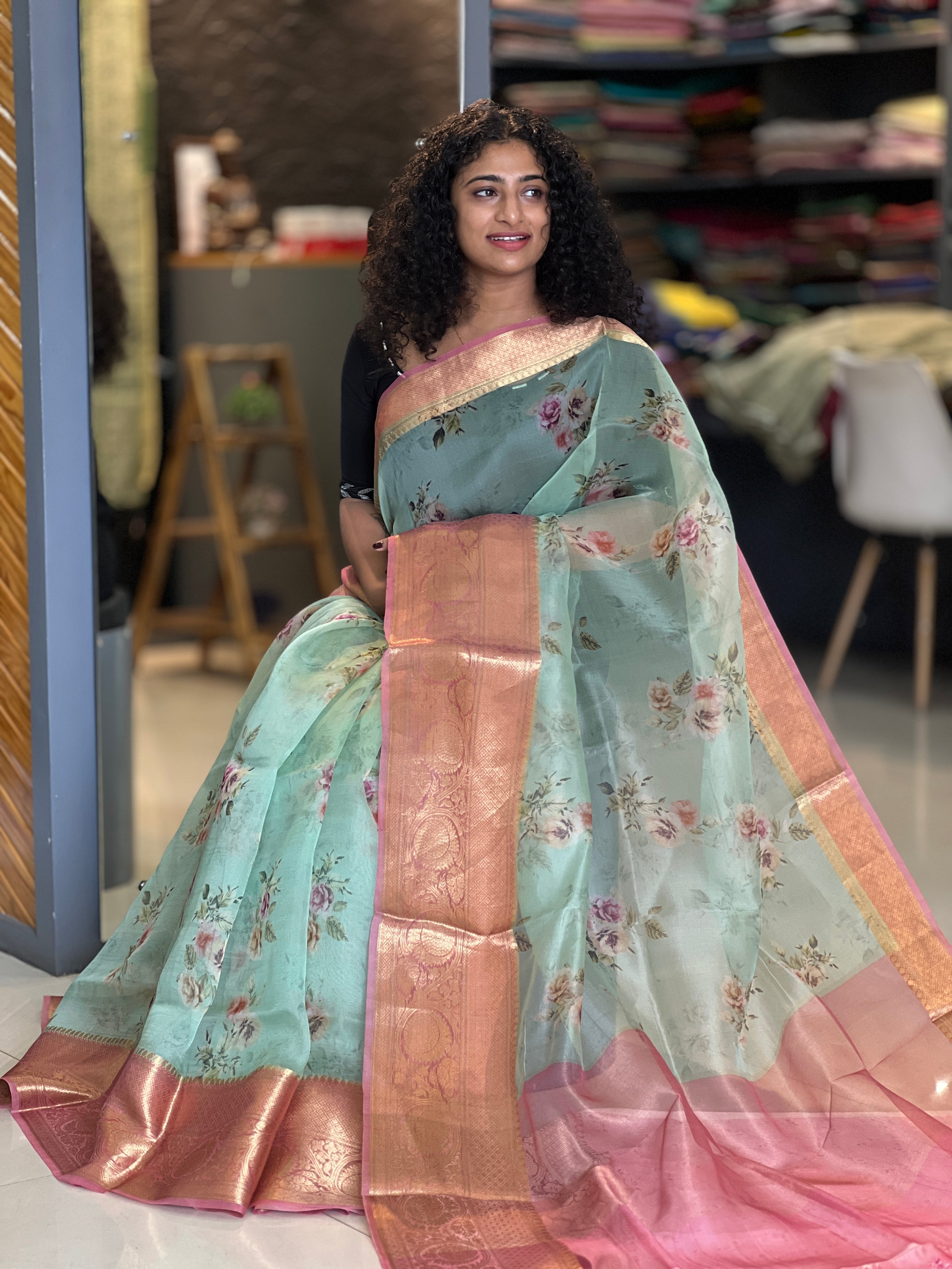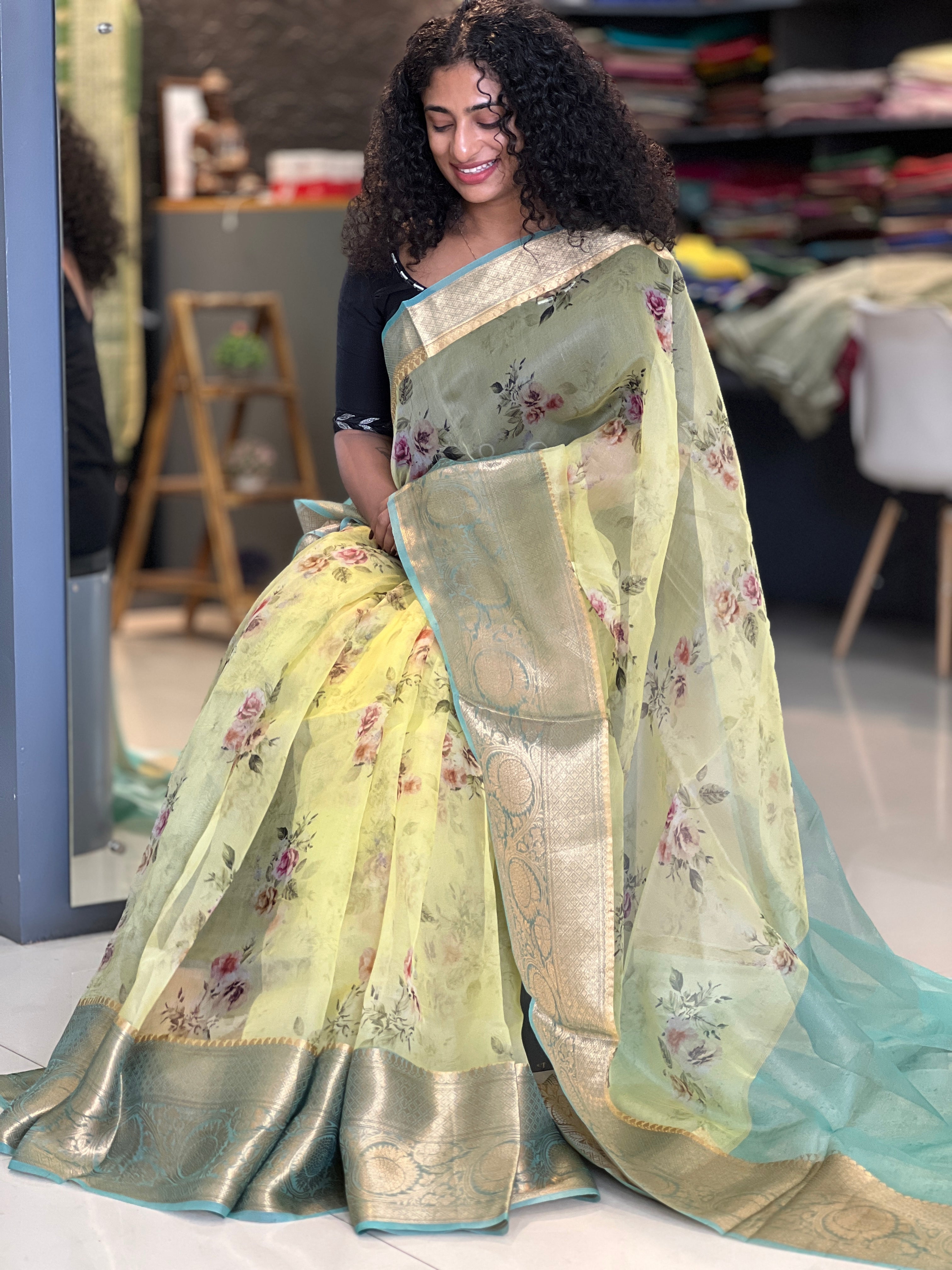 - Style: Digital Print Floral Pattern, Pure Zari Border Pattern
