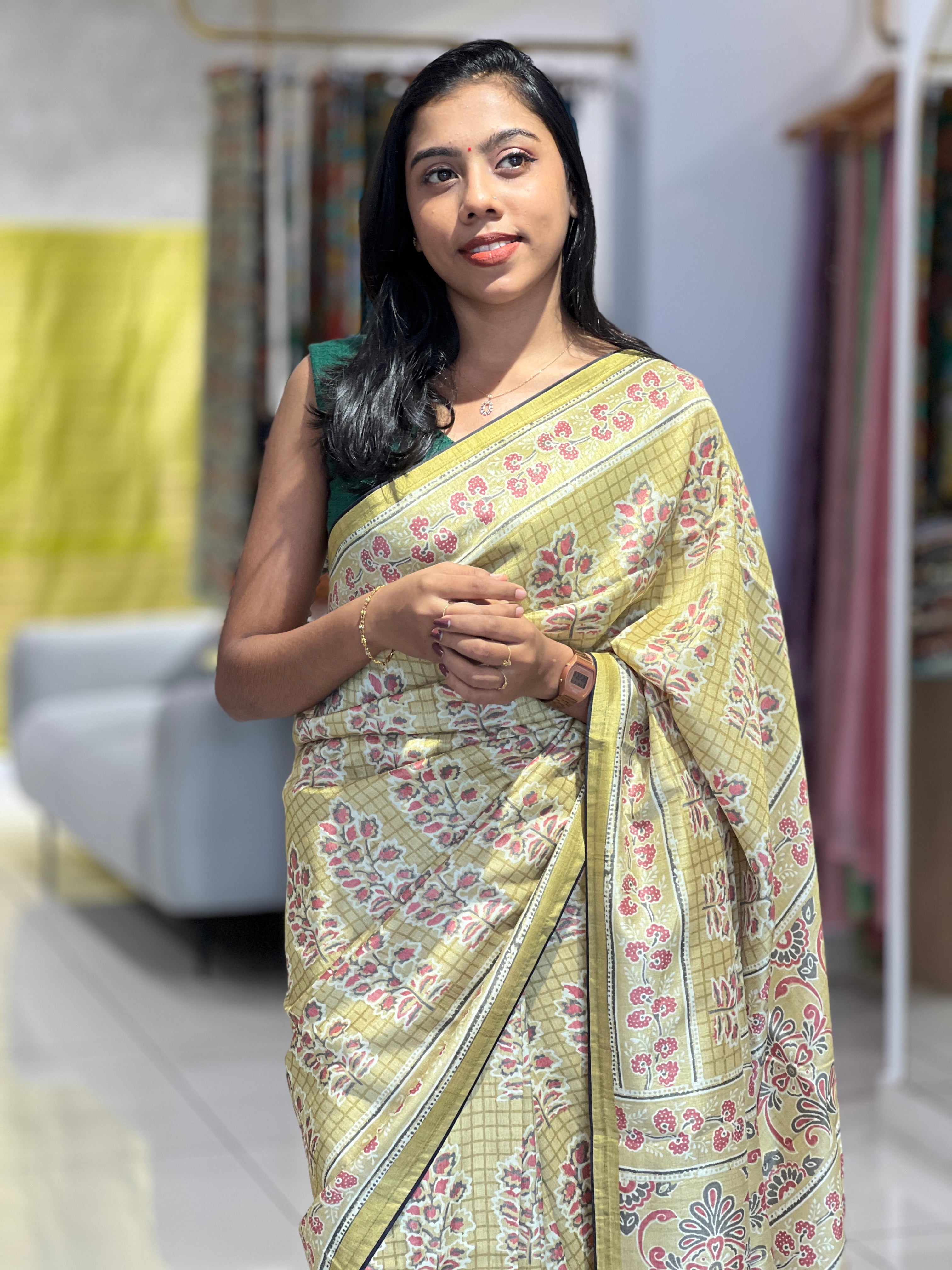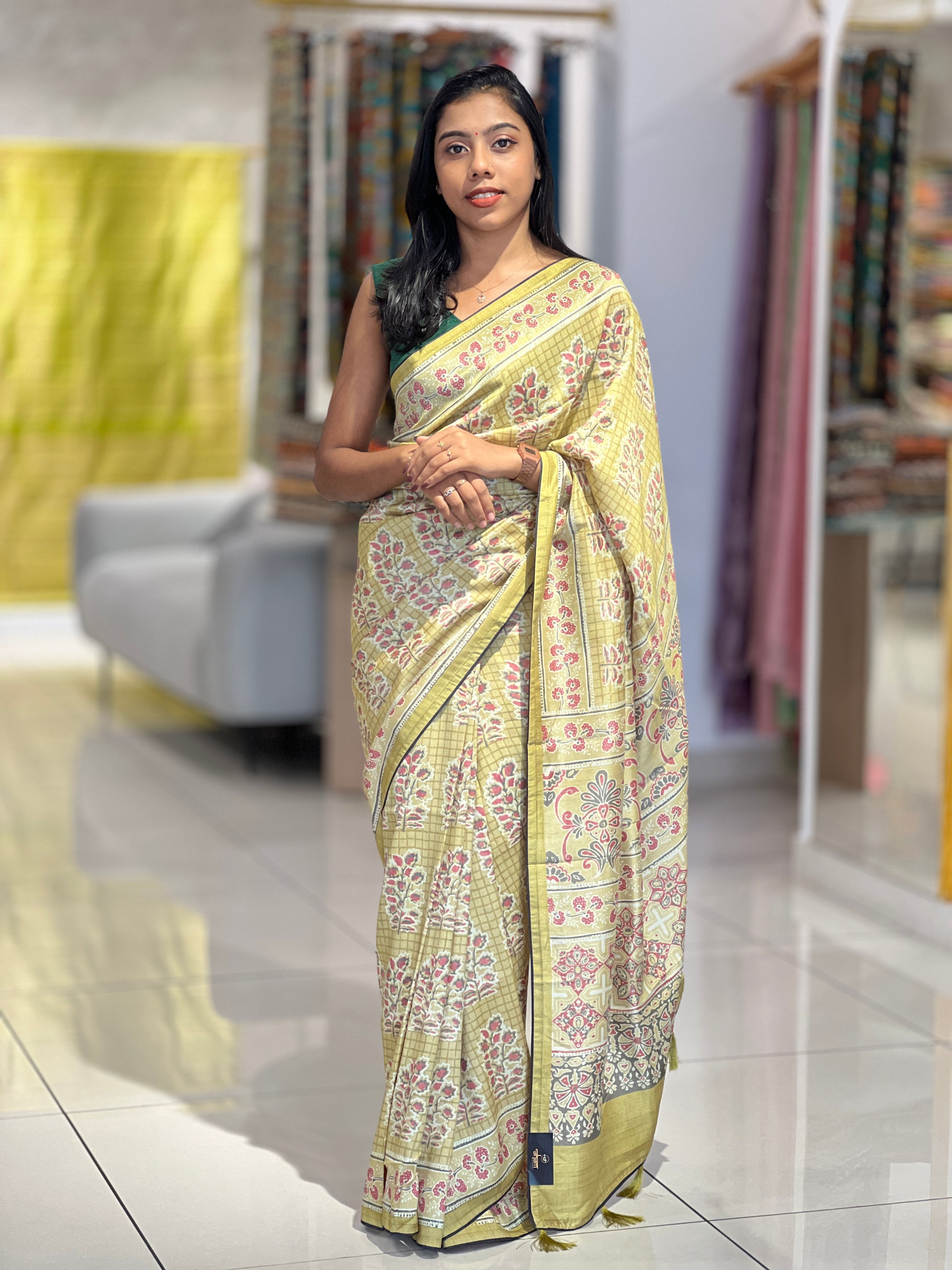 - Style: Digital Printed, Check Pattern Highlighted with Leaf Design, Border With Flat Pipping Detailing, Tassels Attached