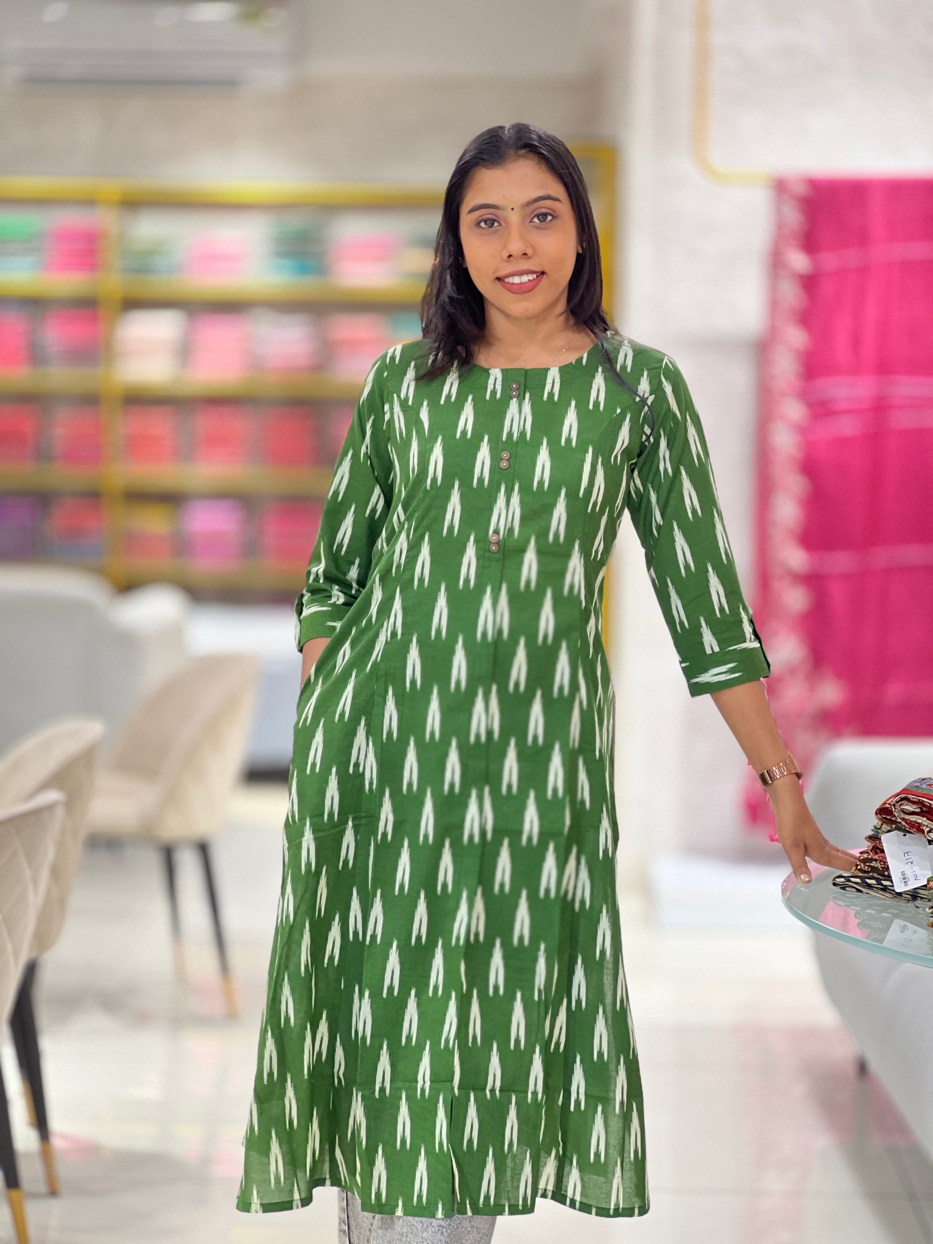 - Style: Ikat Inspired Printe Pattern, Side Slitted, With Out Lining, Button Detiling