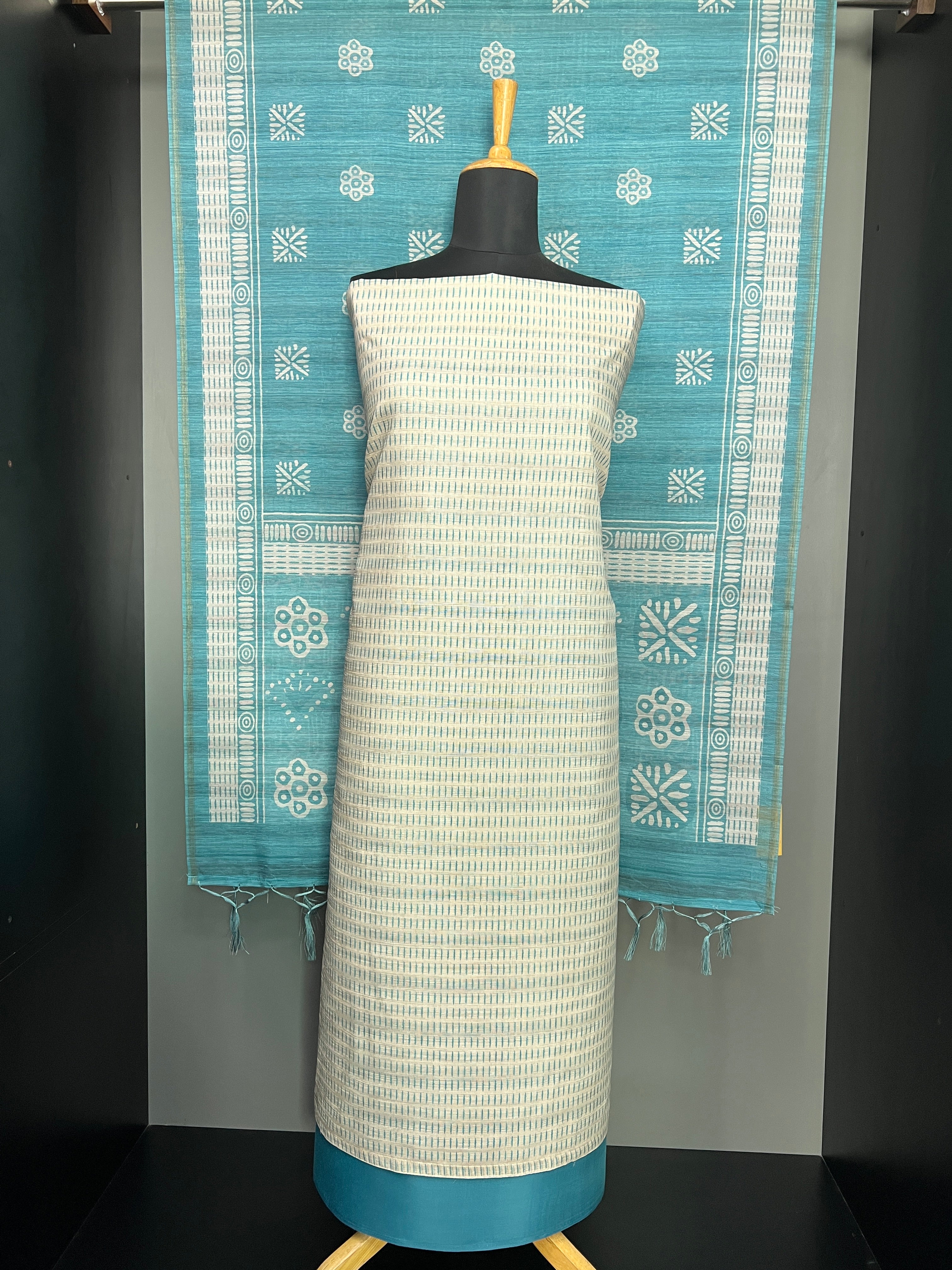 Discharge Print Detailed Semi Tussar Salwar Set | SP454