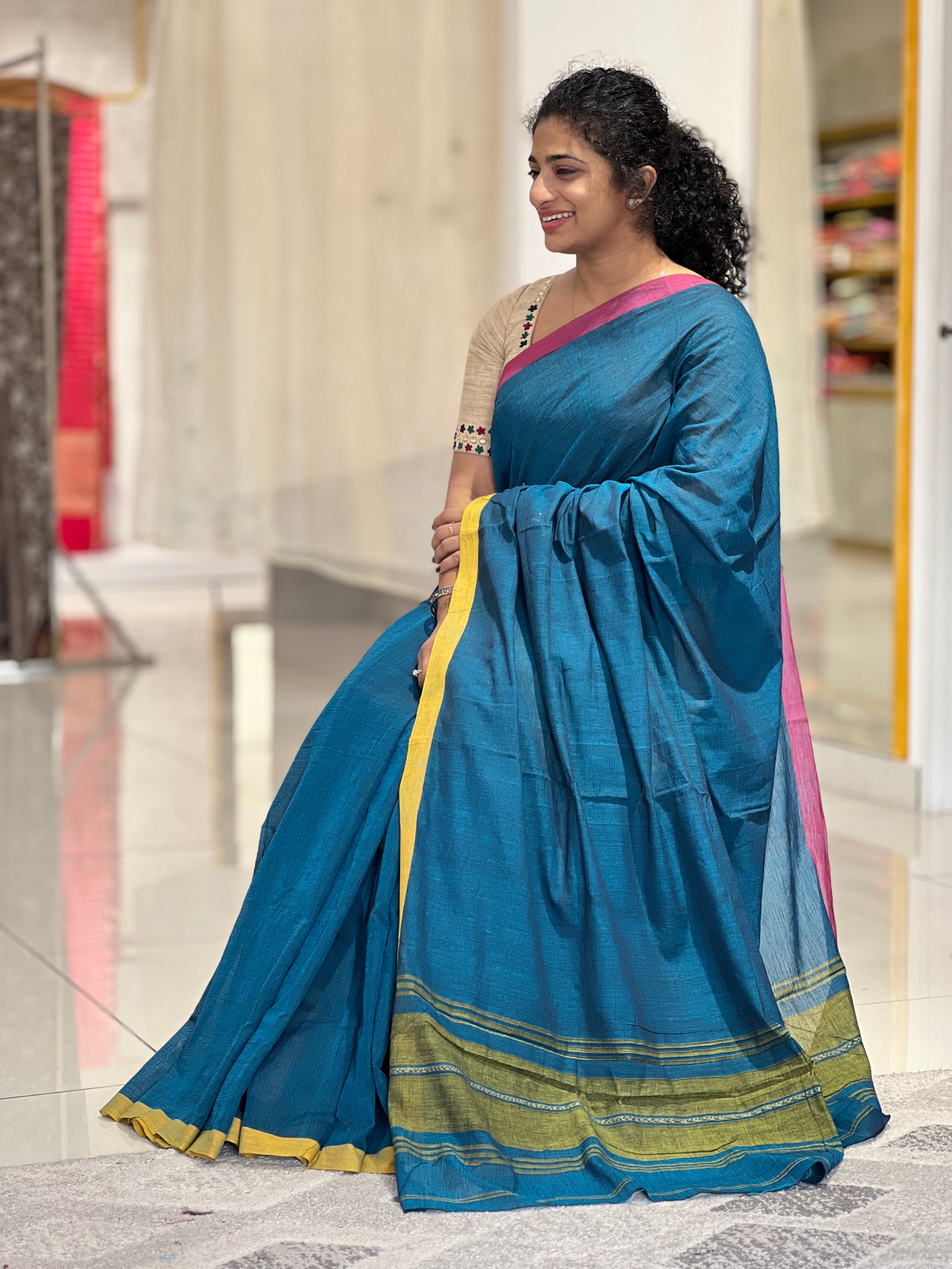 - Style: Double Shade Borders, Solid, Contrast Line Patterned Pallu