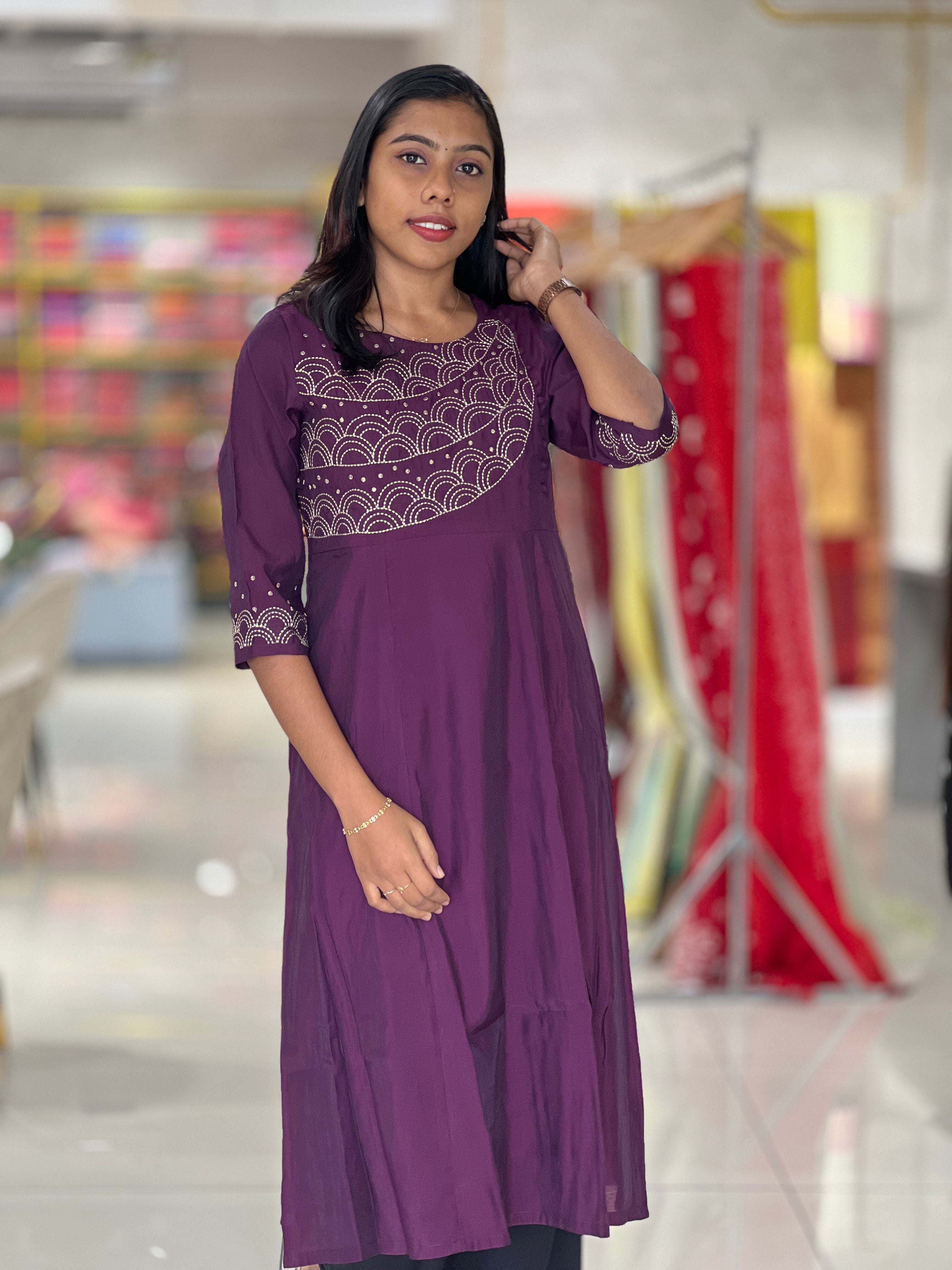 - Style: Yoke & Sleeve Embroidery Detailing , A-Line,Potil Details