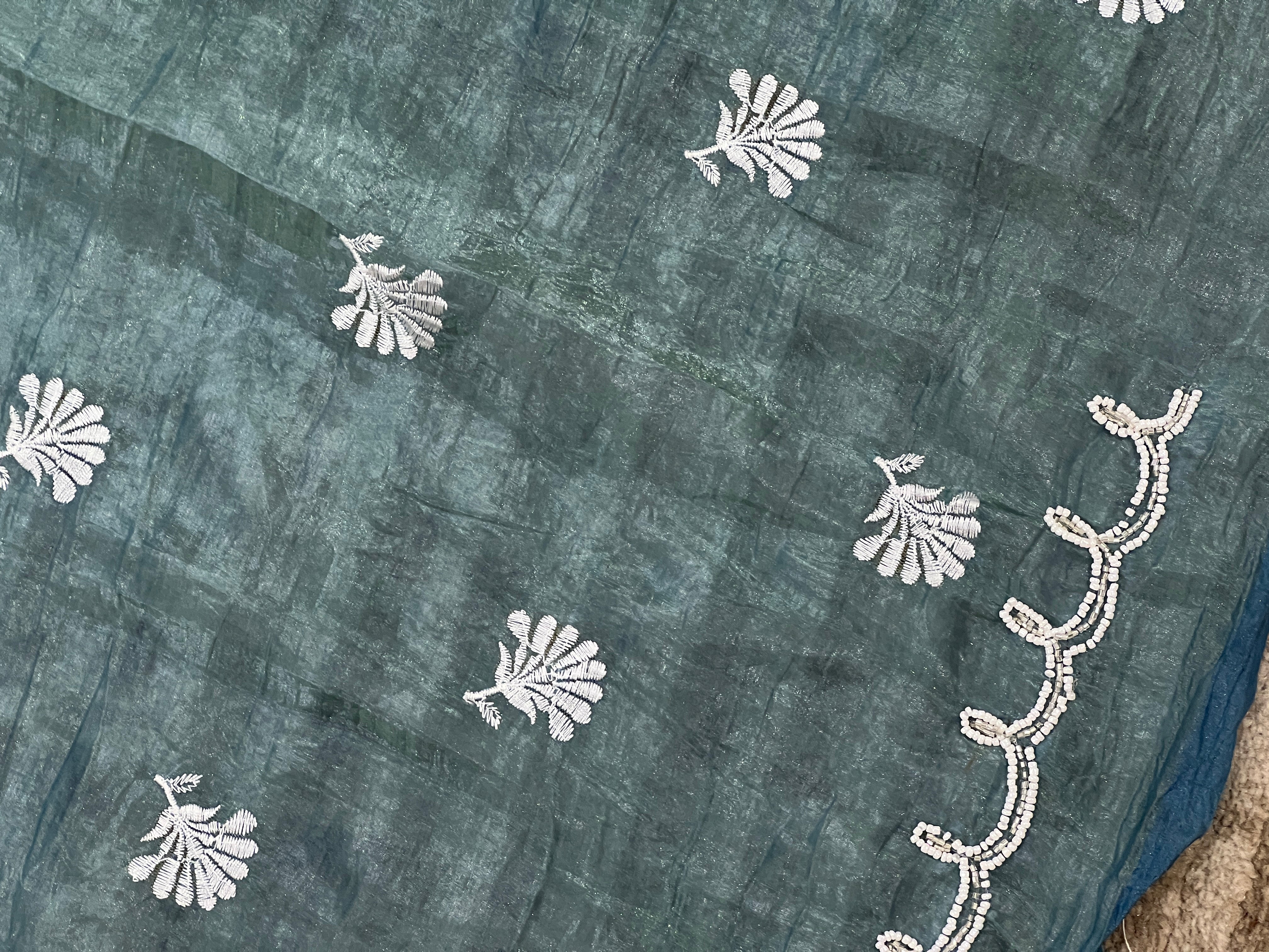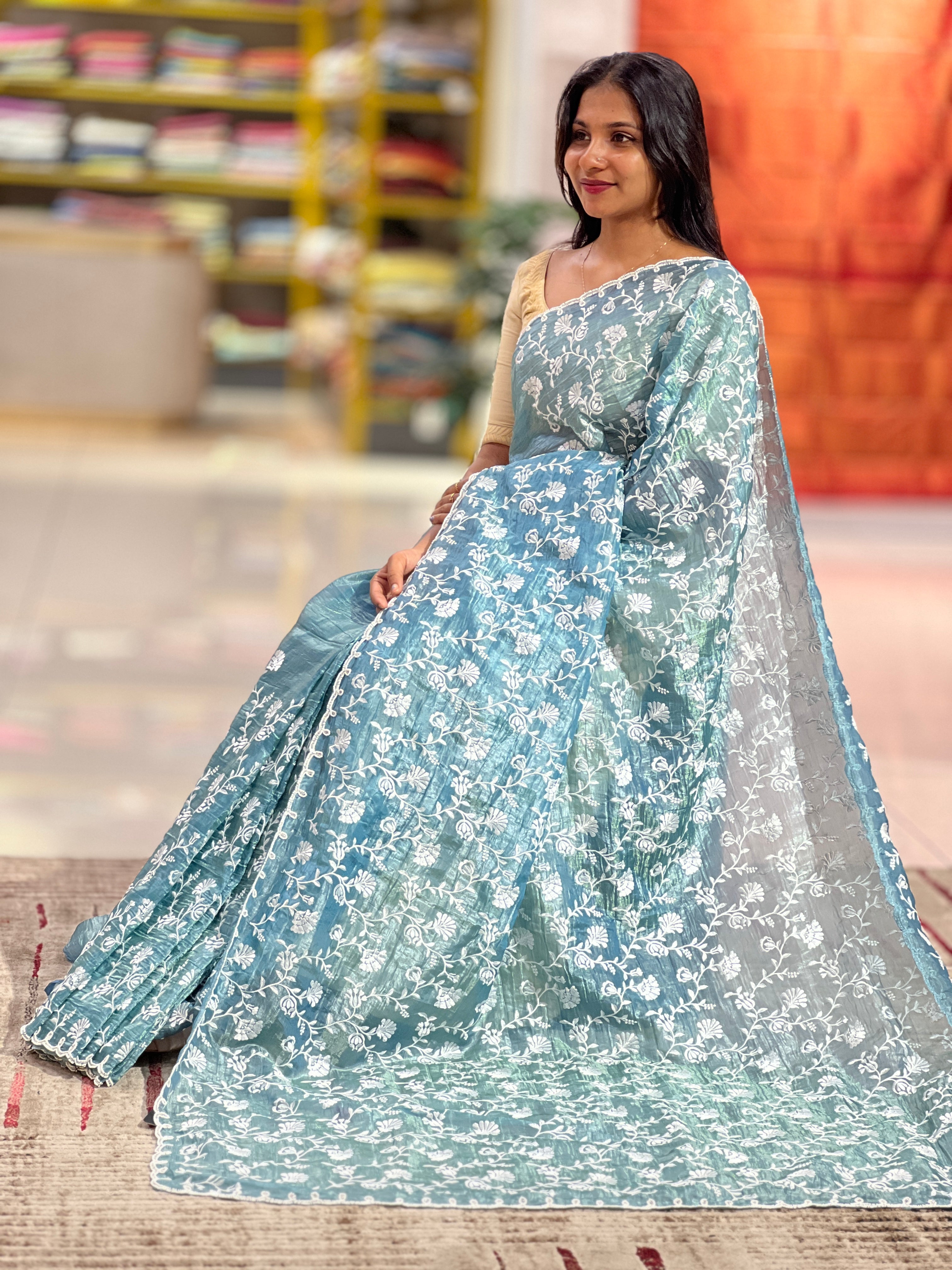 • Embroidered Crushed Tissue Organza Saree | RP626