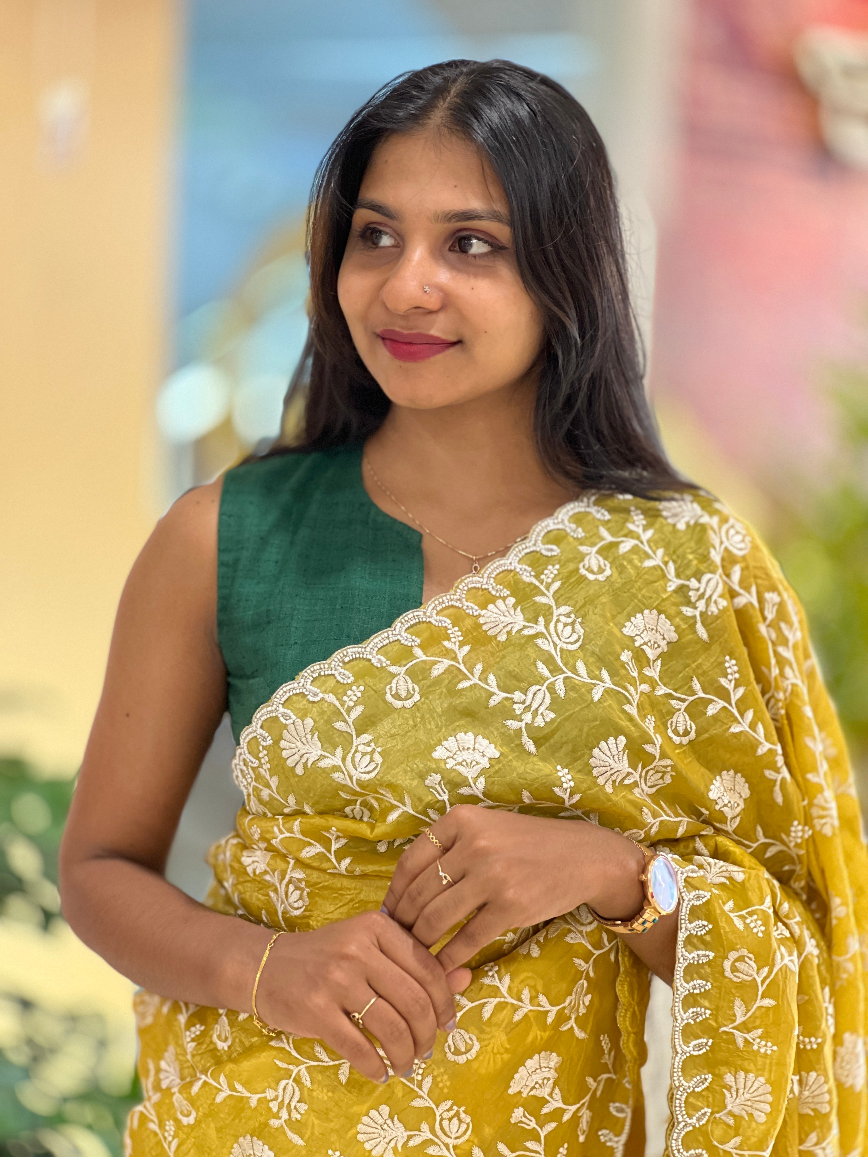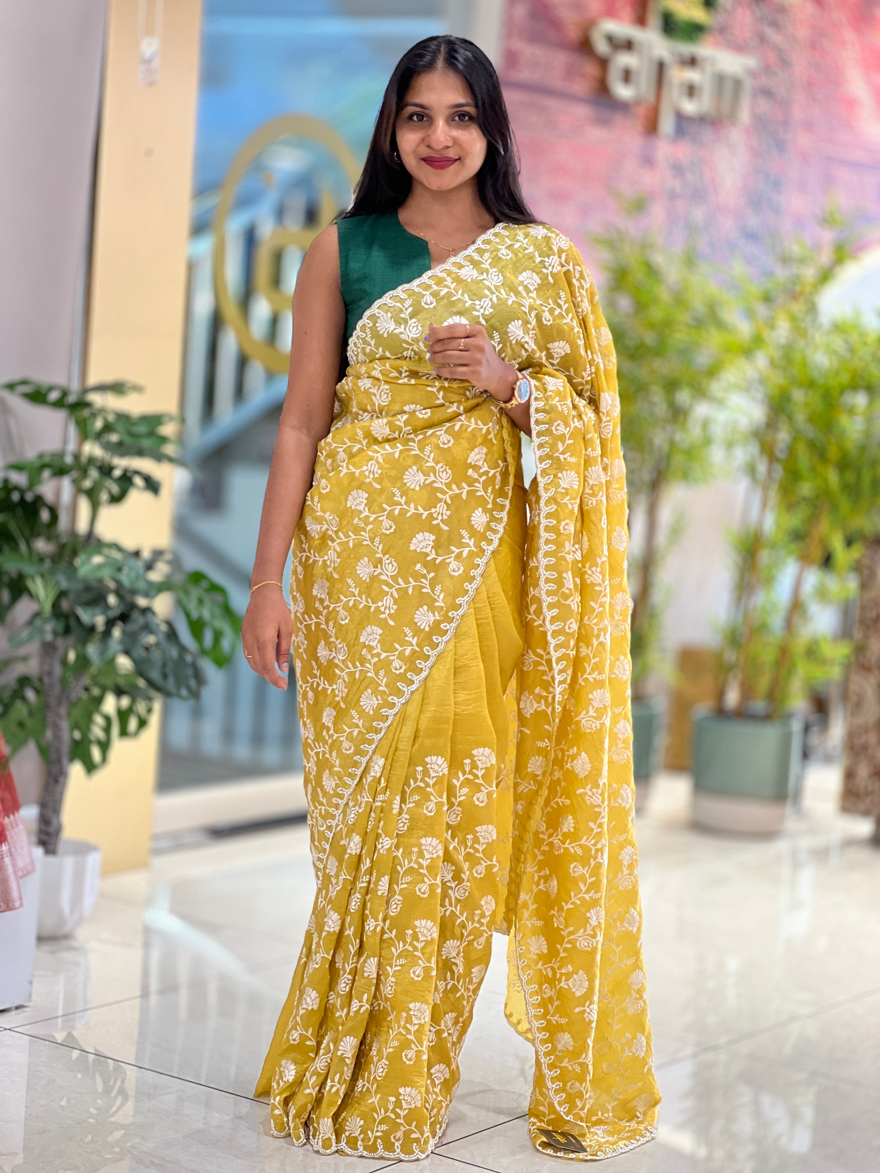 • Embroidered Crushed Tissue Organza Saree | RP628