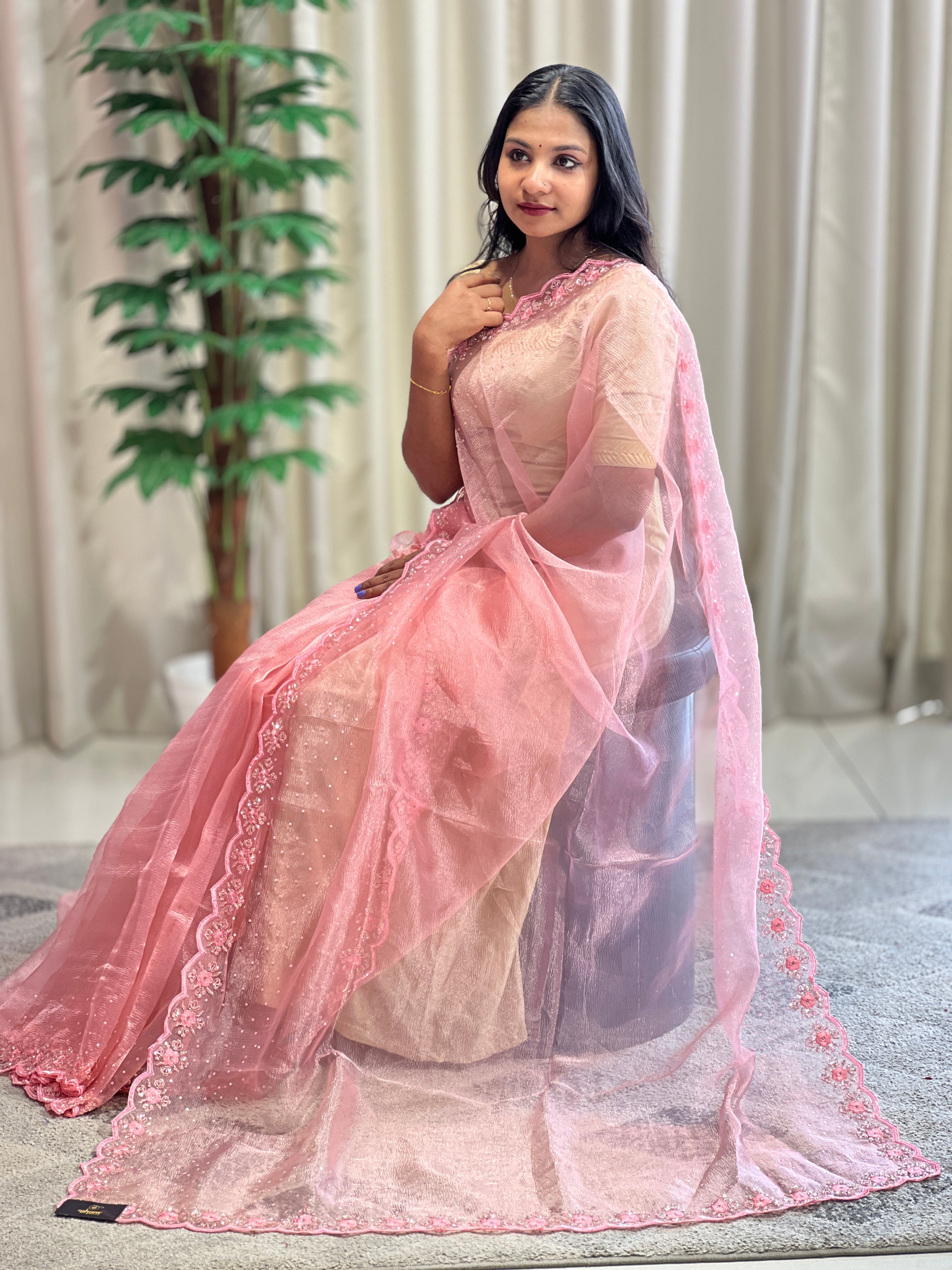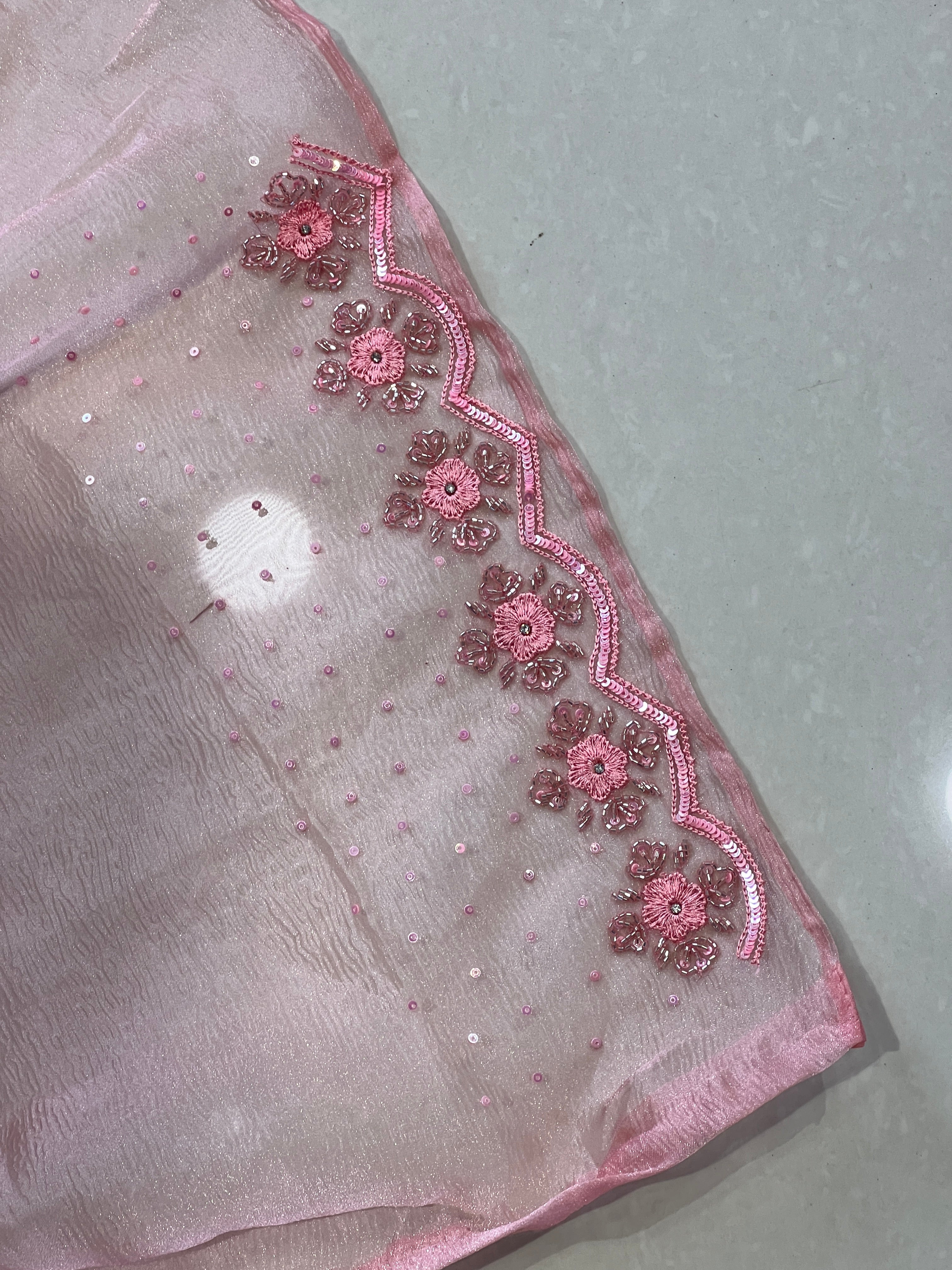 - Style: Machine Embroidery,Scallop Finishing, Sequence Sticking Work