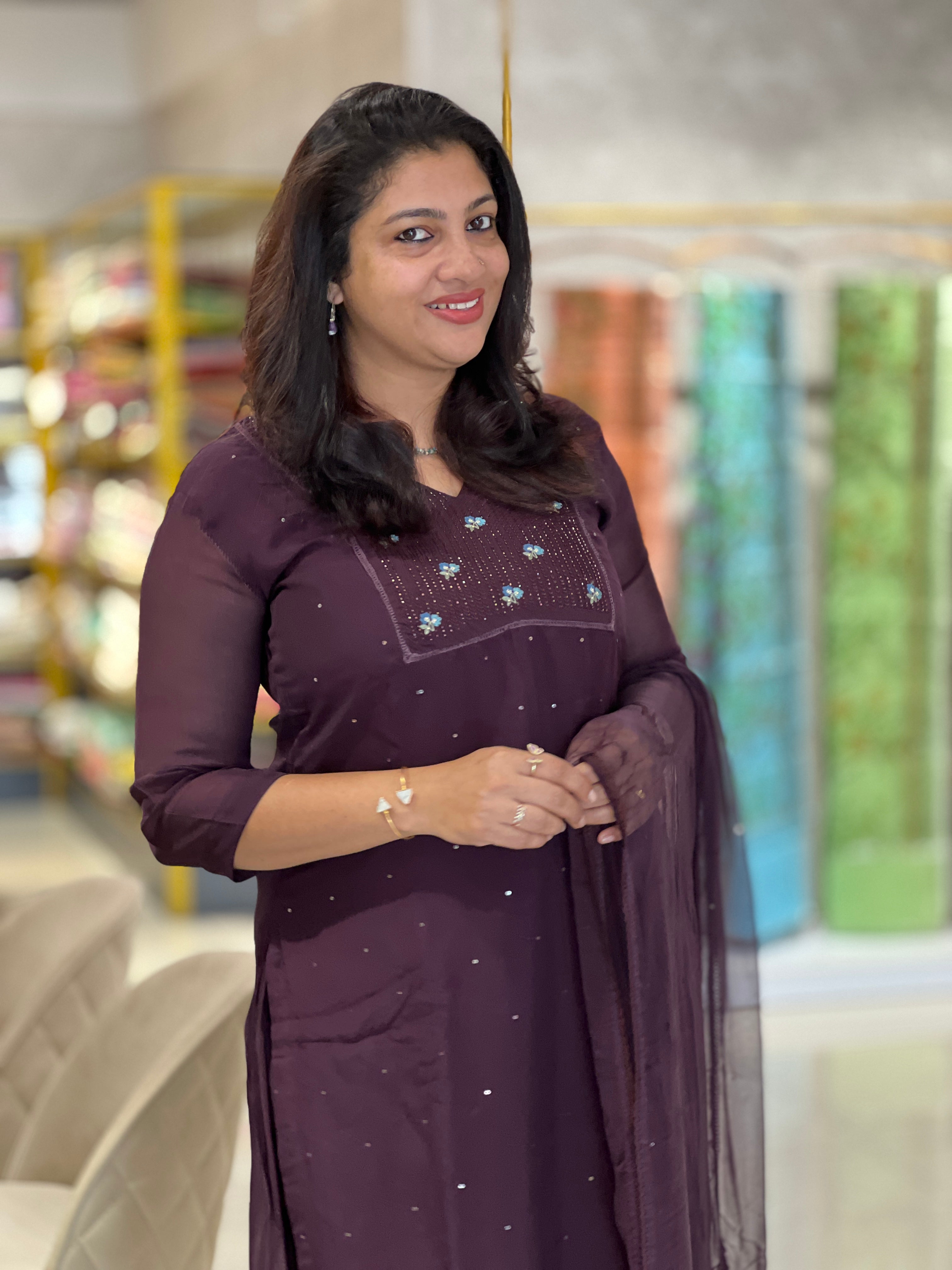 - Style: Embroidery Detailed Yoke Portion, Scattered Sequence Highlight Embroidery