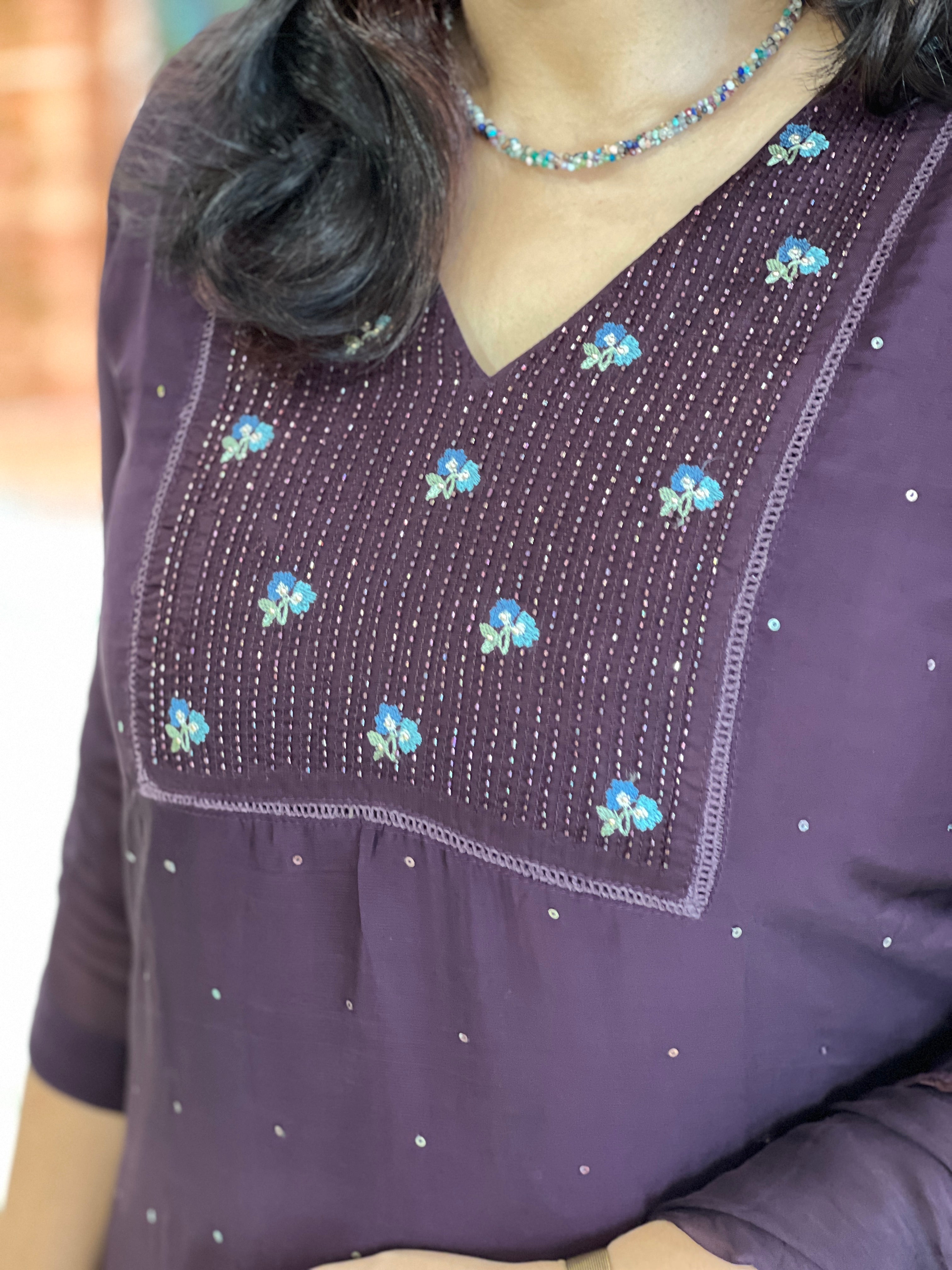 - Style: Embroidery Detailed Yoke Portion, Scattered Sequence Highlight Embroidery
