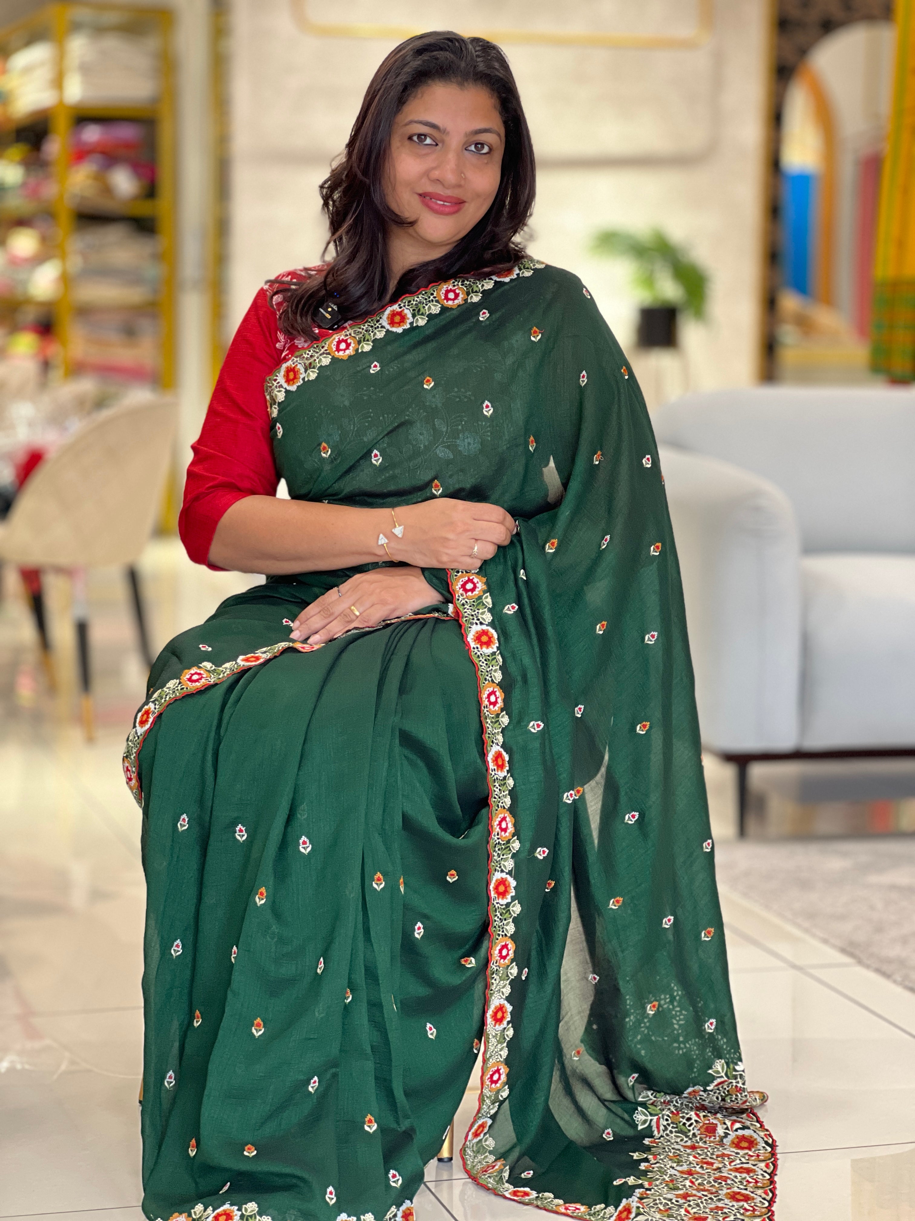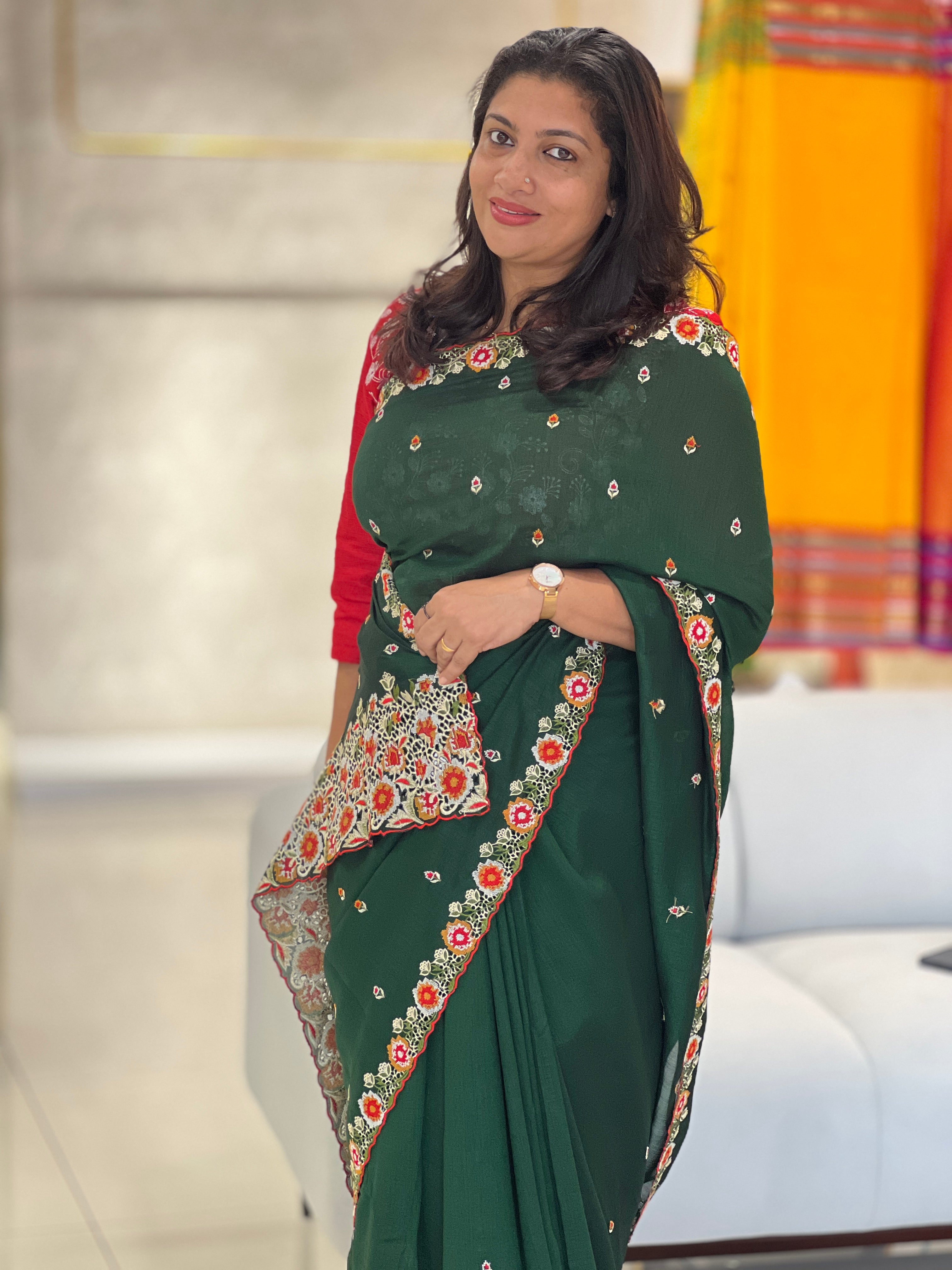 - Style: Cut Work & Cross Stitch Embroidery Borders & Pallu, Scattered Floral Motifs
