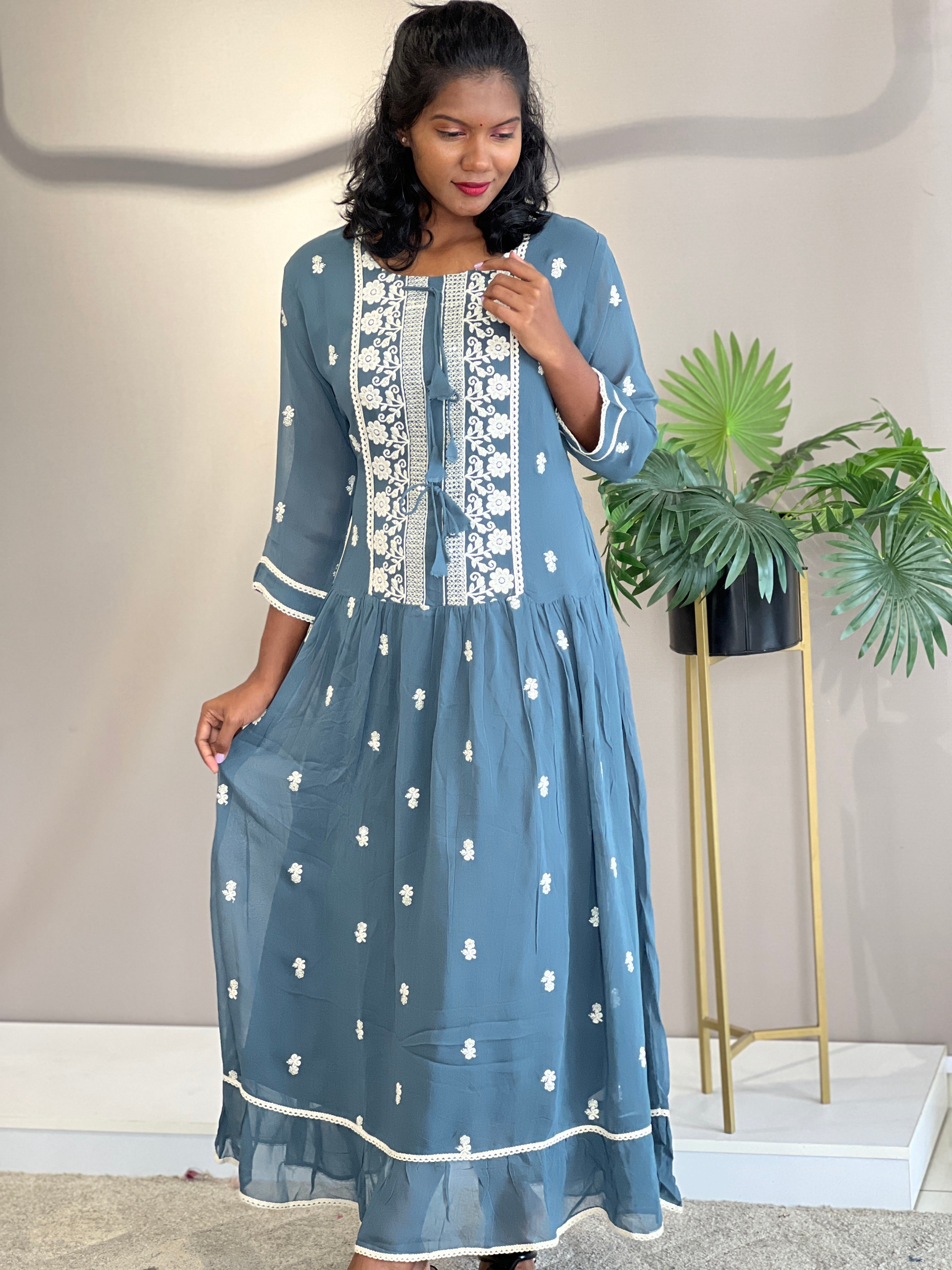Embroidery Design Georgette Kurta | NI386 Embroidery Design Georgette Kurta | NI386