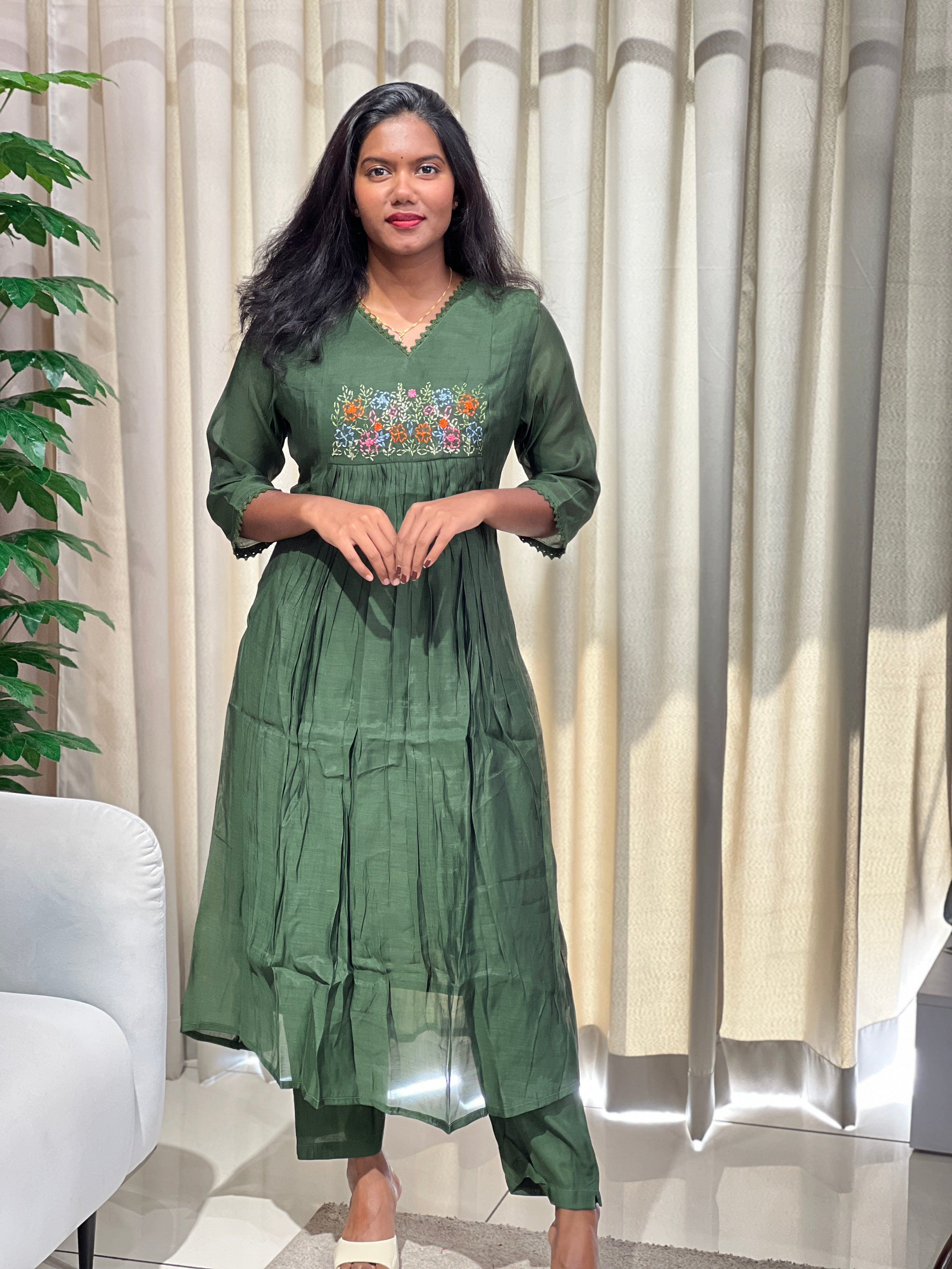 • Embroidery Detailed Chanderi Finish Kurta Set | SRF150