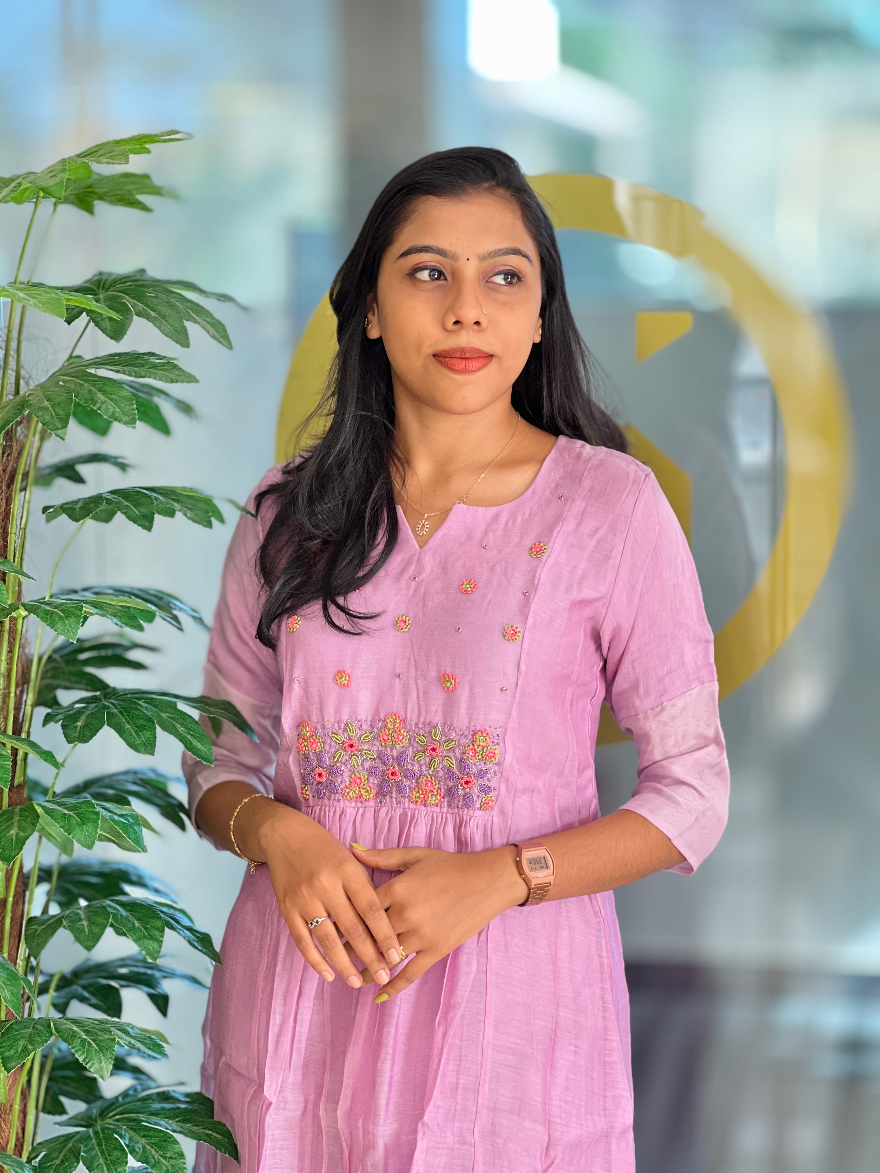 - Style: Cut Beads & French Knot Embroidery Detailed Yoke Portion, Gathering Detailing, A-Line Pattern, With Lining