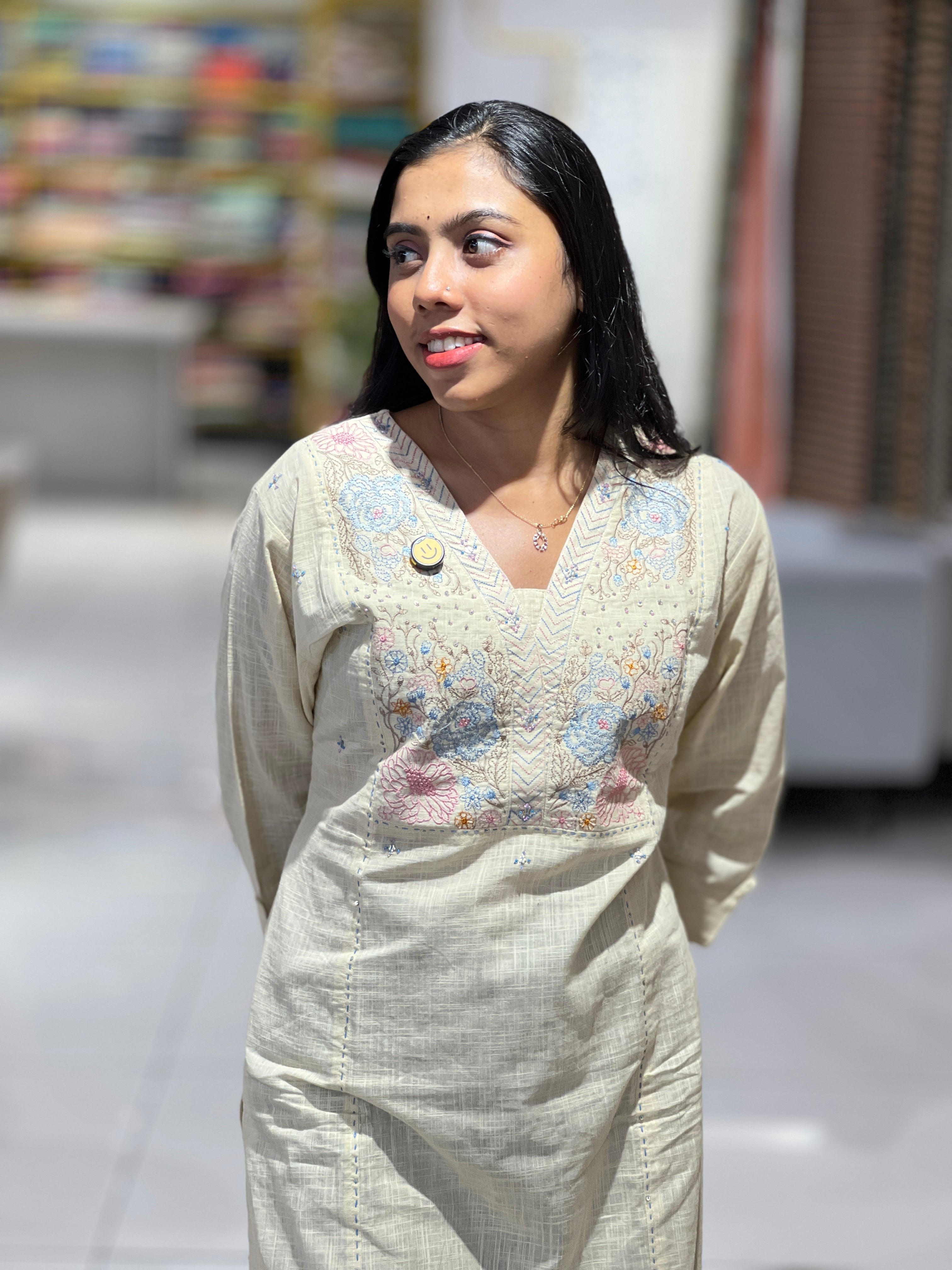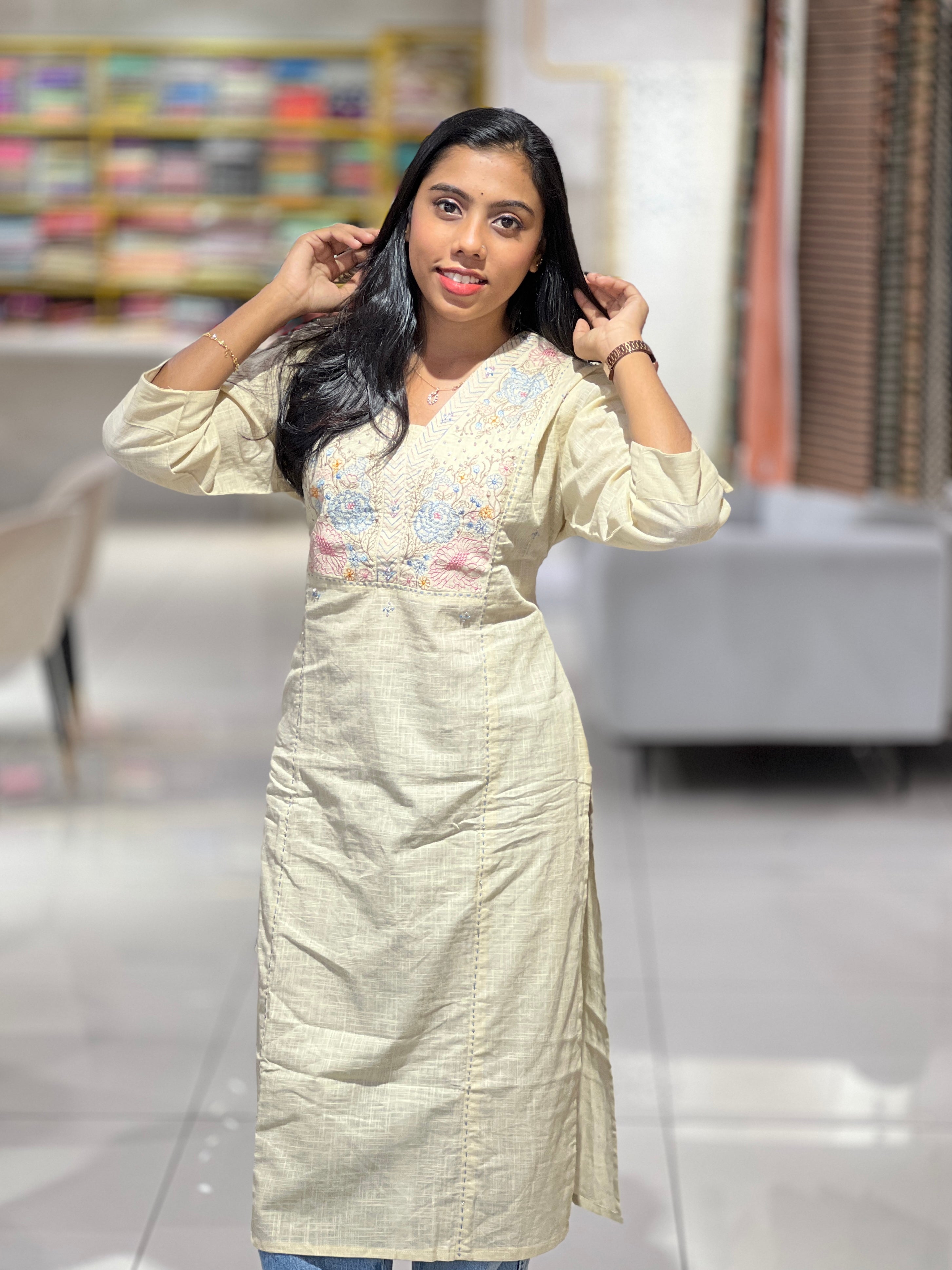 - Style: Embroidery and Beads Work on Yoke, Side Slitted Pattern
