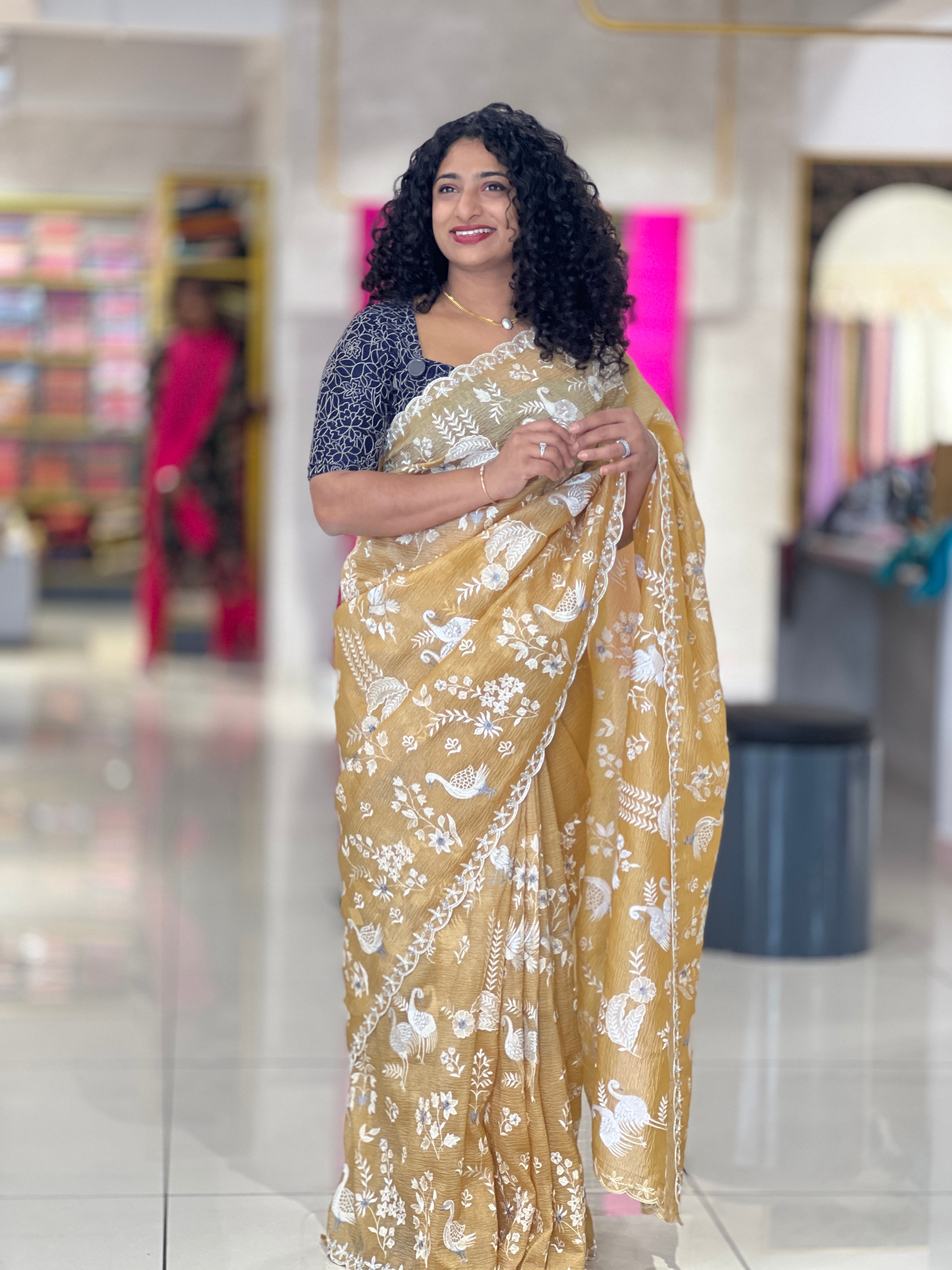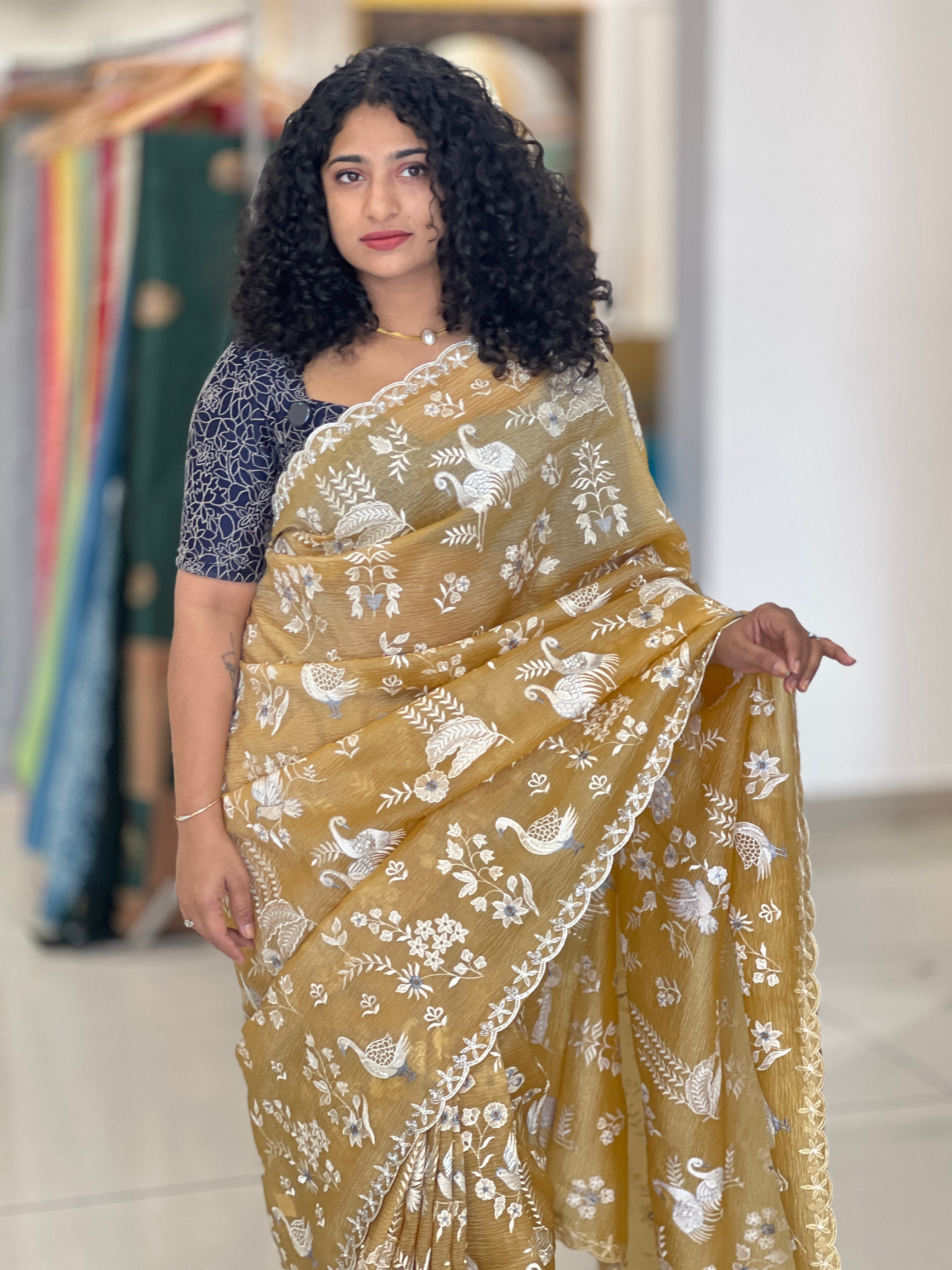 - Style: Machine Embroidery Detailed Body, Floral & Bird Pattern, Hand Embroidery Detailed Borders With Cut Tubes Highlight