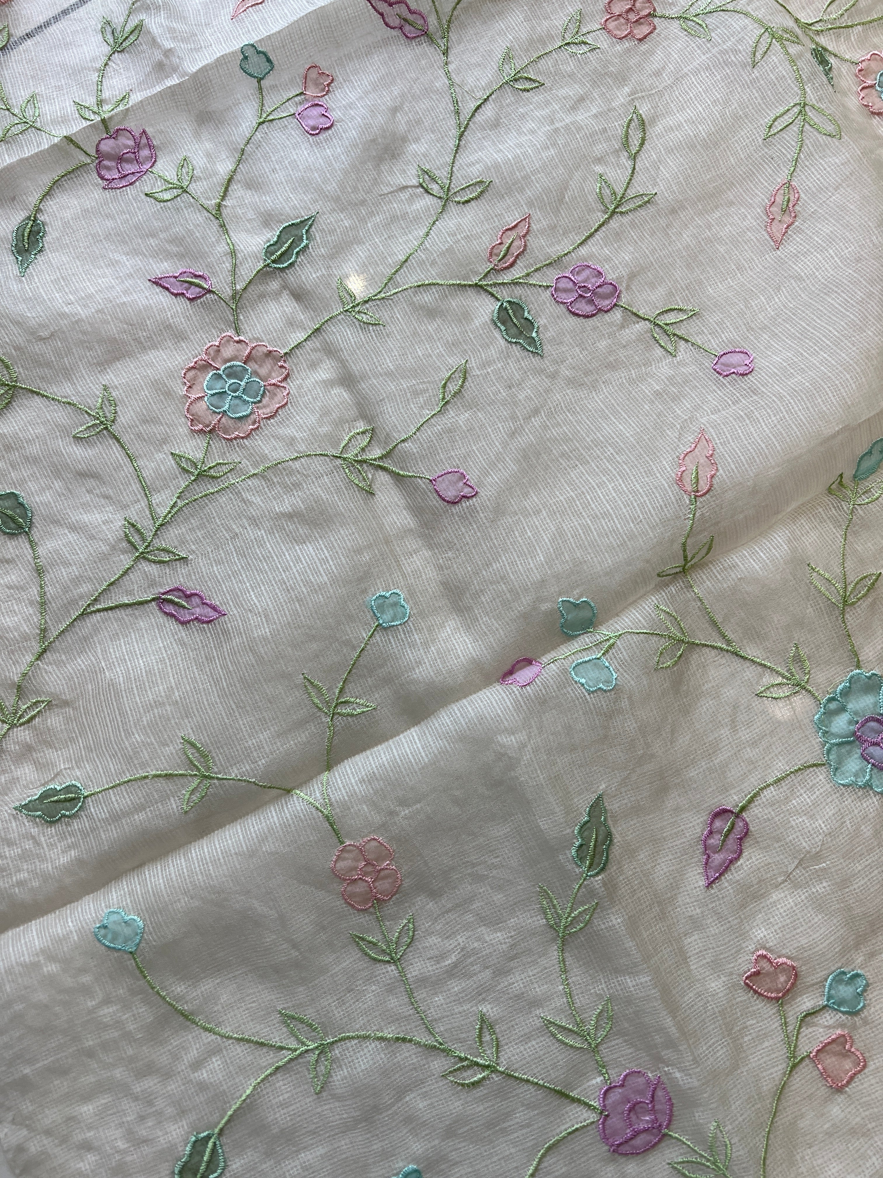 •  Style: Shaded Border With Point Embroidery & Scallop Detailing, Multi Colour Organza Floral Applique Detailing