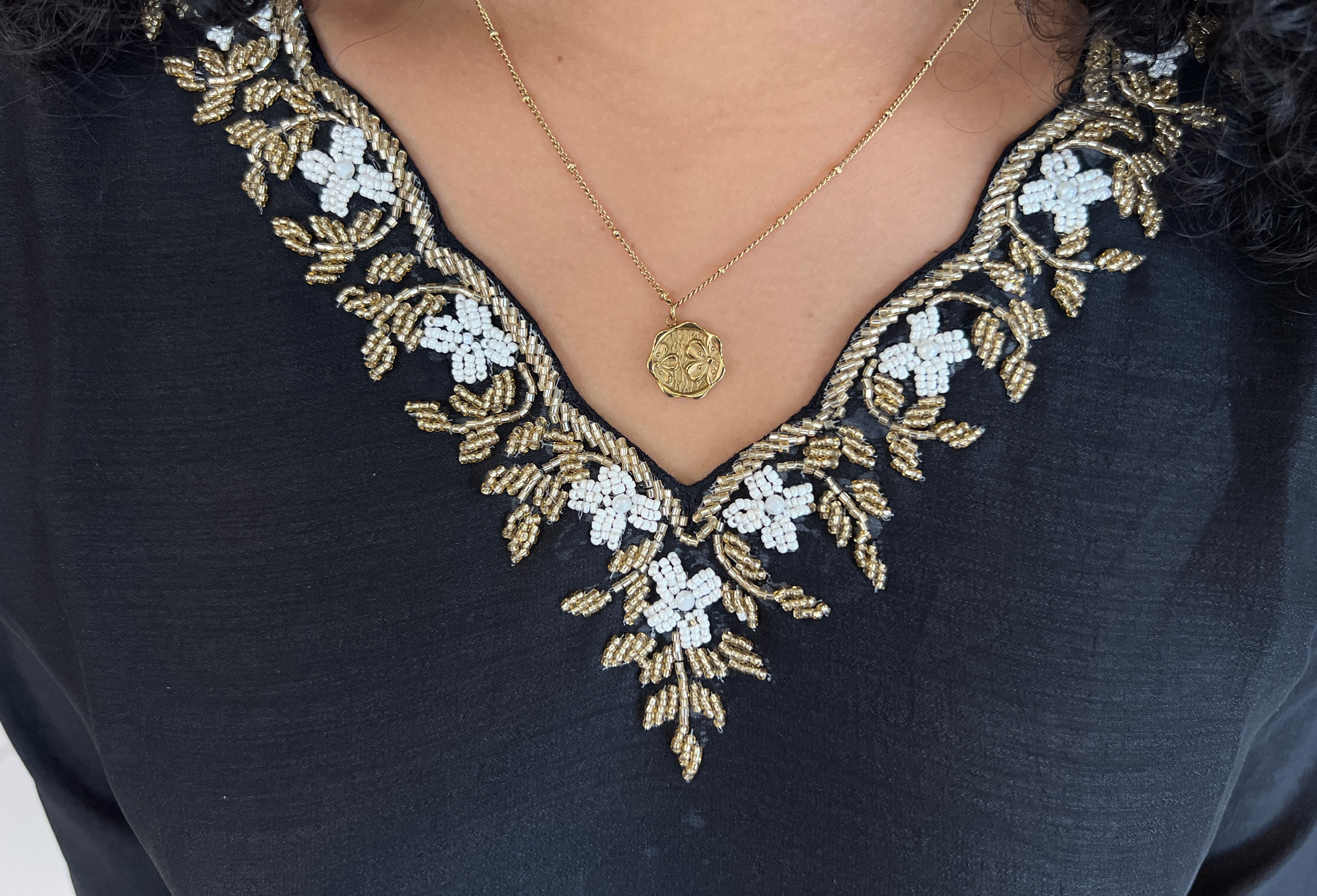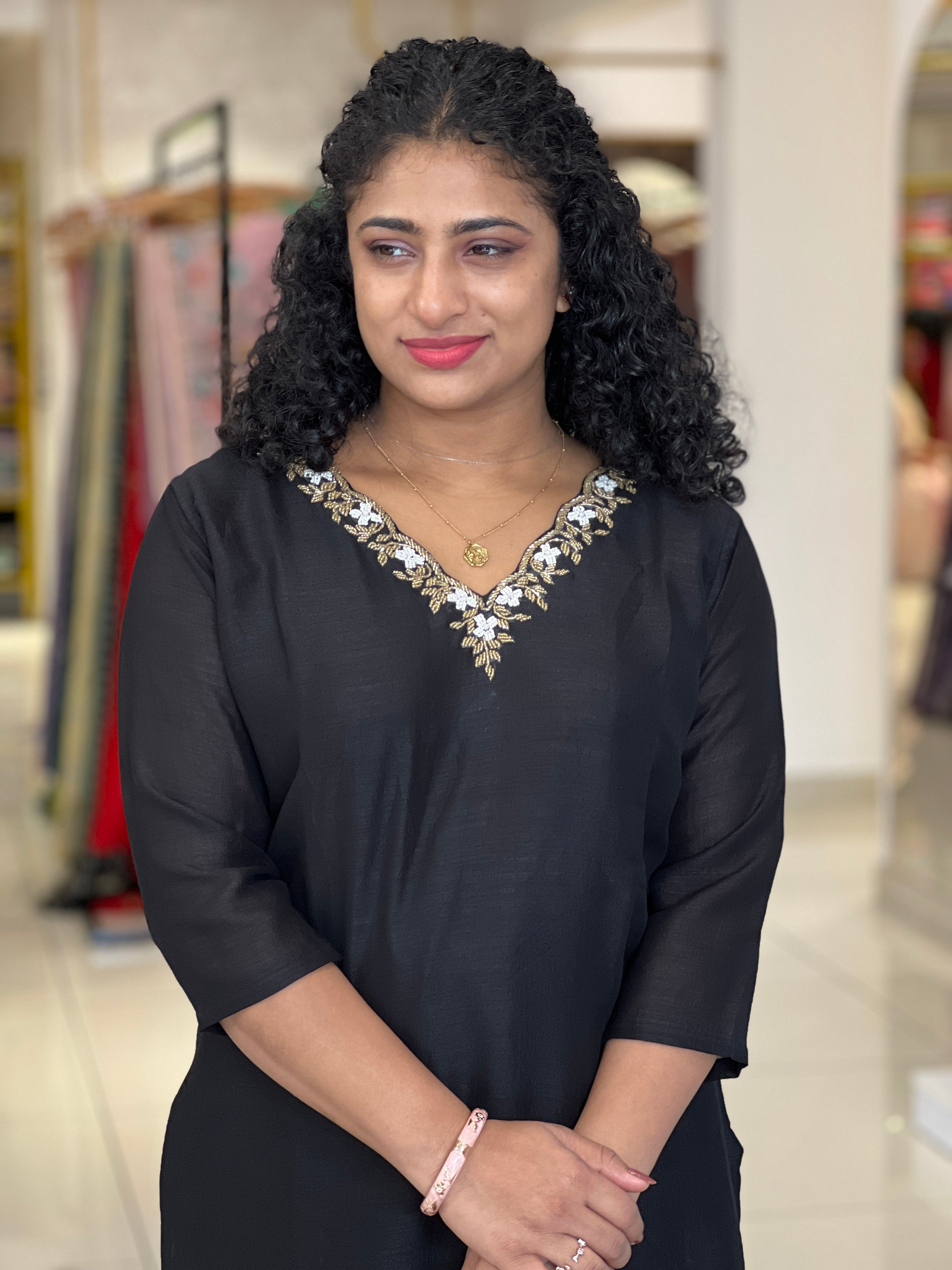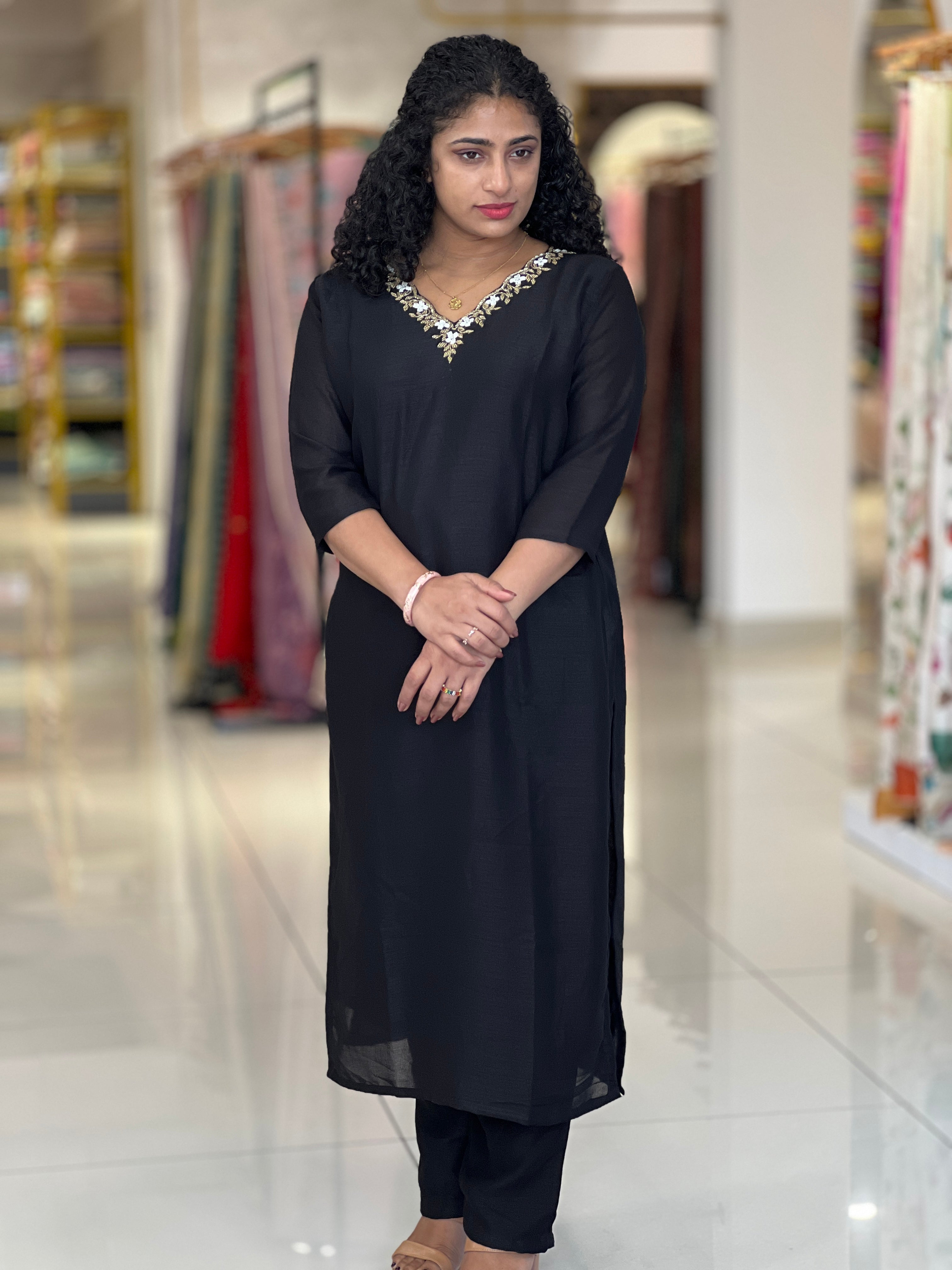 - Style: Embroidery With Cut Beads Detailing On Neck, With Lining, Side Slitted