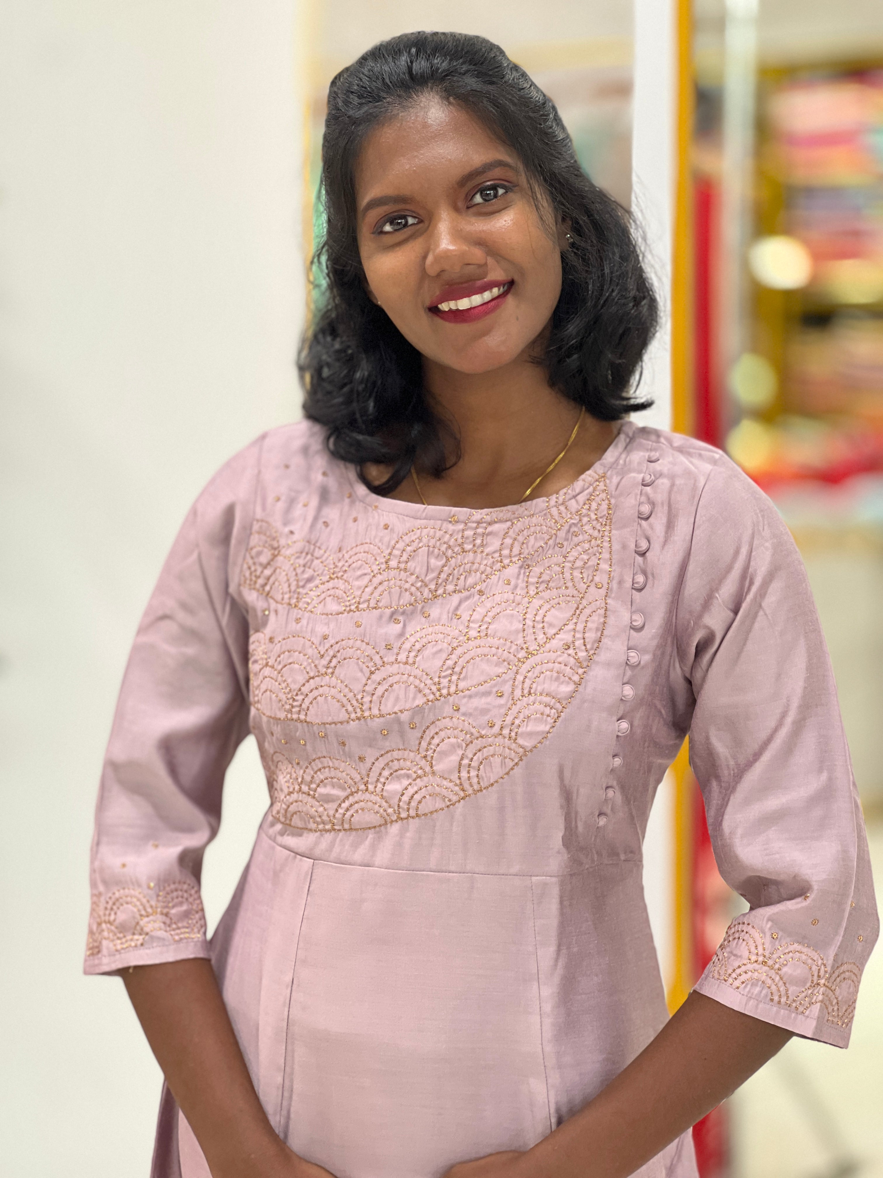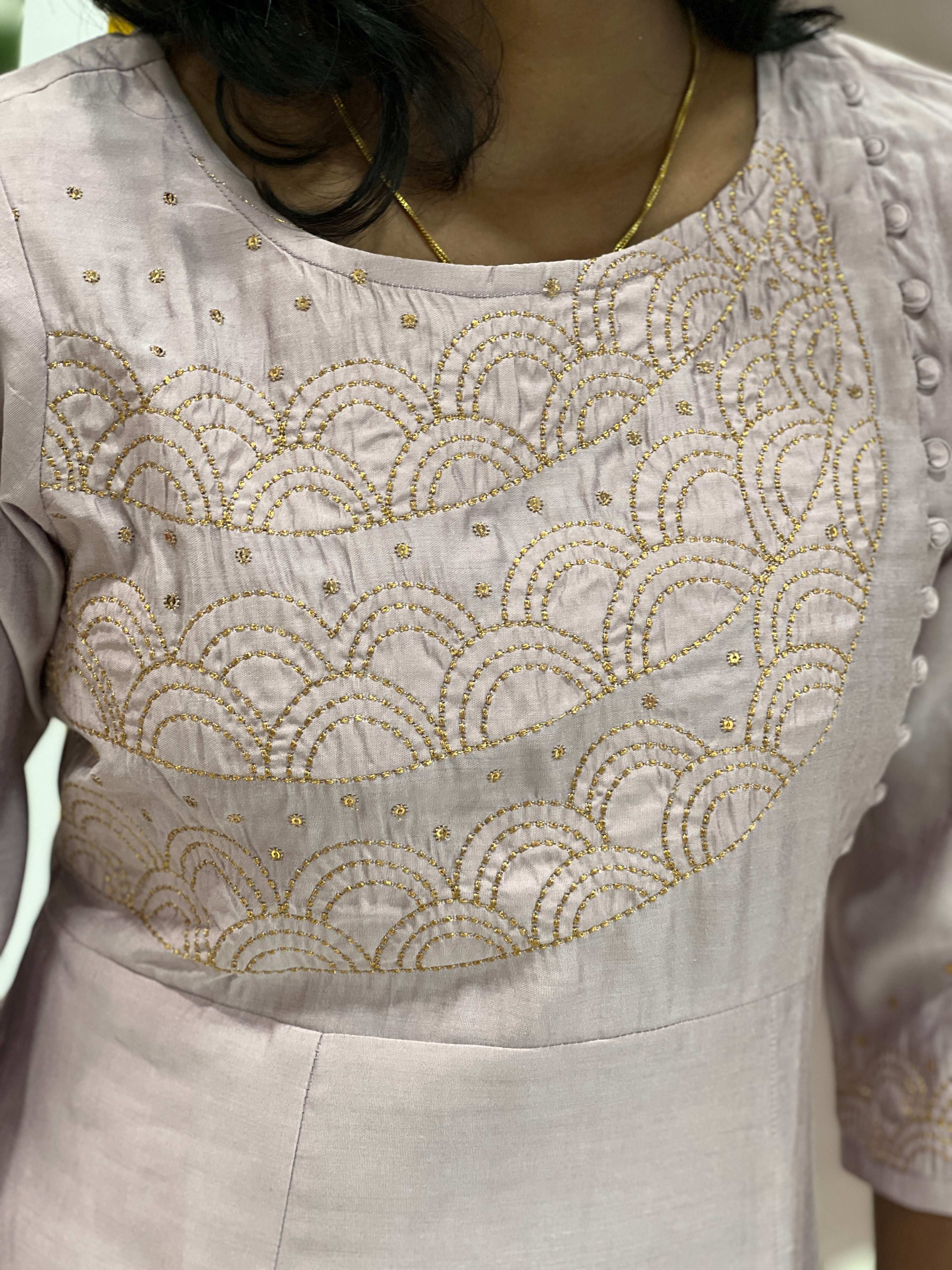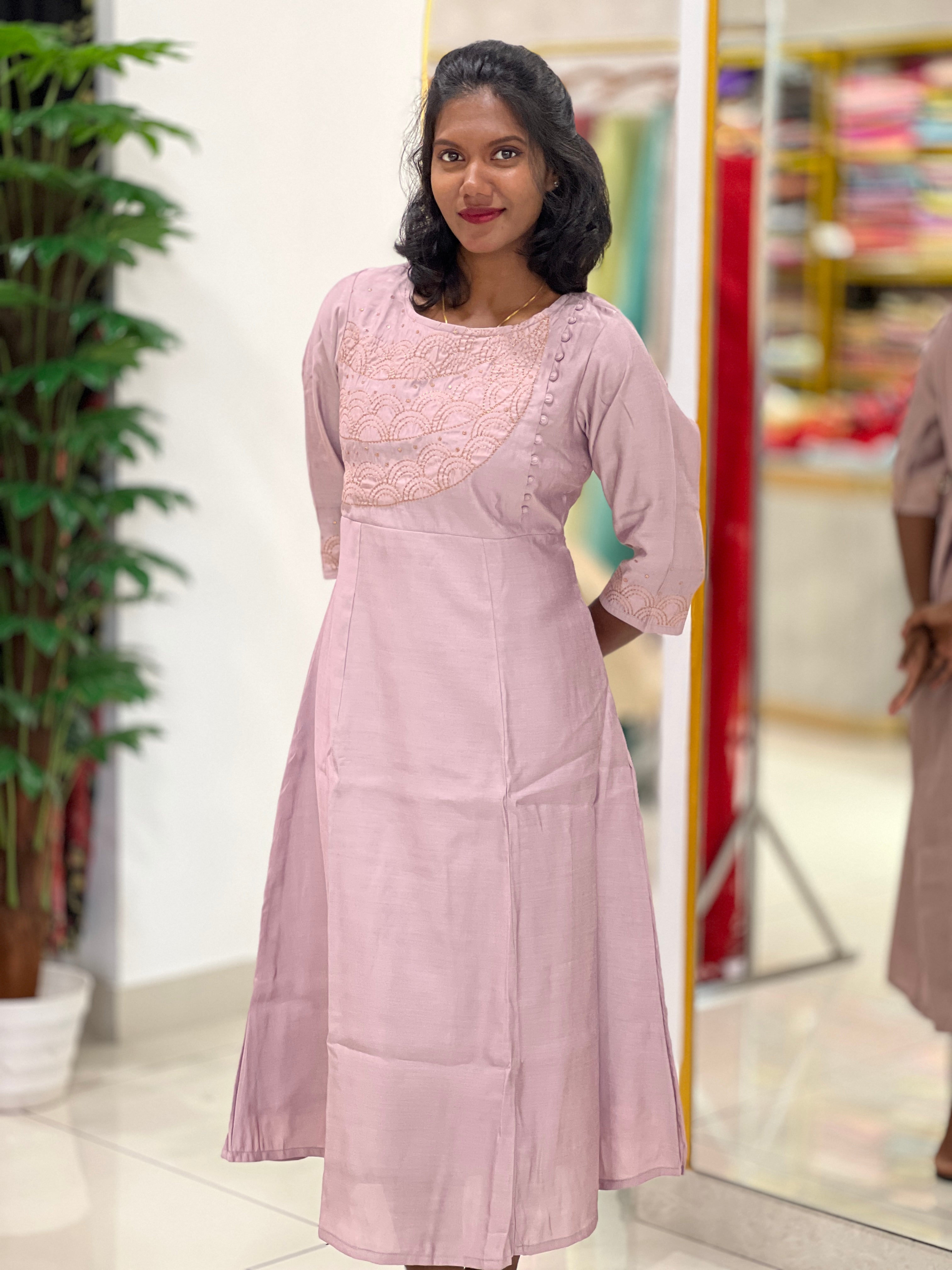 - Style: Yoke & Sleeve Embroidery Detailing , A-Line, Potil Details