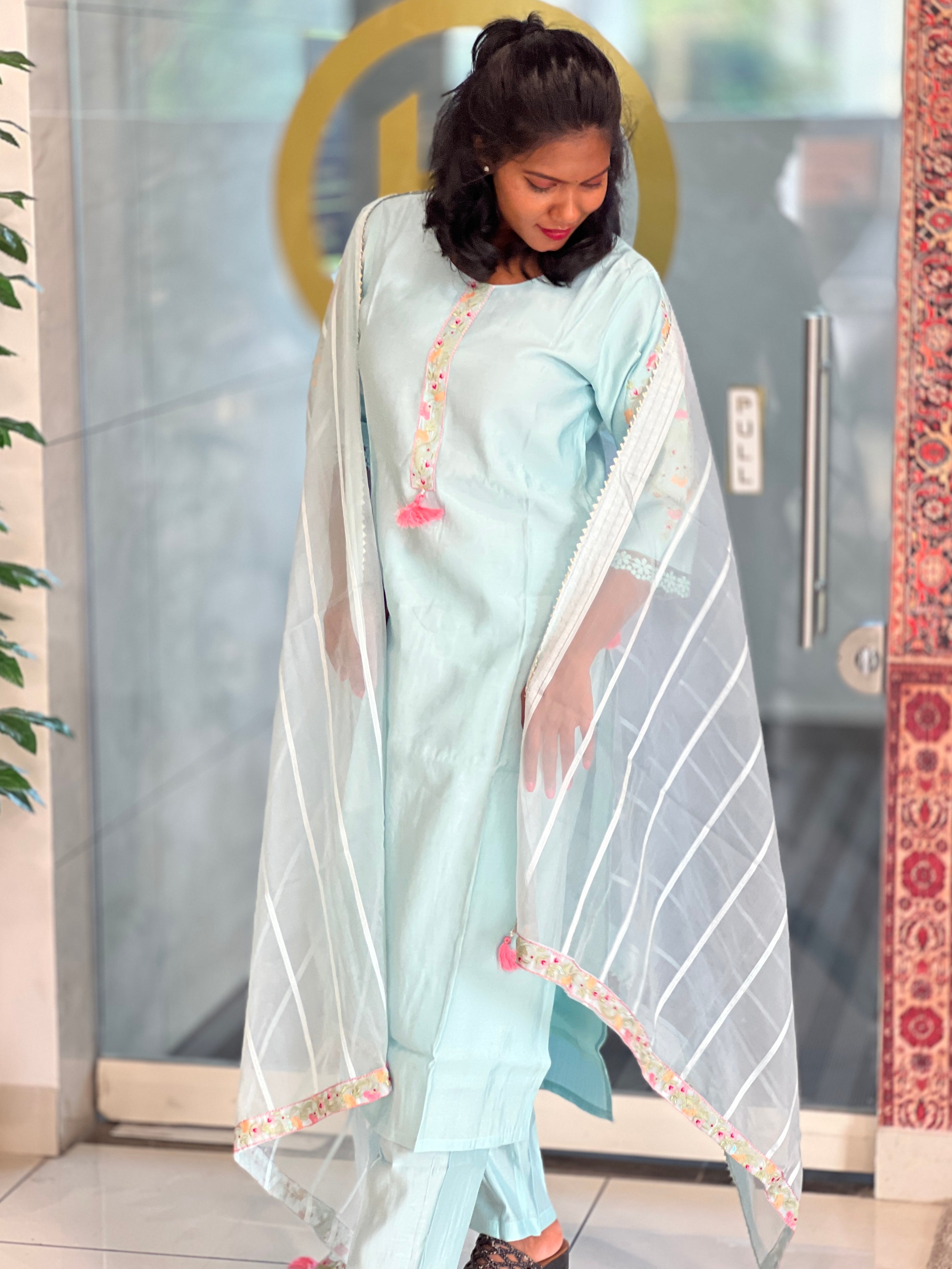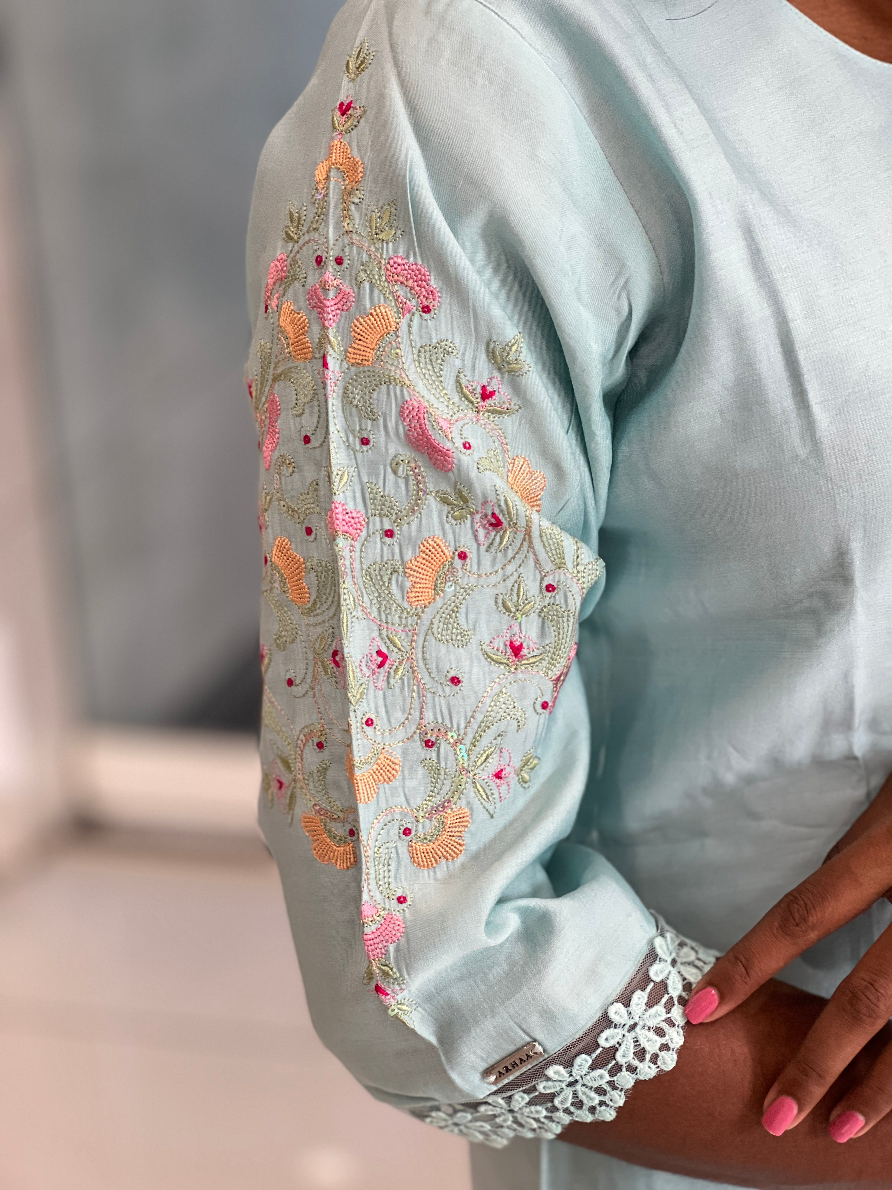 - Style: Embroidery Work Pattern, Sleeves Highlighte Embroidery work & End Portion Lace Attaching,Slitted top,Tssels Highlighting,