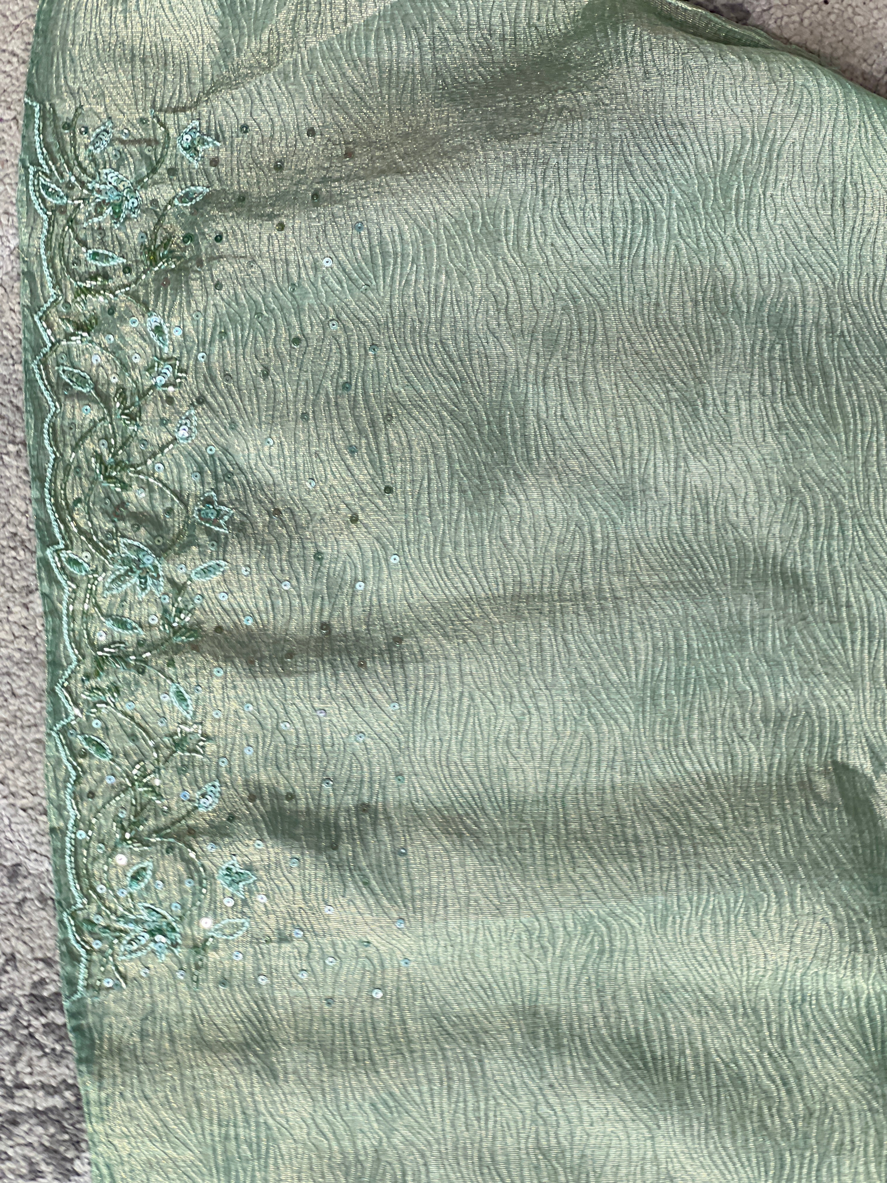 • Embroidery Pattern Shimmer Crushed Organza Saree | SBP828