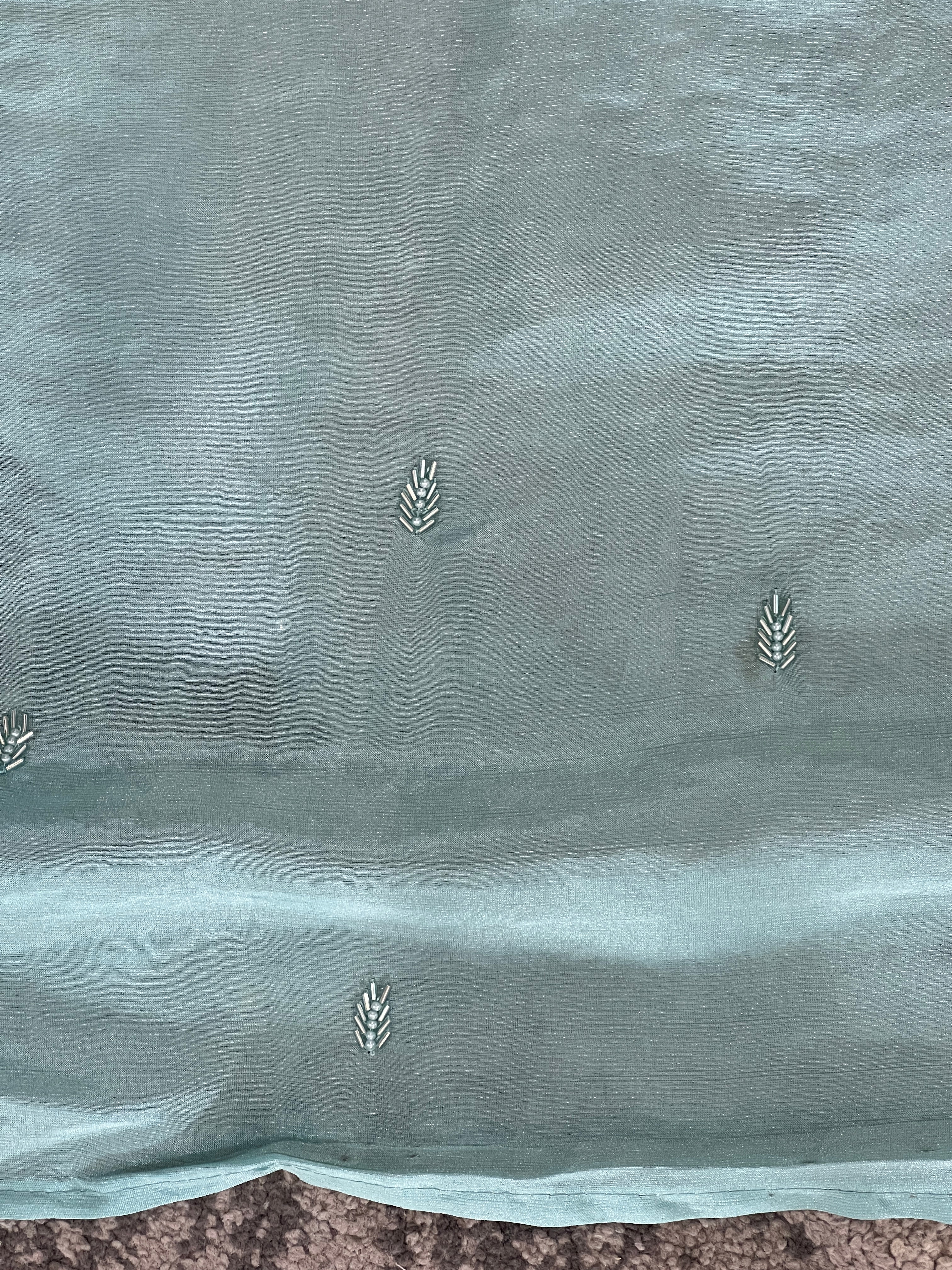 - Style:Leaf Embroidery Pattern Border,Beads and Cut Work Detiled, Scattered Stone Sticking Detail,Scallop Finishing