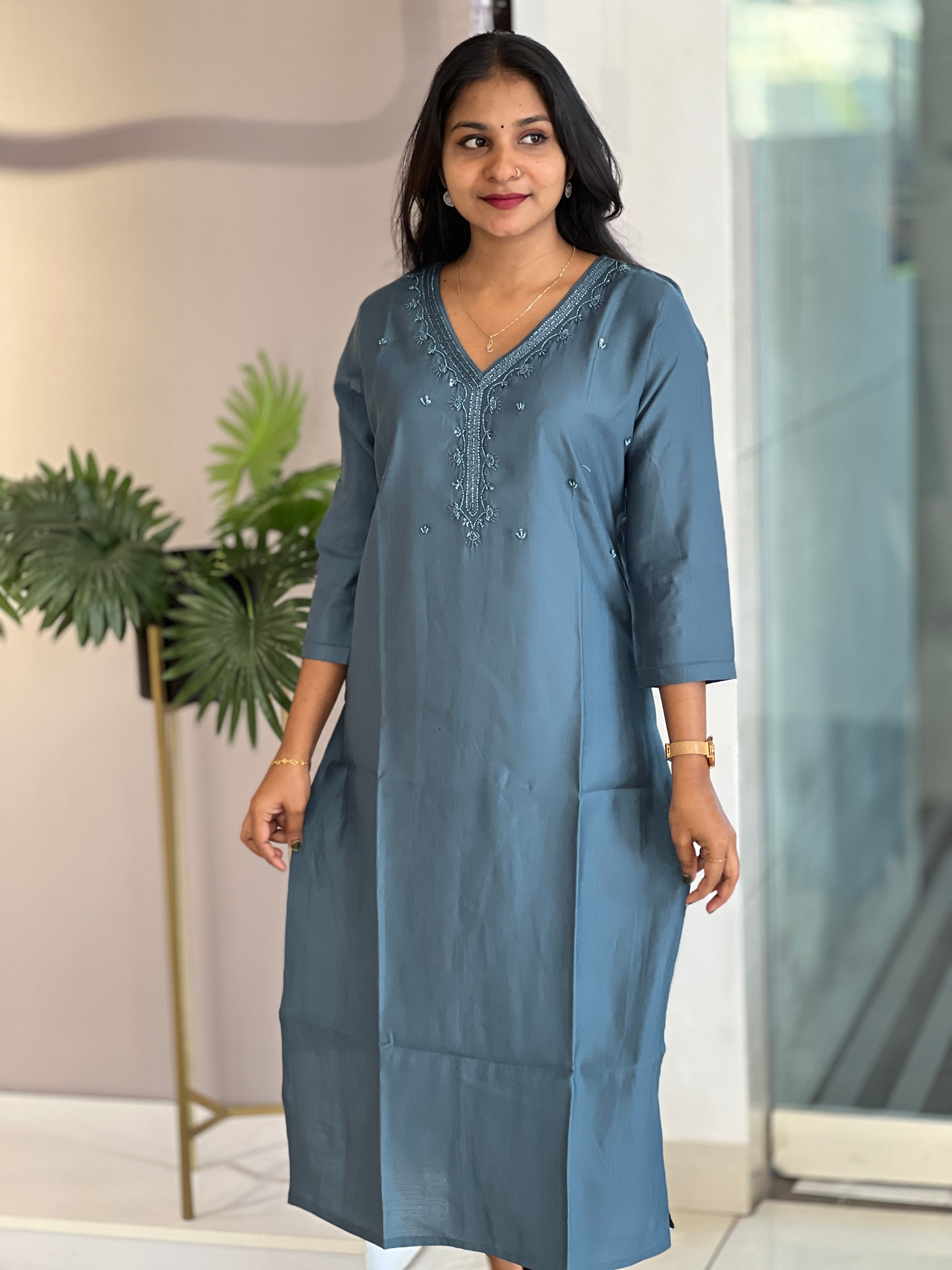 - Style: Neck Line Floral Embroidery Design,Body Weaving Pattern , Side Slited Pattern