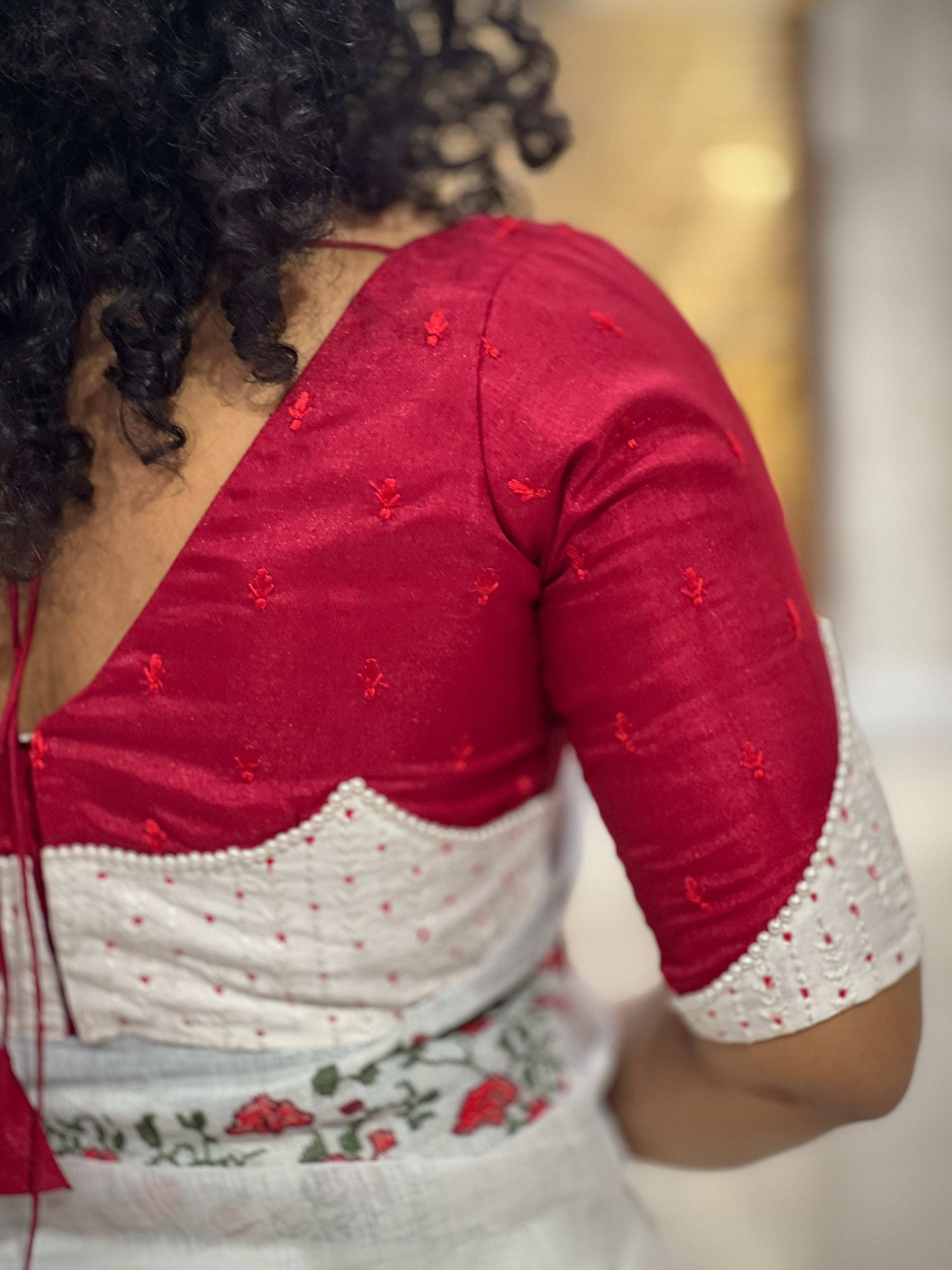 - Style: Machine Embroidery Sleeves, Triangle Embroidery With Pearl Detailing In Chanderi Finish Fabric, Scallop Detailing With Hand Embroidery Pearl Detailed Back Panel