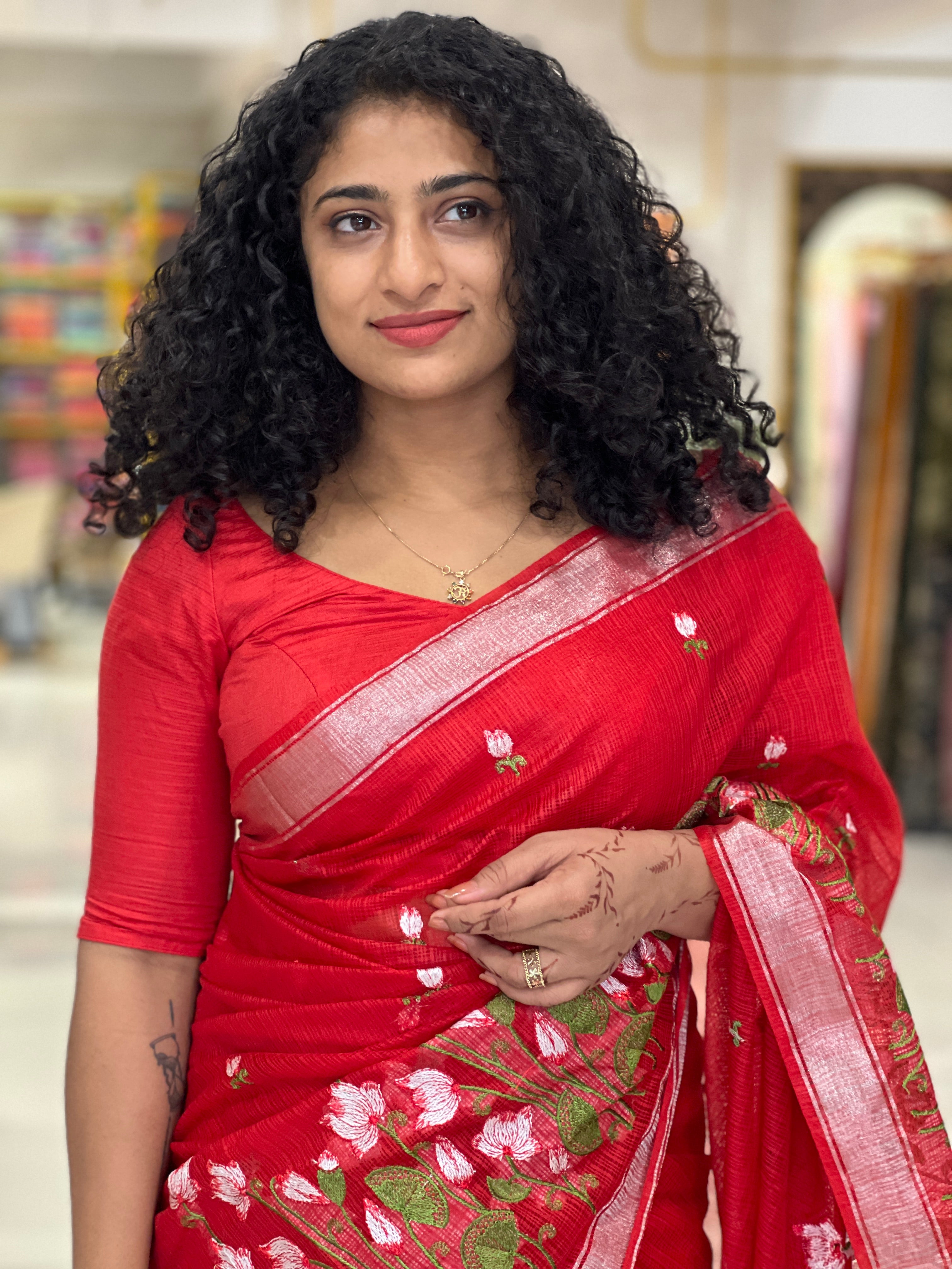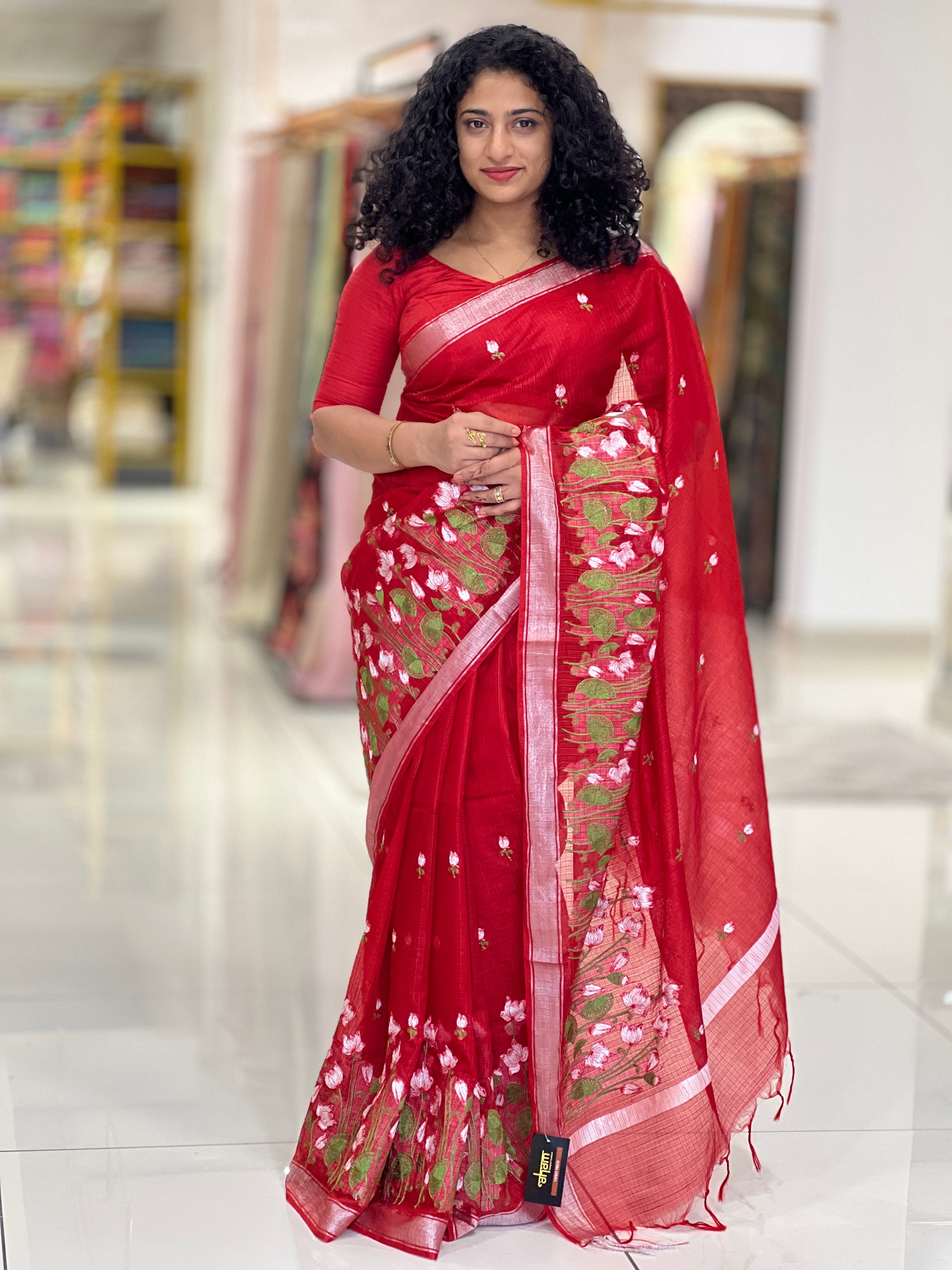 - Style: Silver Zari Border