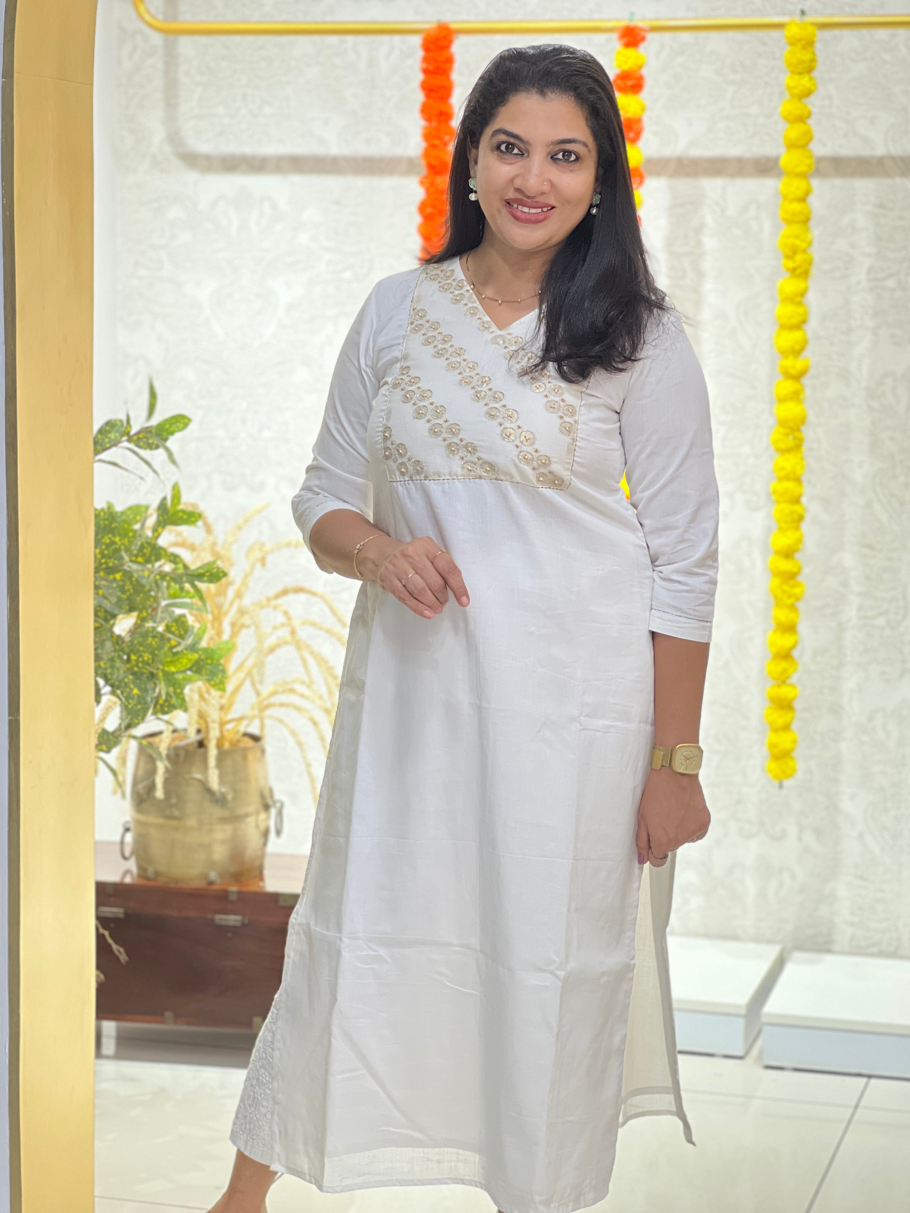 - Style - Embroidery With Sugar Beads Detailed Yoke Portion, Banarasi Weaved Yoke, With Lining, Side Slit Pattern