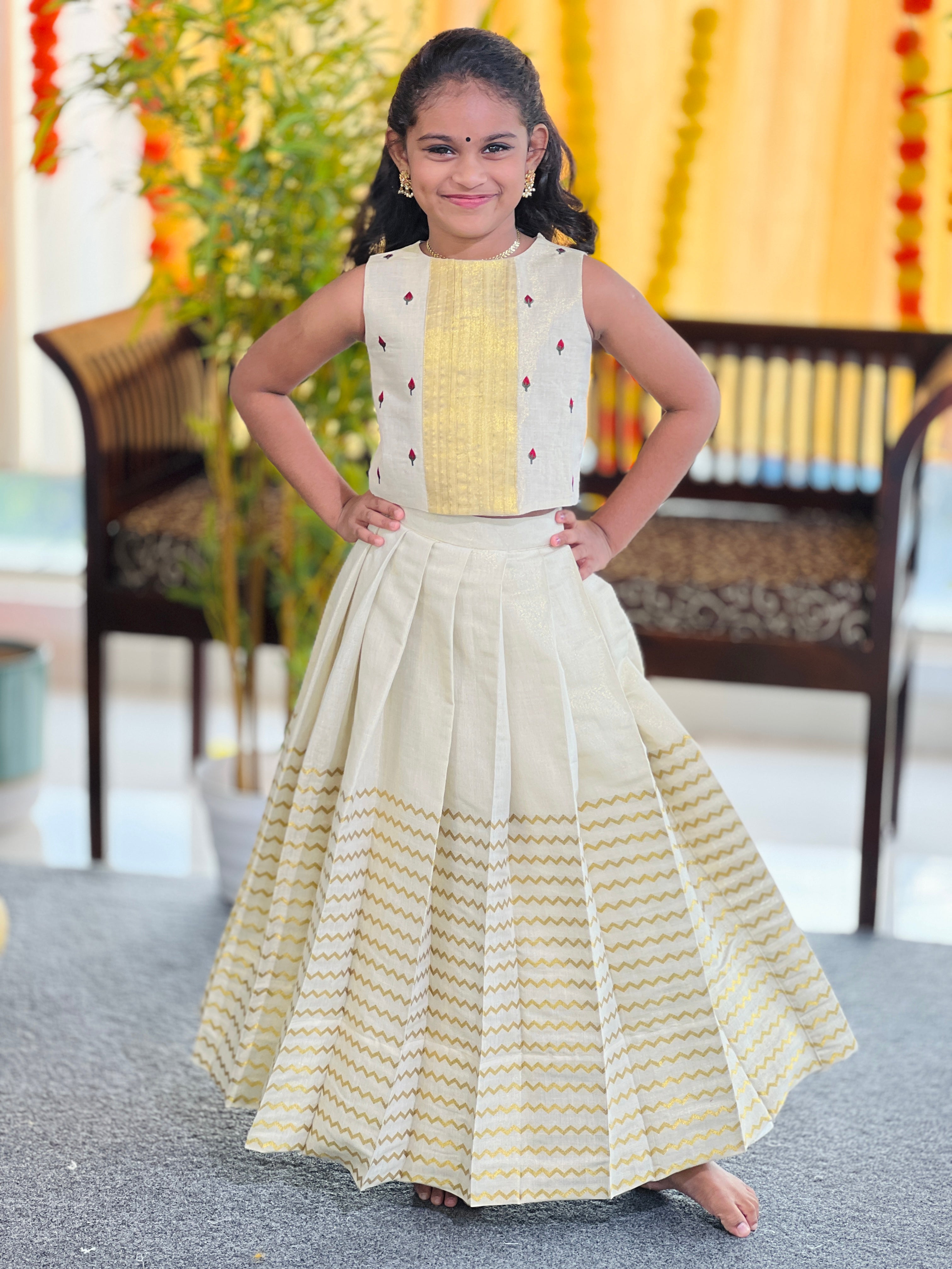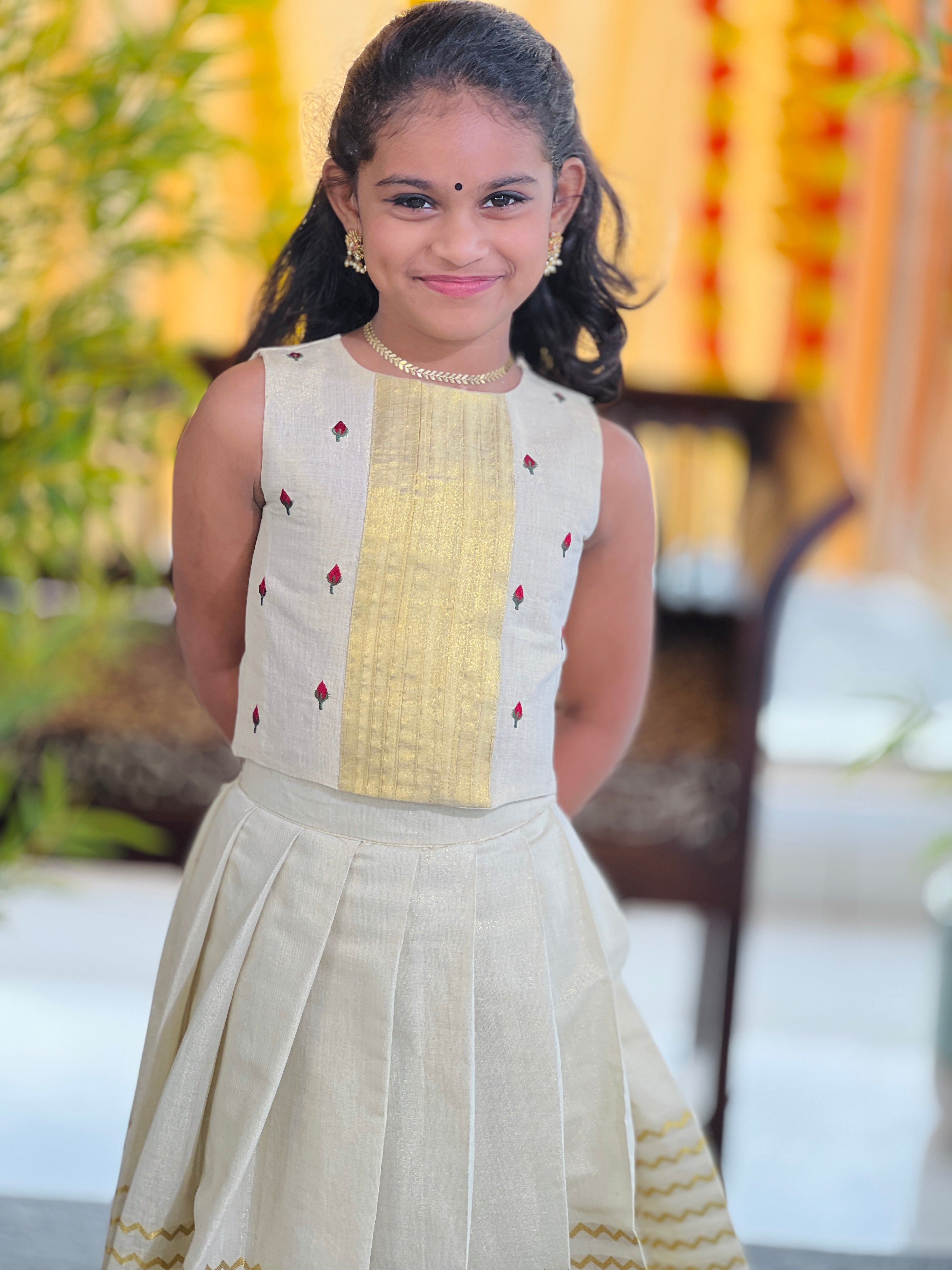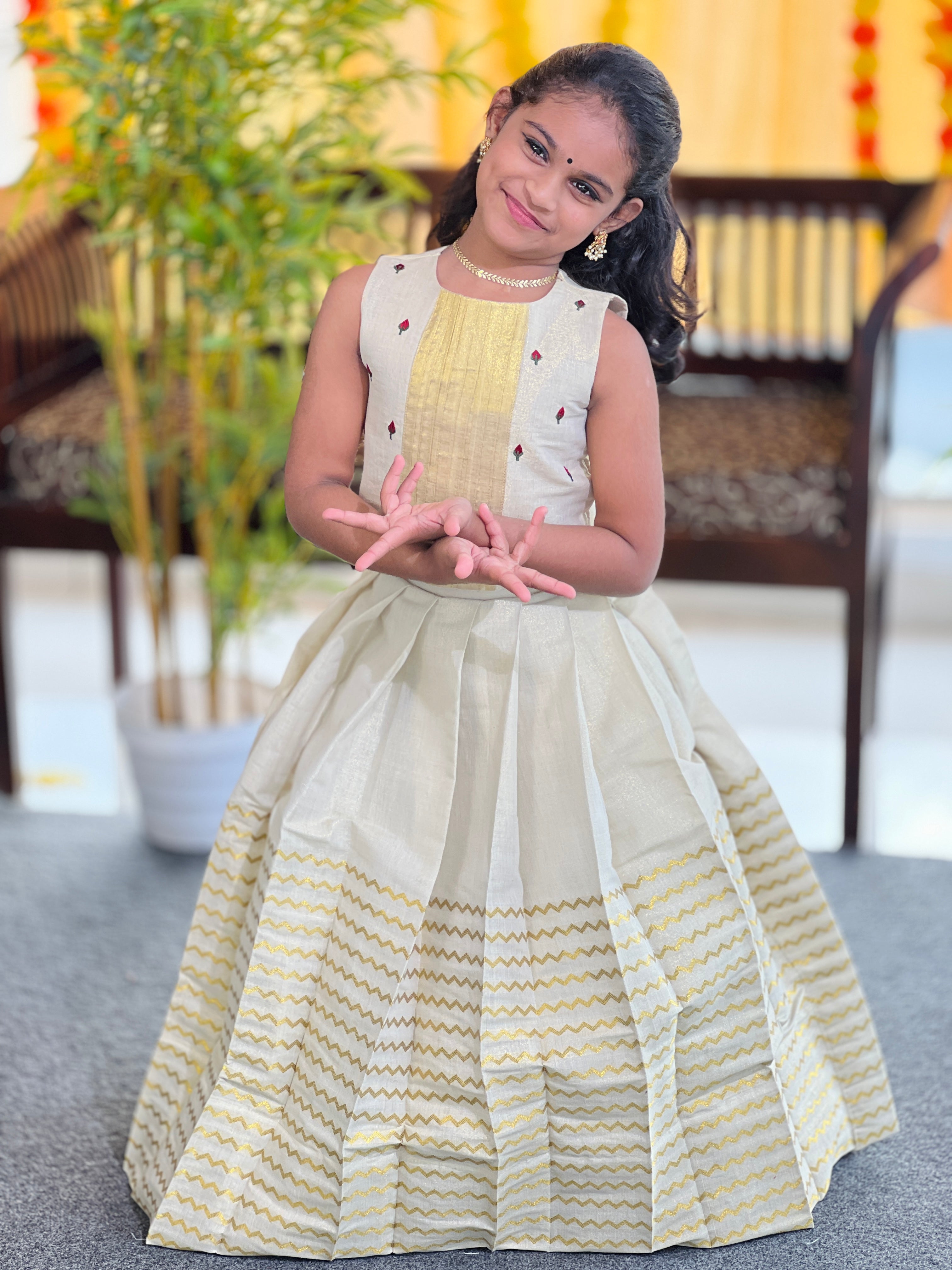 Style: Powerloom, Embroidery Detailing, Kasavu Pin Tuck Detailed Center Panel