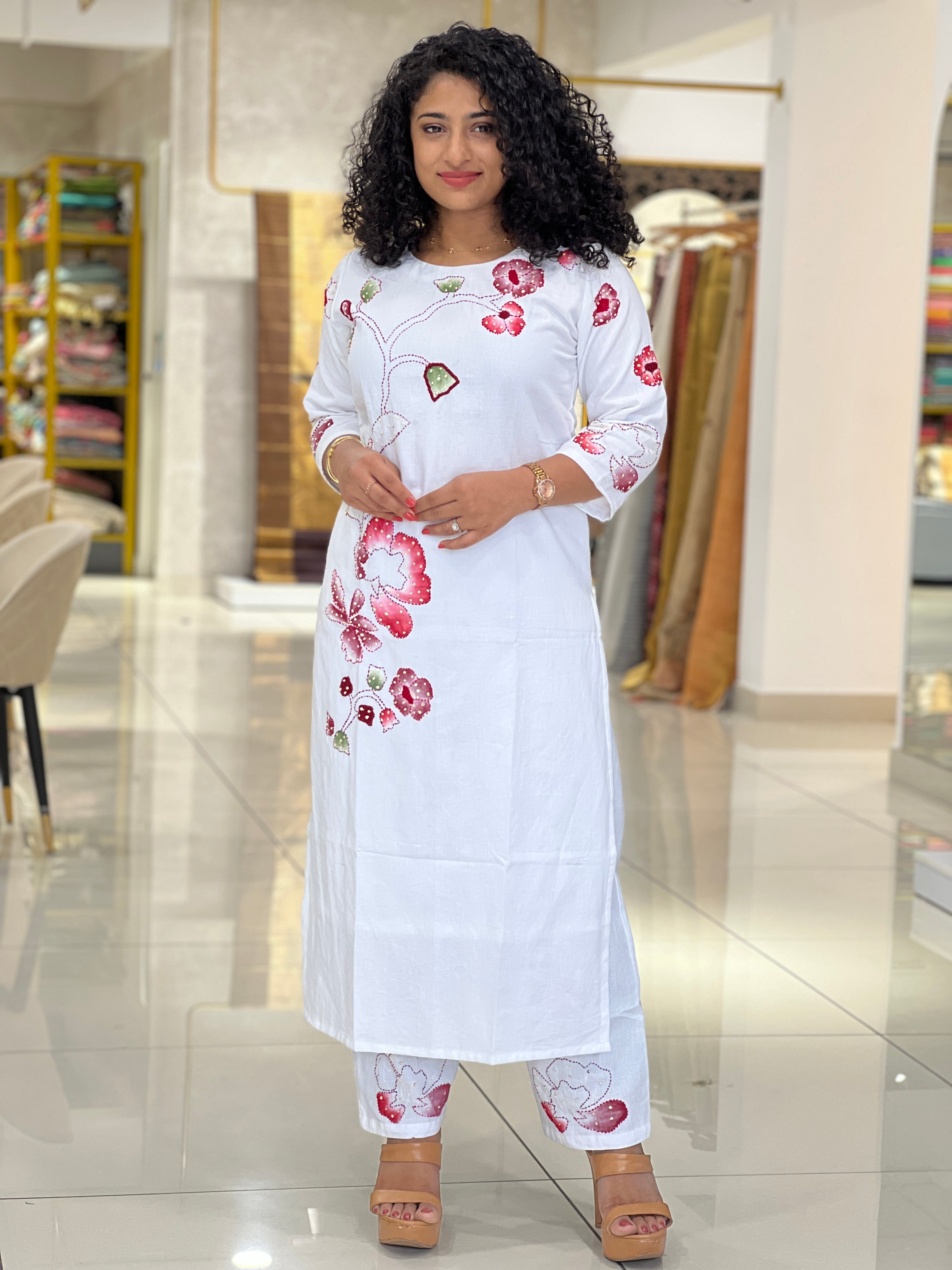 - Style: Hand Embroidery Floral Pattern With Painted Look & Kantha Embroidery Highlight