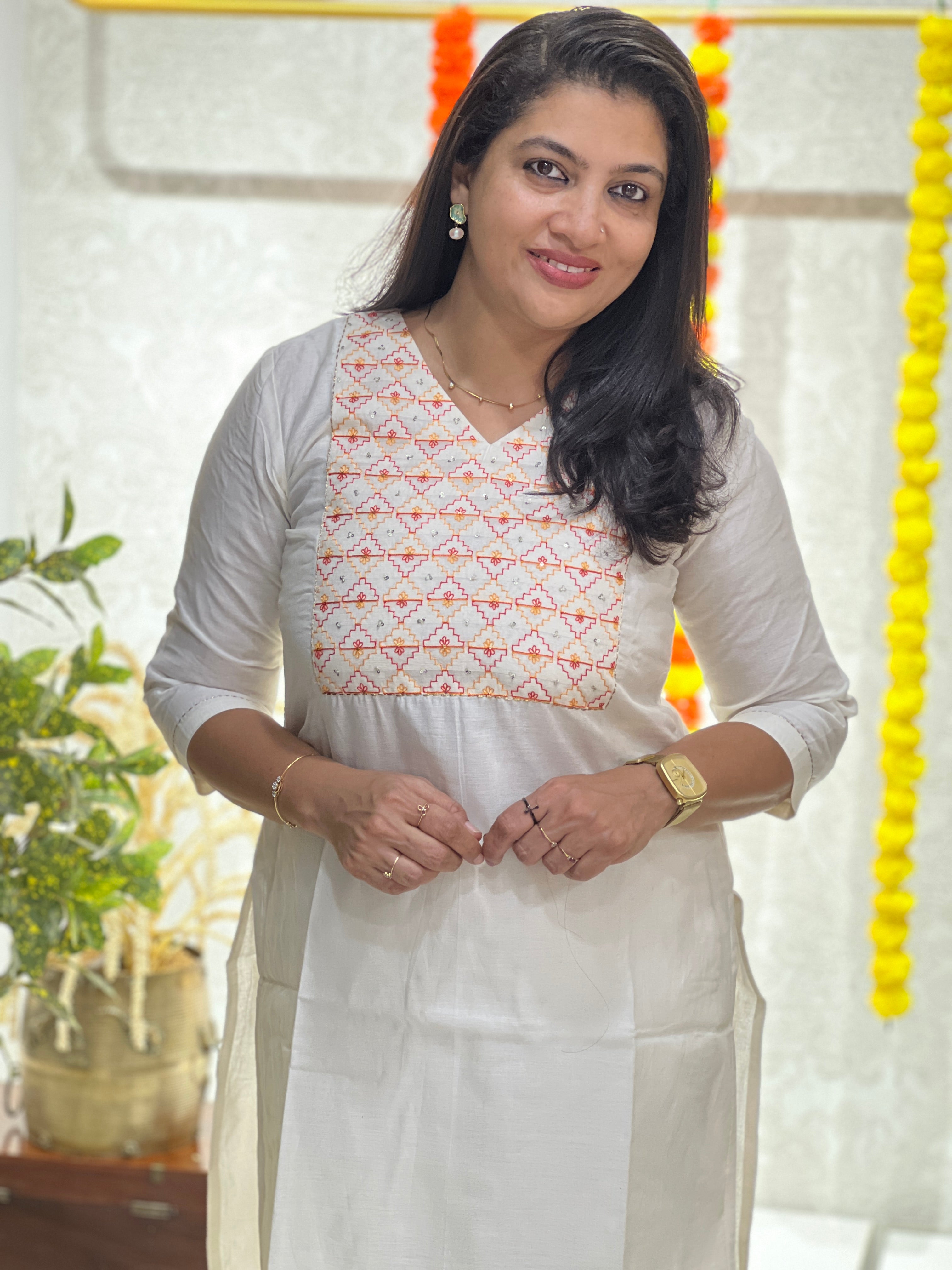 - Style - Pattola Inspired, Embroidery With Sequence Highlighted Yoke Patch Detailing, Jamdani Weaved, Side Slit Pattern, With Lining