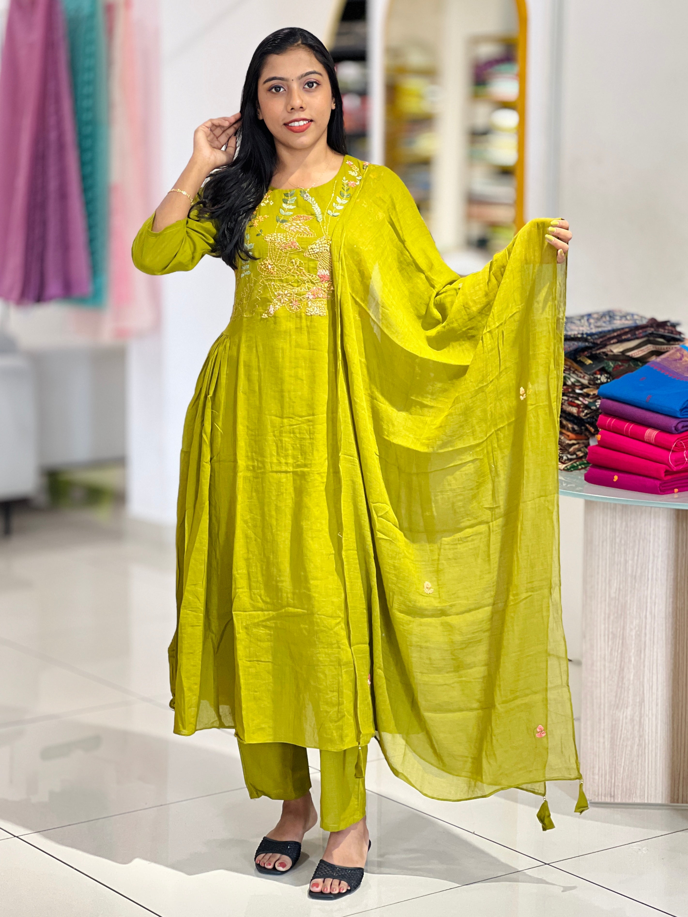 Embroidery With Sequence Highlighted Cotton Kurta Set | KIA129
