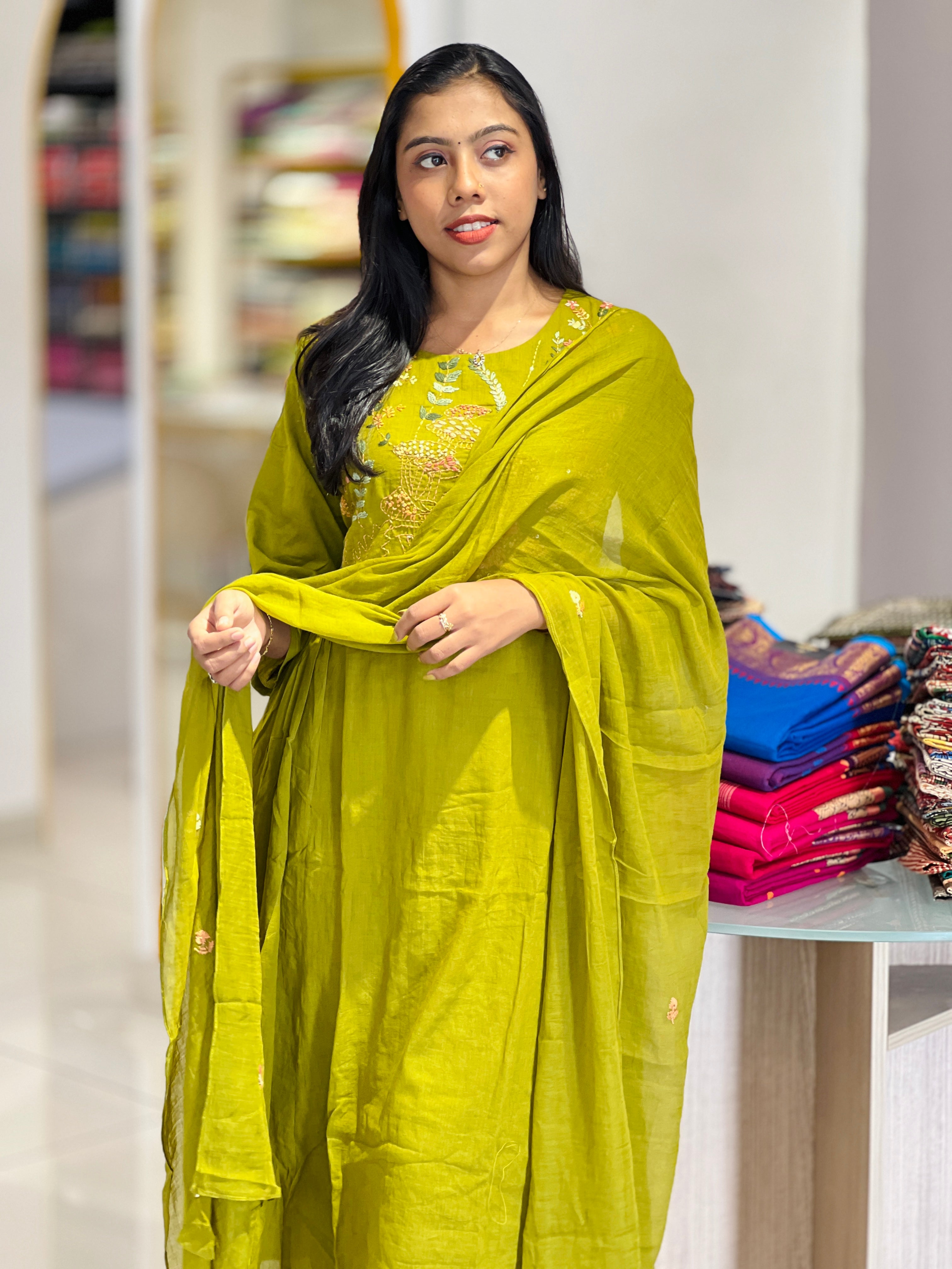 • Embroidery With Sequence Highlighted Cotton Kurta Set | KIA129