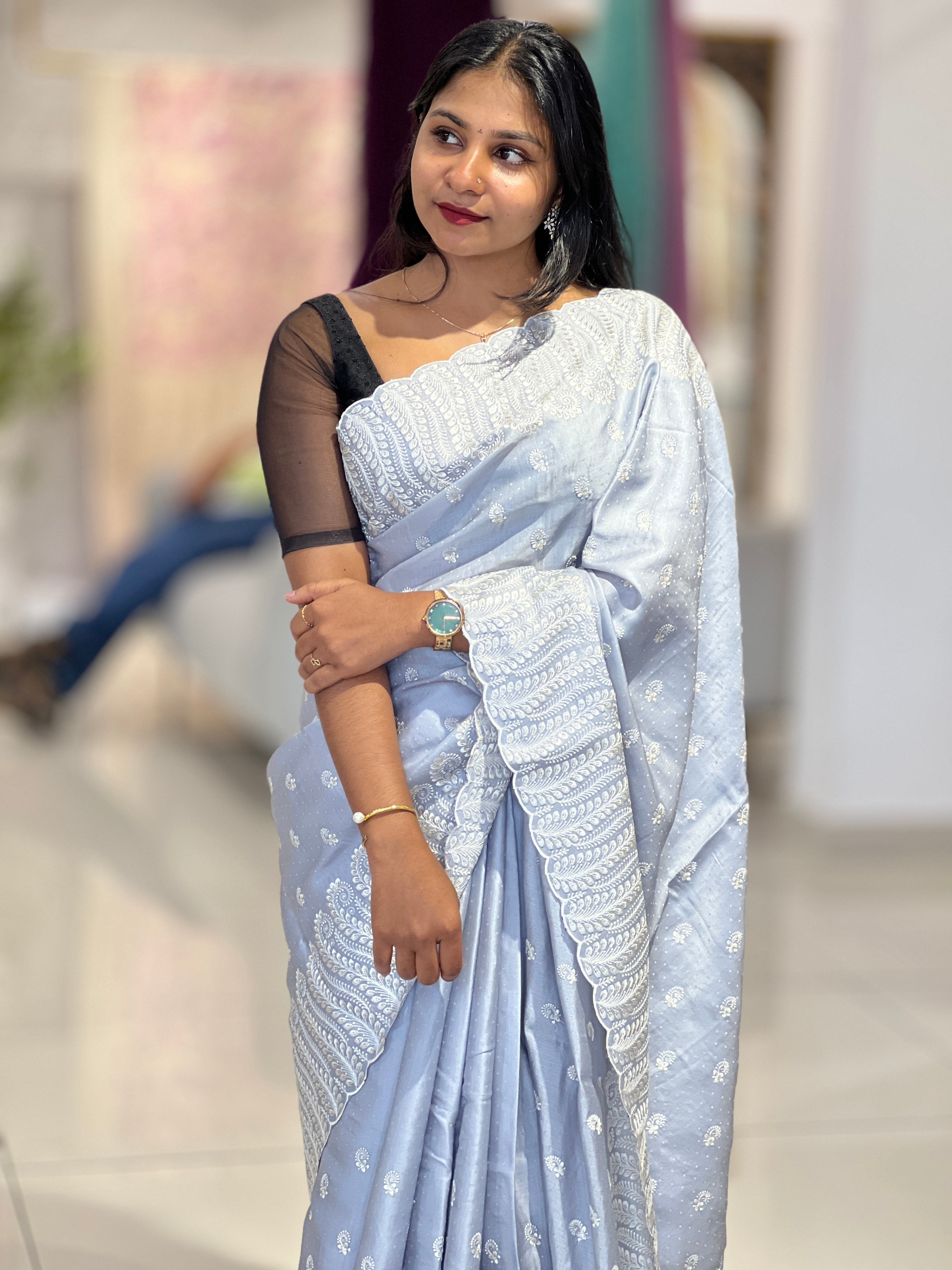 - Style: Machine Embroidery Detailing, Sequence Detailing, Scattered Embroidery Butta, Scallop edges, Dobby Weaving