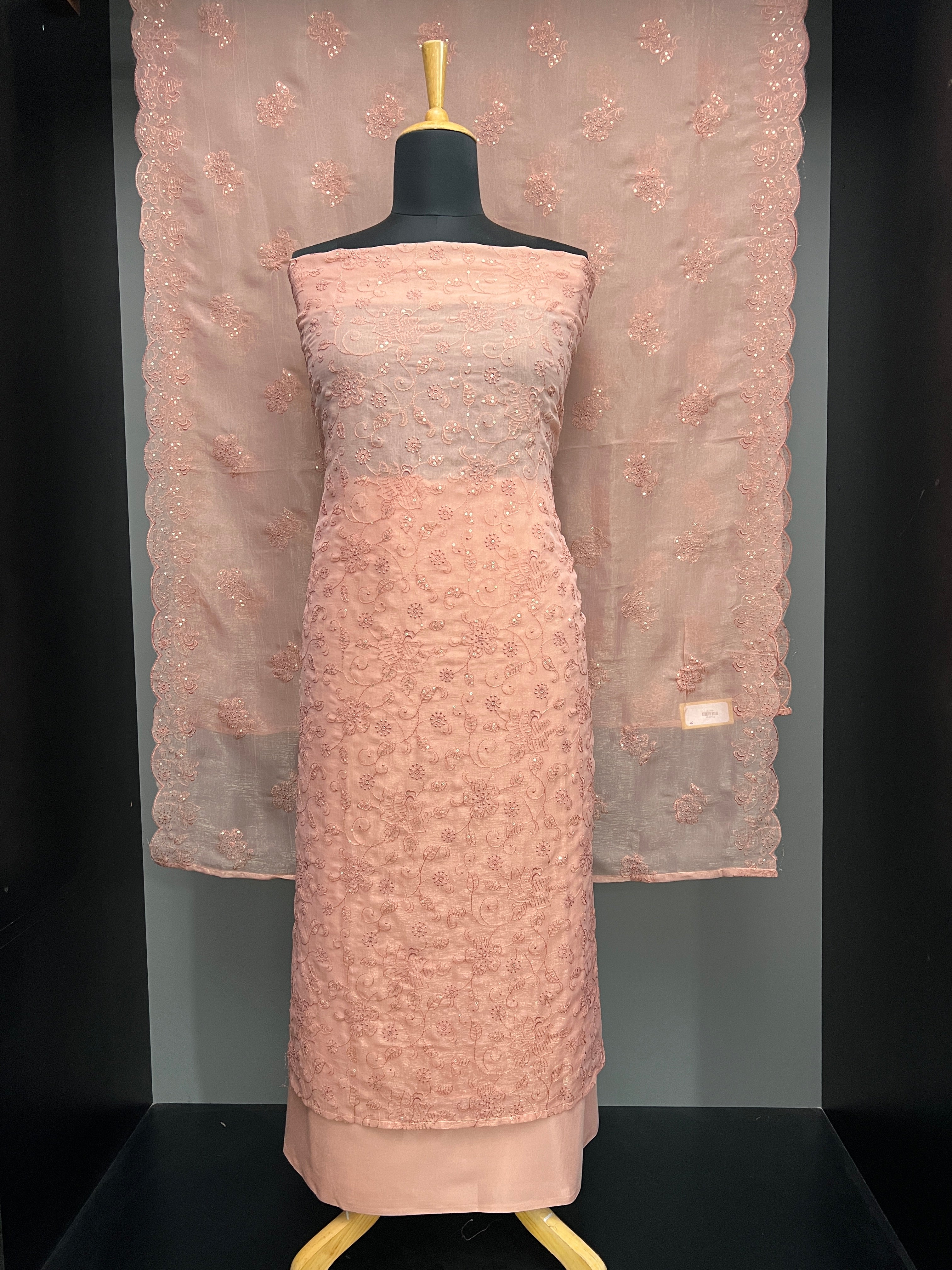 •  Style: Machine Embroidery With Sequence Highlight, Floral Jaal Pattern