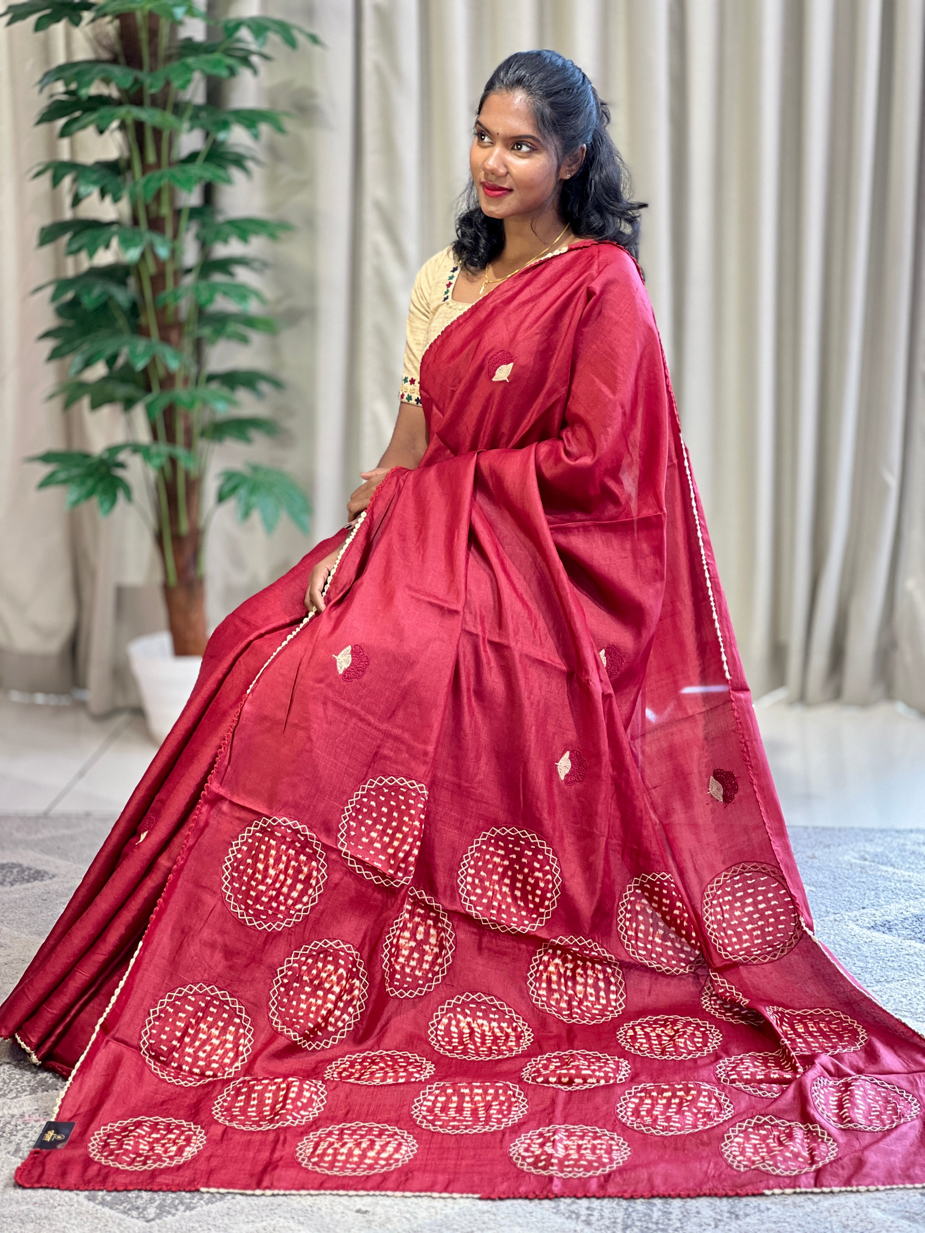 • Embroidery With Tie & Dye Detailed Pure Tussar Saree | RGD696