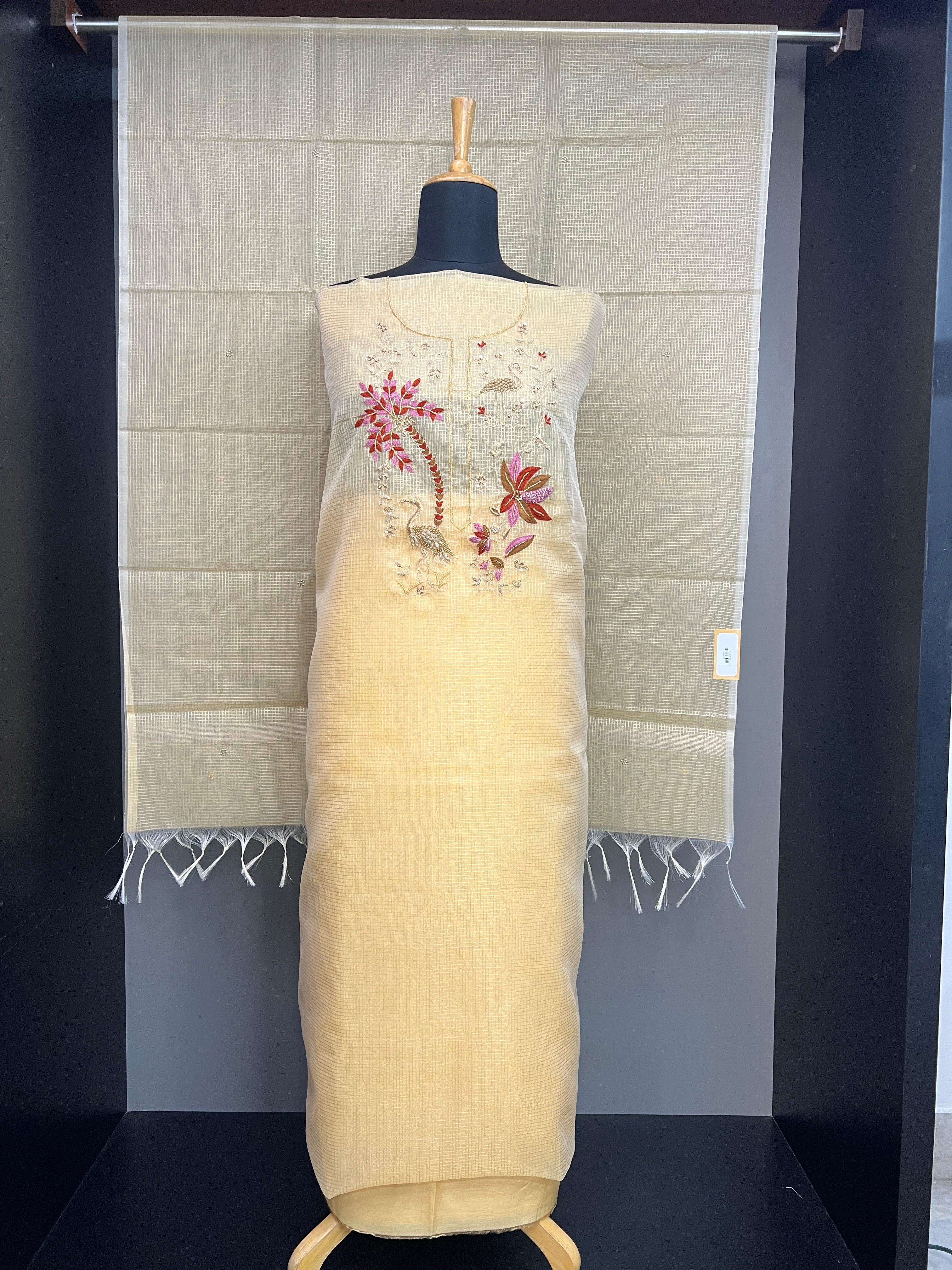 •  Style: Hand And Machine Embroidery, Floral And Bird Pattern, Check Weaving
