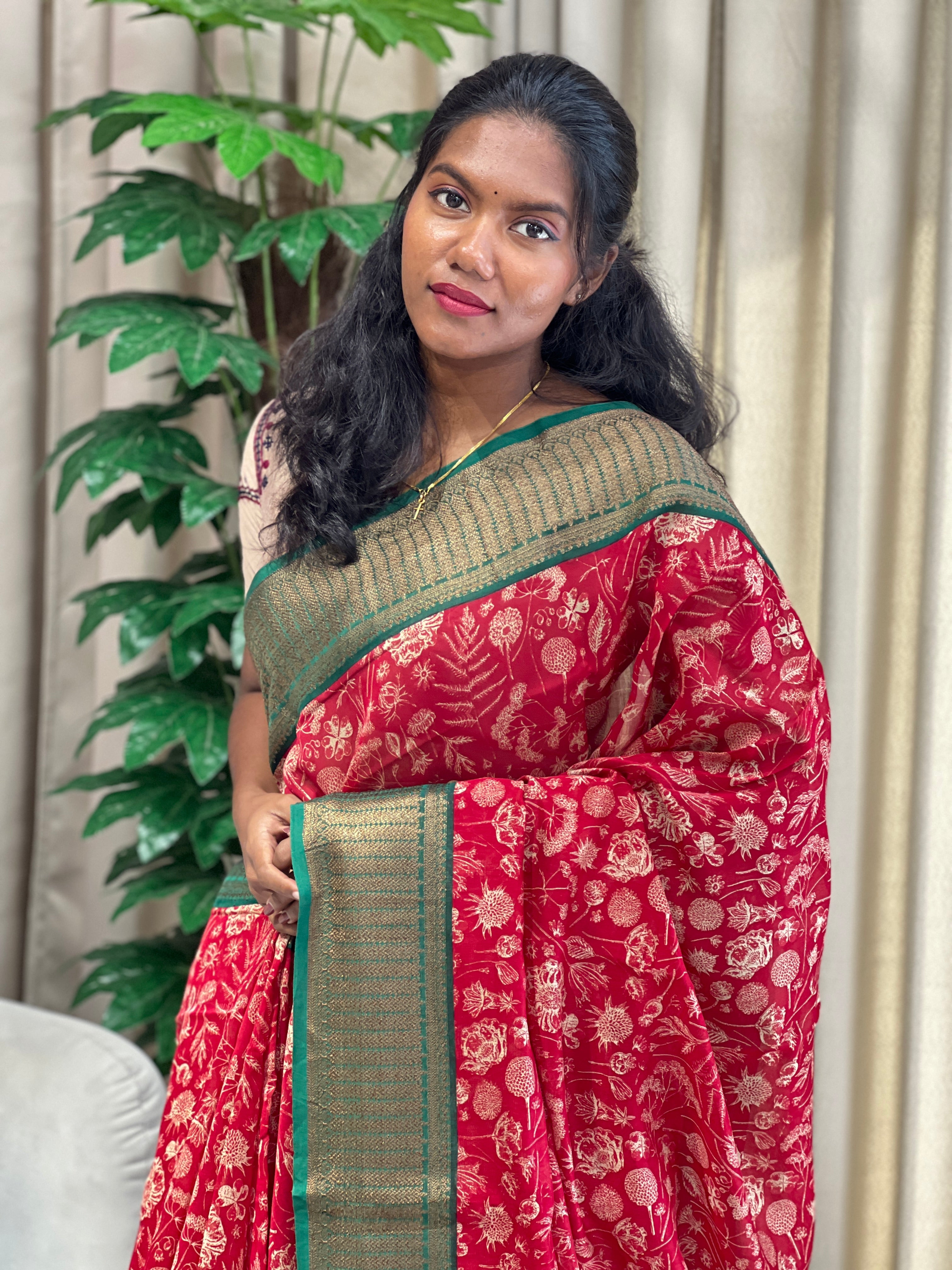 • Floral and Leaf Printed Chanderi Saree | RGD955R