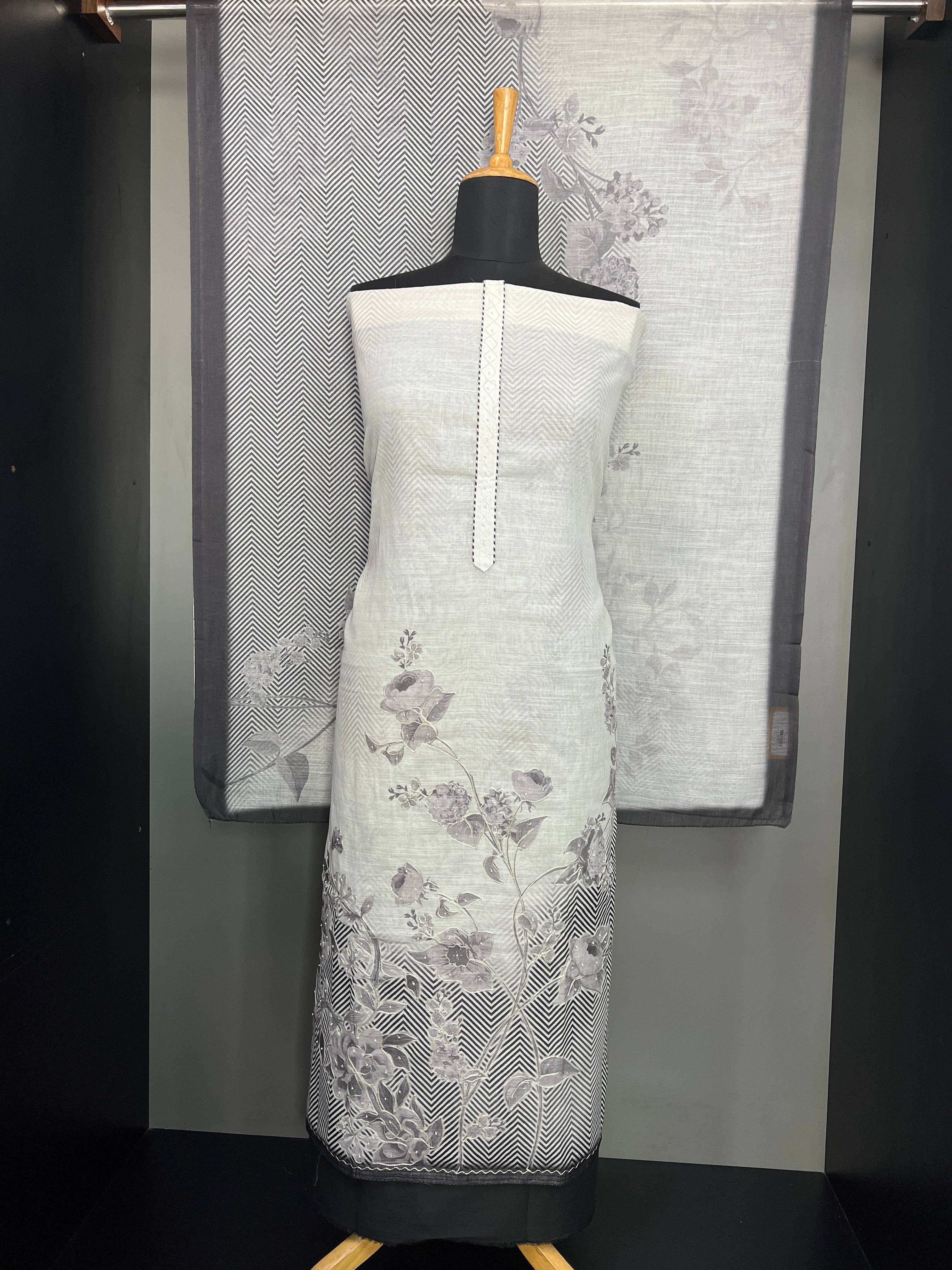 Floral and Zig Zag Print Patterned Linen Salwar Set | SW2254