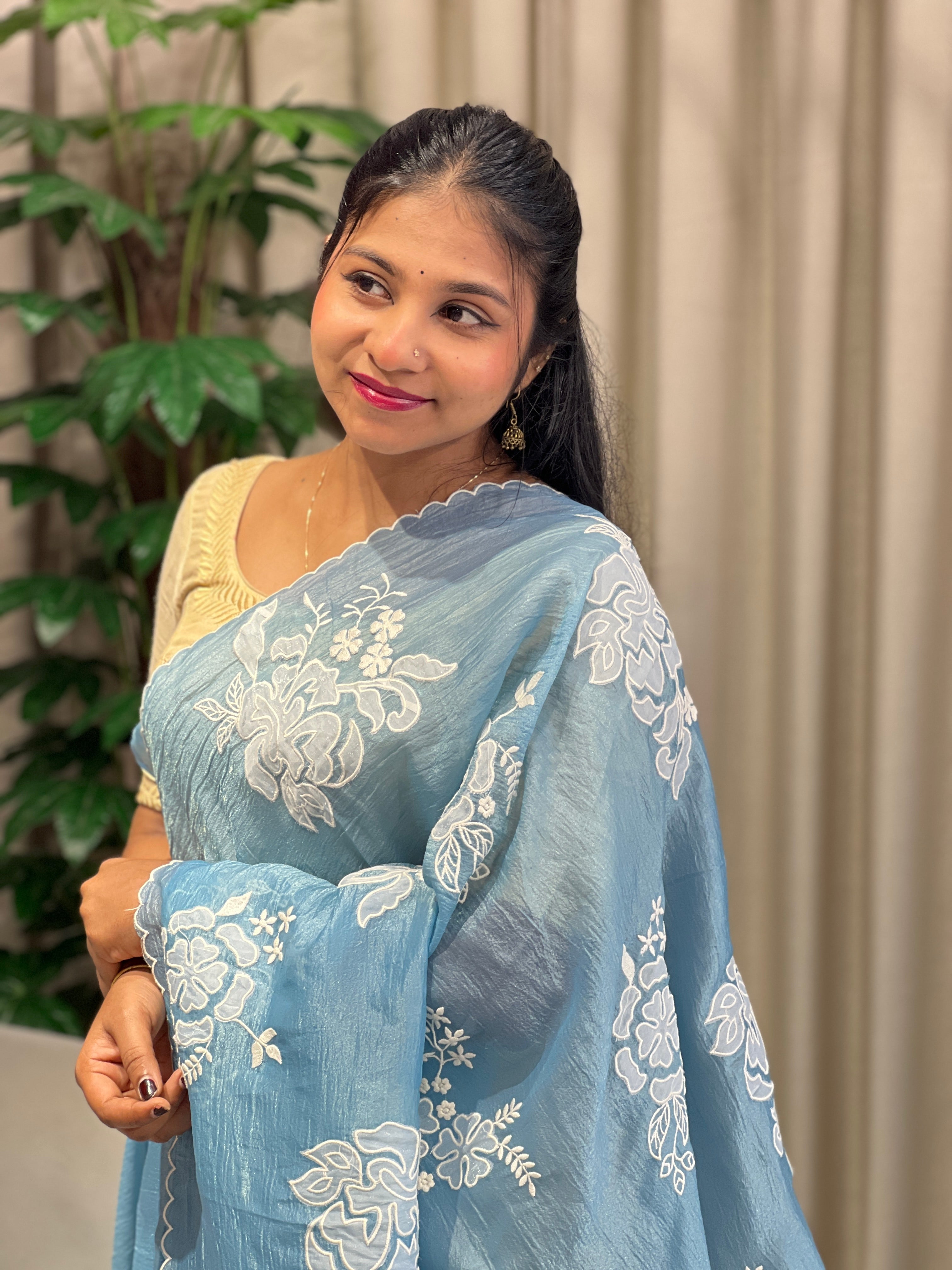 Floral Applique Detailed Crushed Shimmer Organza Saree | BLD1769 Floral Applique Detailed Crushed Shimmer Organza Saree | BLD1769 Floral Applique Detailed Crushed Shimmer Organza Saree | BLD1769