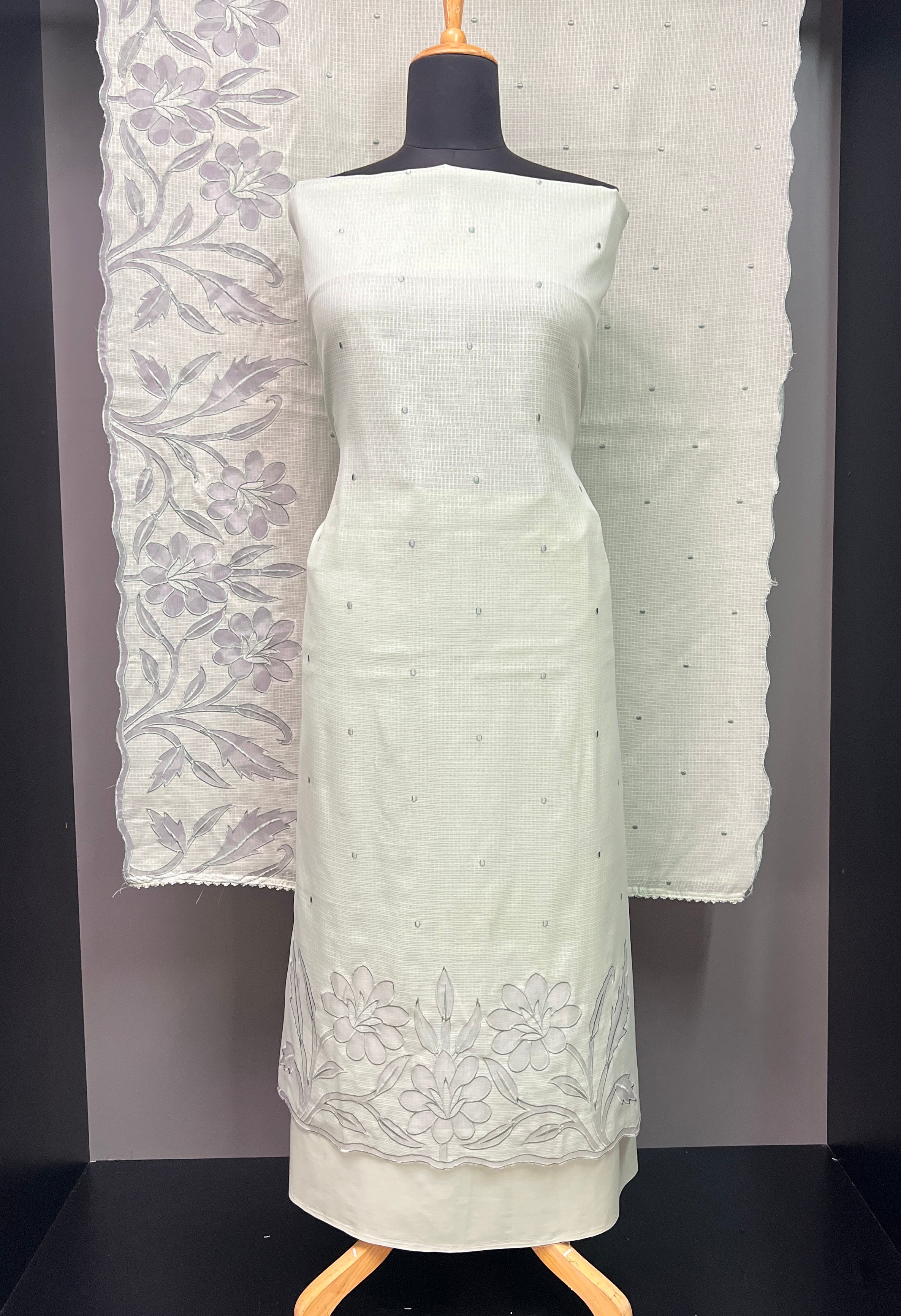 - Style: Scattered Thread Woven Buta, Floral Applique Detailed Lower Hem Portion, Scallop Edges