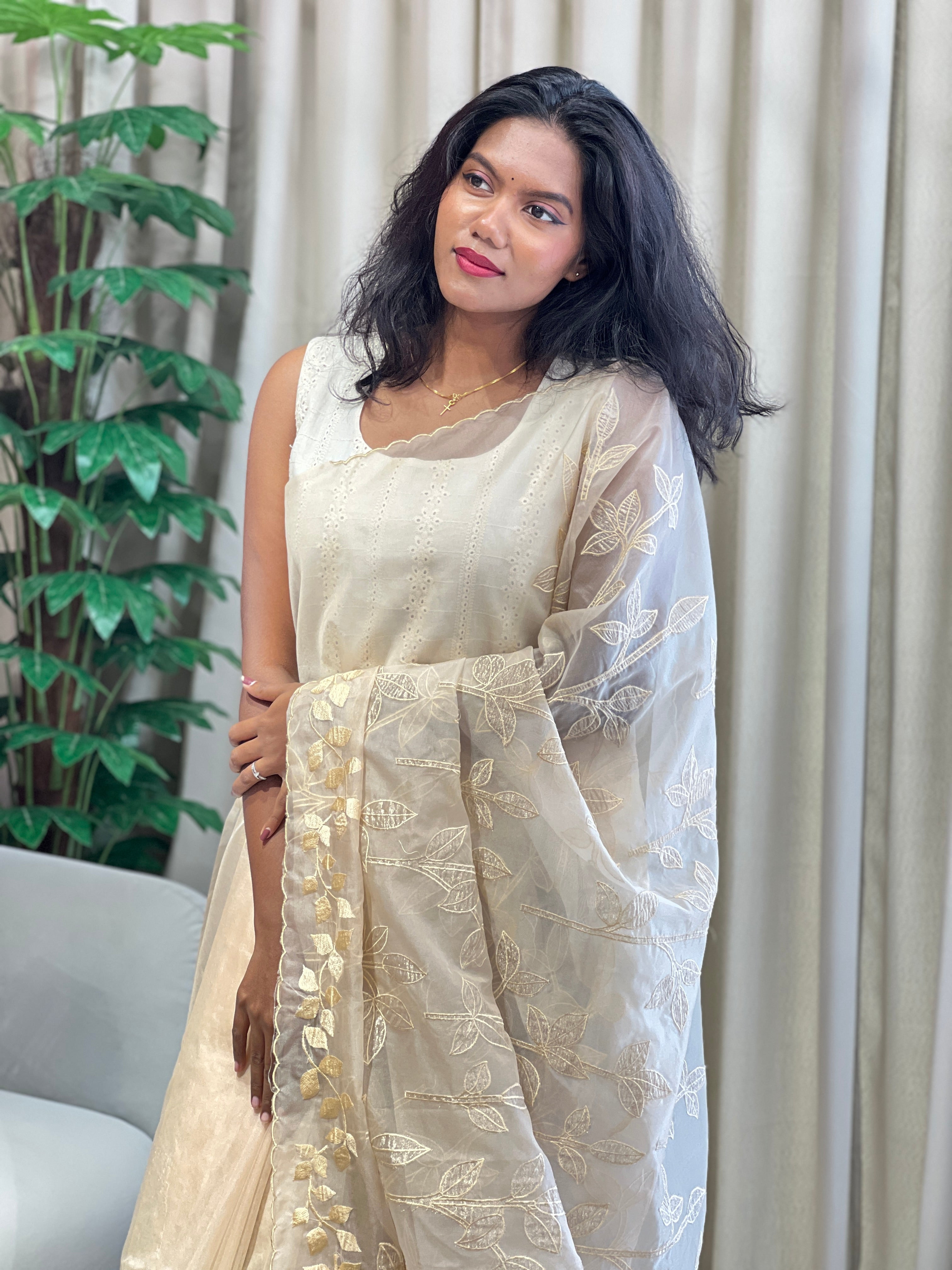 - Style: Floral Applique Detailing, Machine Embroidery, Scallop Finish