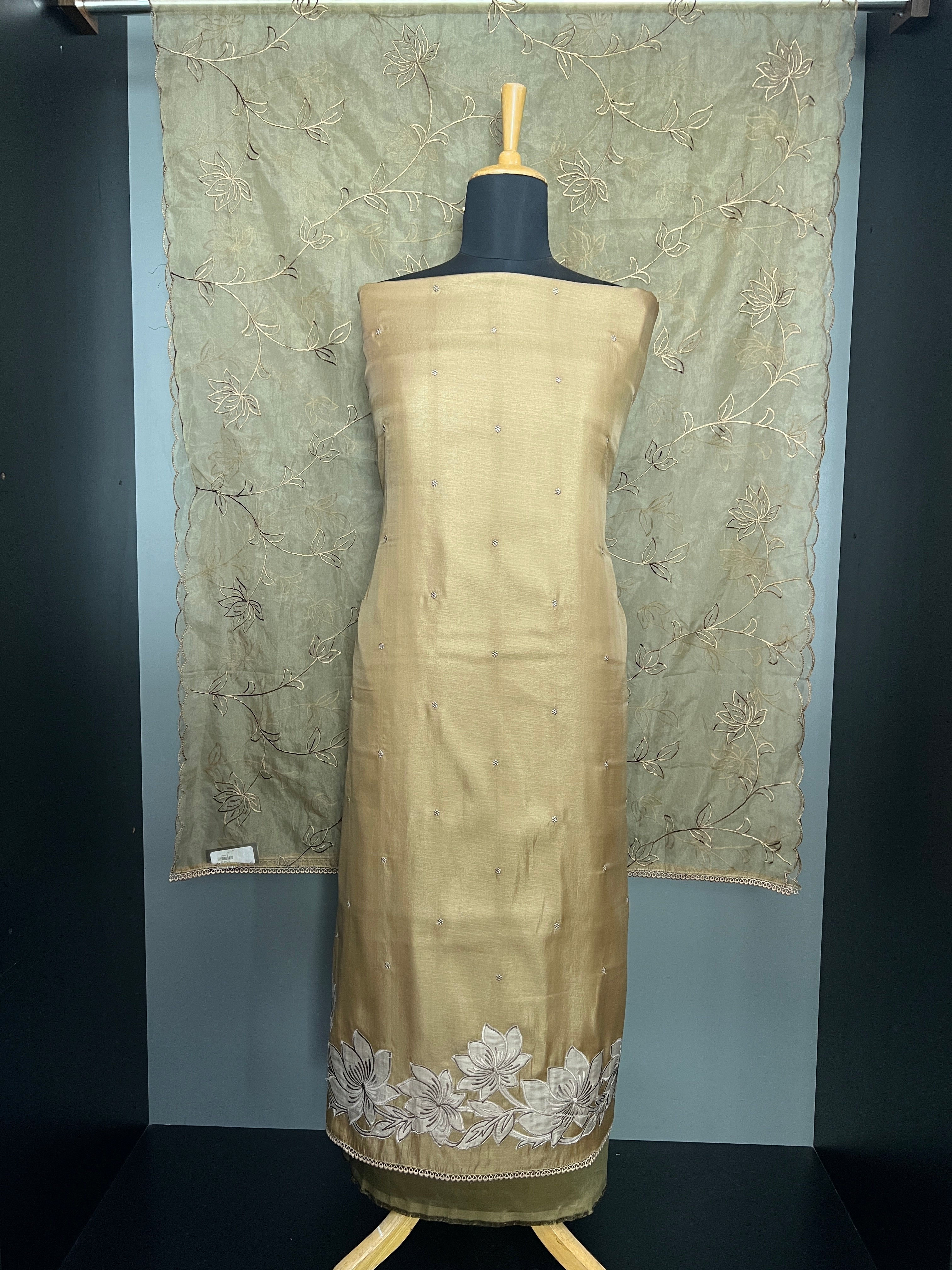 • Floral Applique Detailed Semi Tussar Salwar Set | SUN691