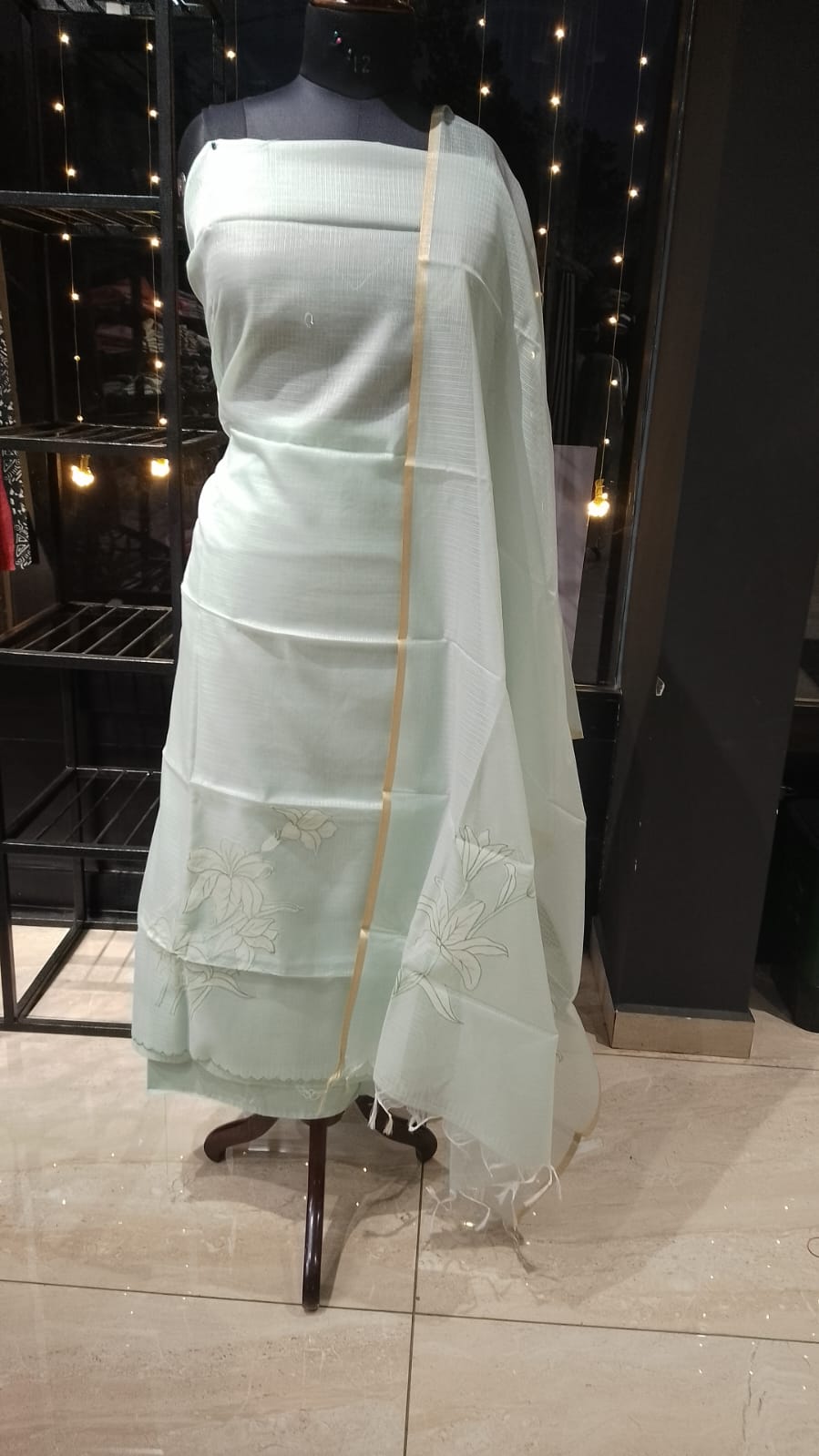 - Style: Floral Applique Work, Tassels Detailing, Zari Borders